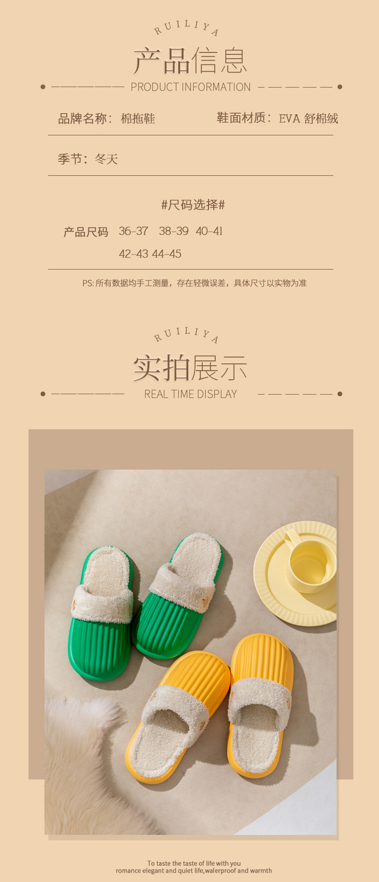 星罗内胆可拆卸棉拖鞋 可外穿保暖厚底防滑拖鞋 A仓