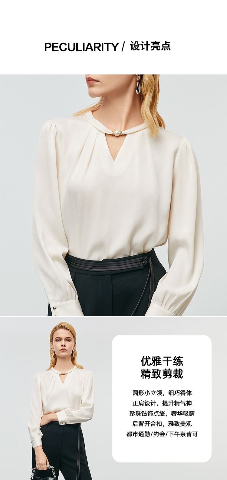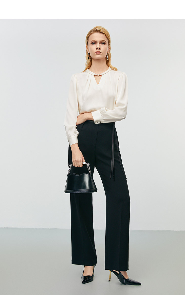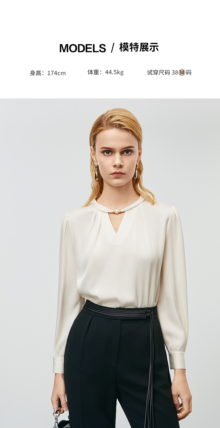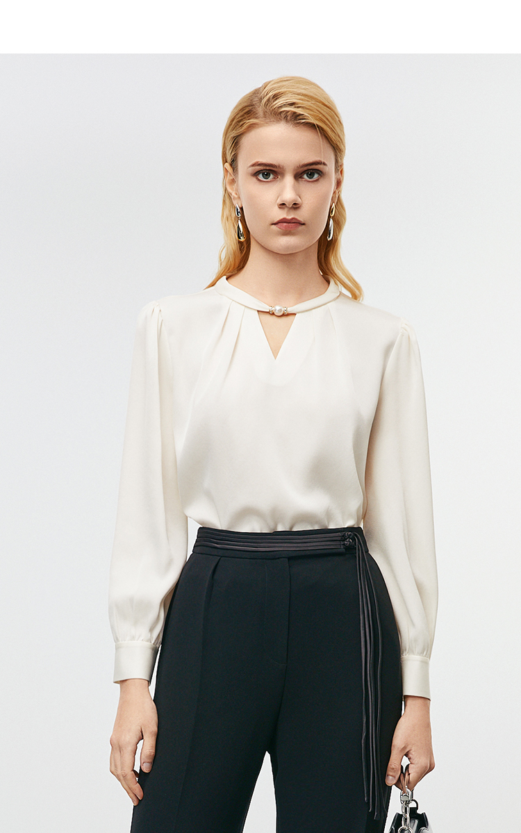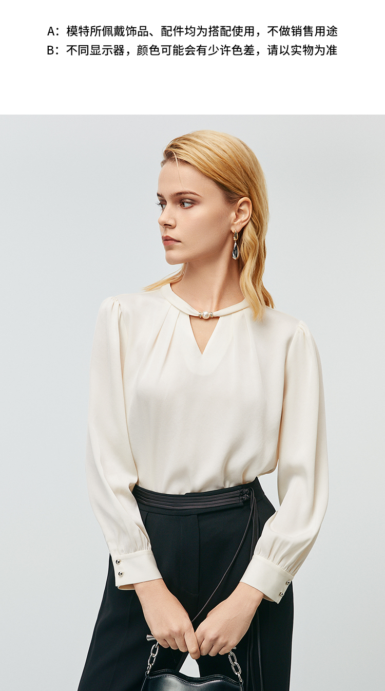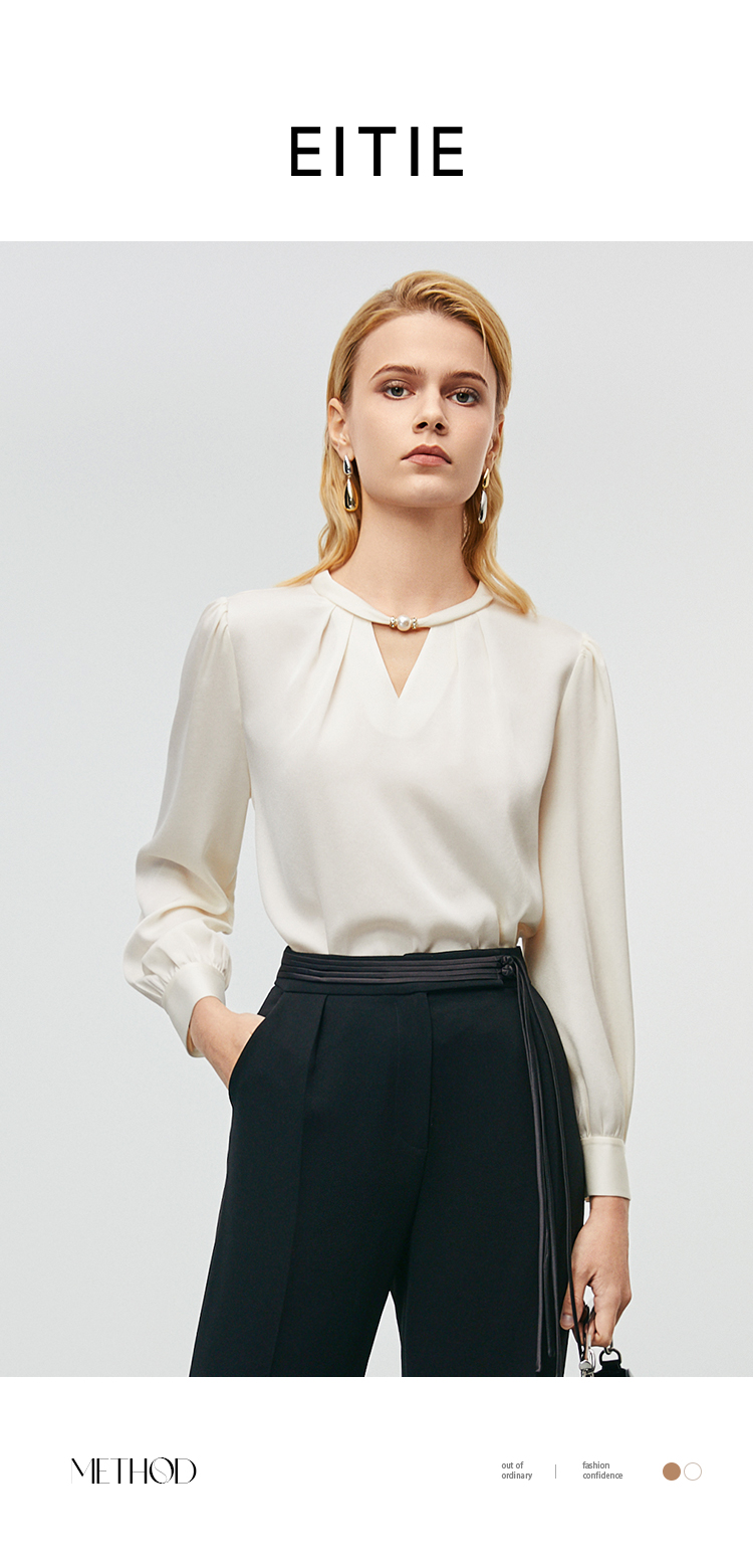 EITIE爱特爱秋季新款时尚挂脖镂空直筒显瘦衬衫上衣7913616