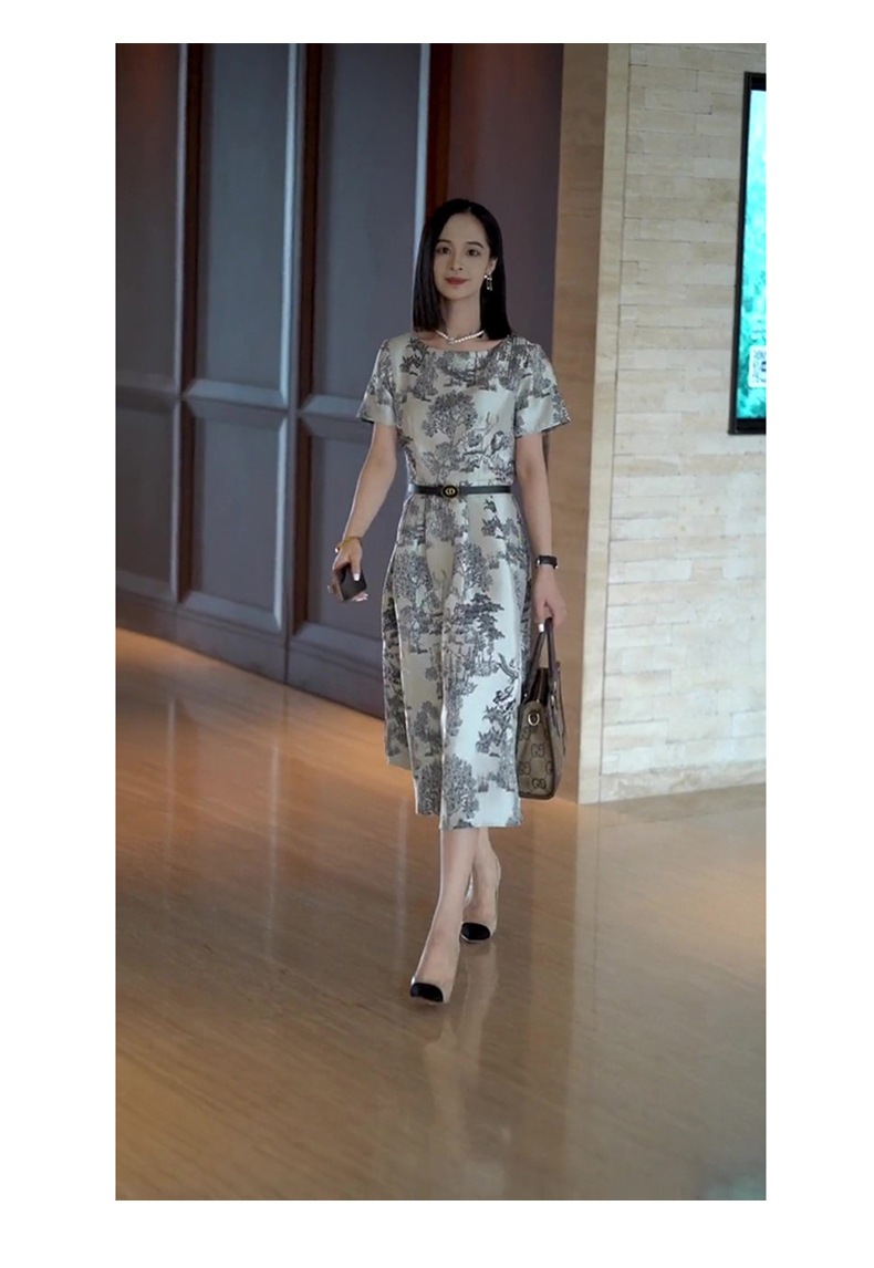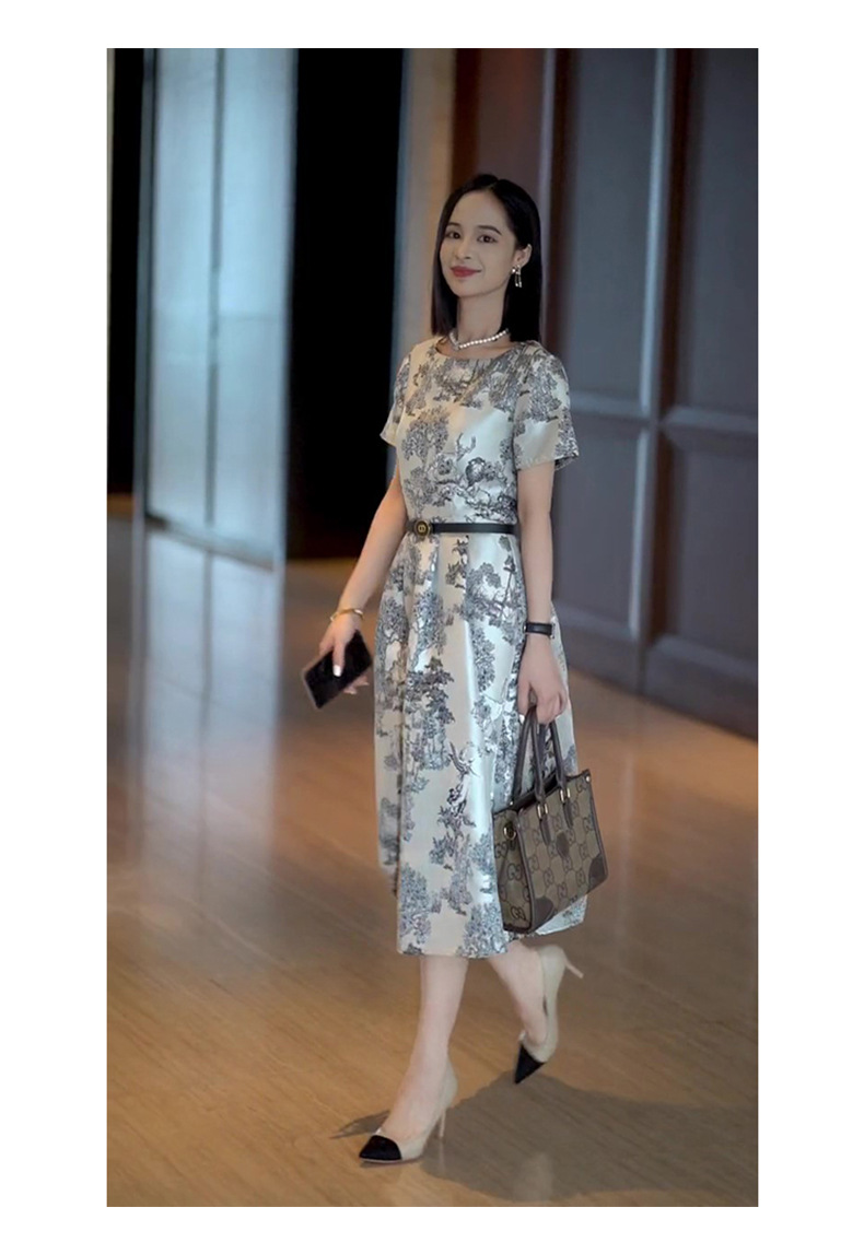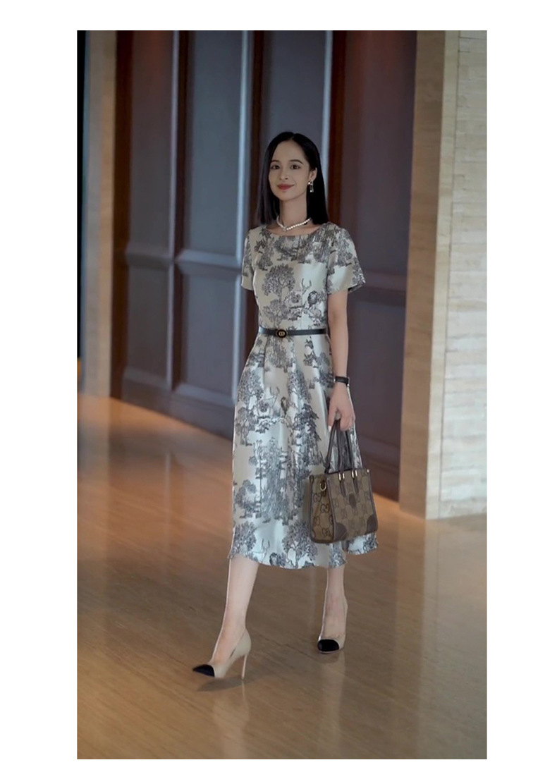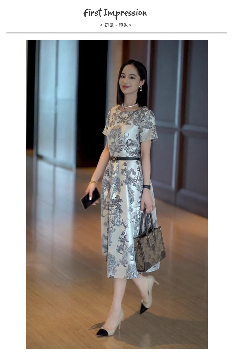 丁摩 轻奢气质连衣裙夏季新款法式浪漫高级感中长款提花裙子5ZF-06423