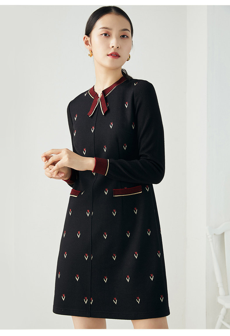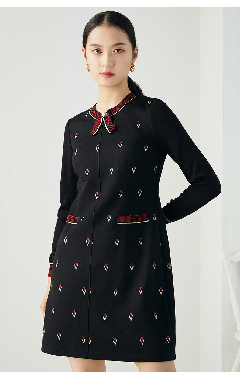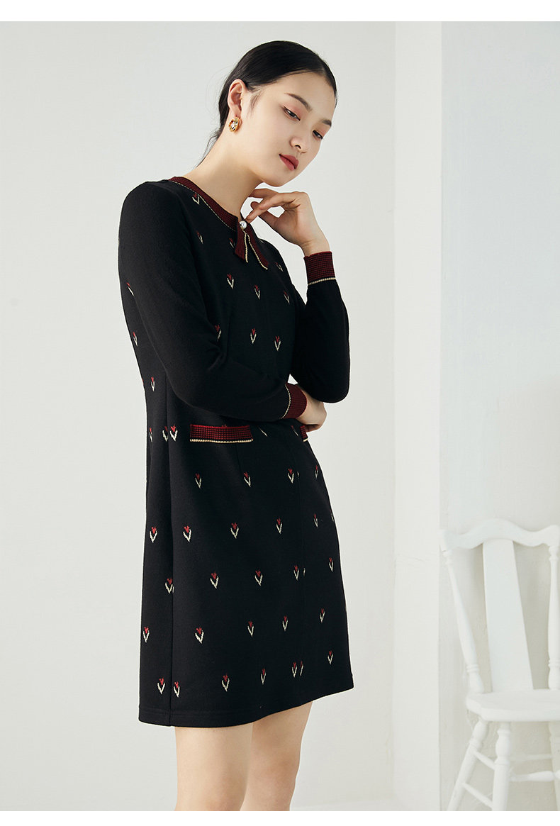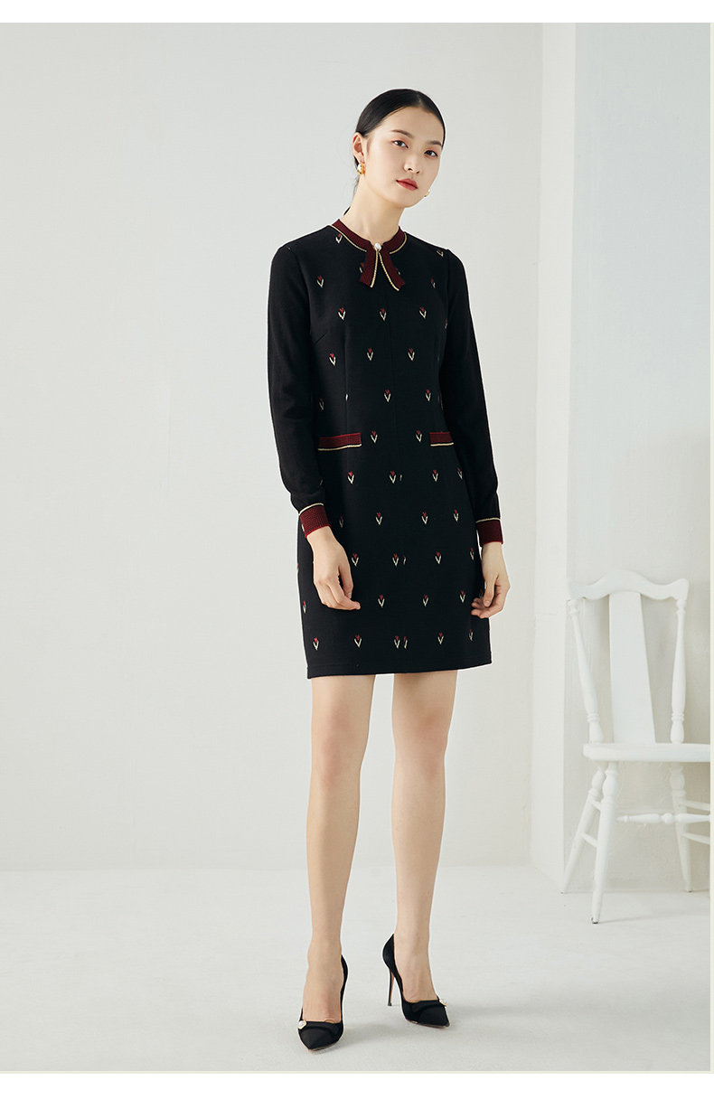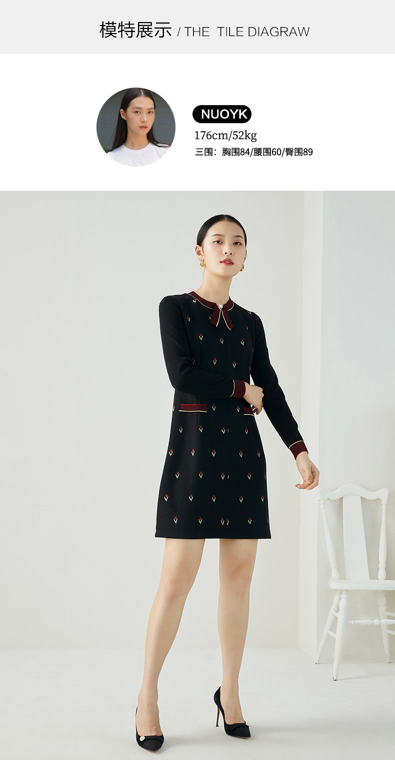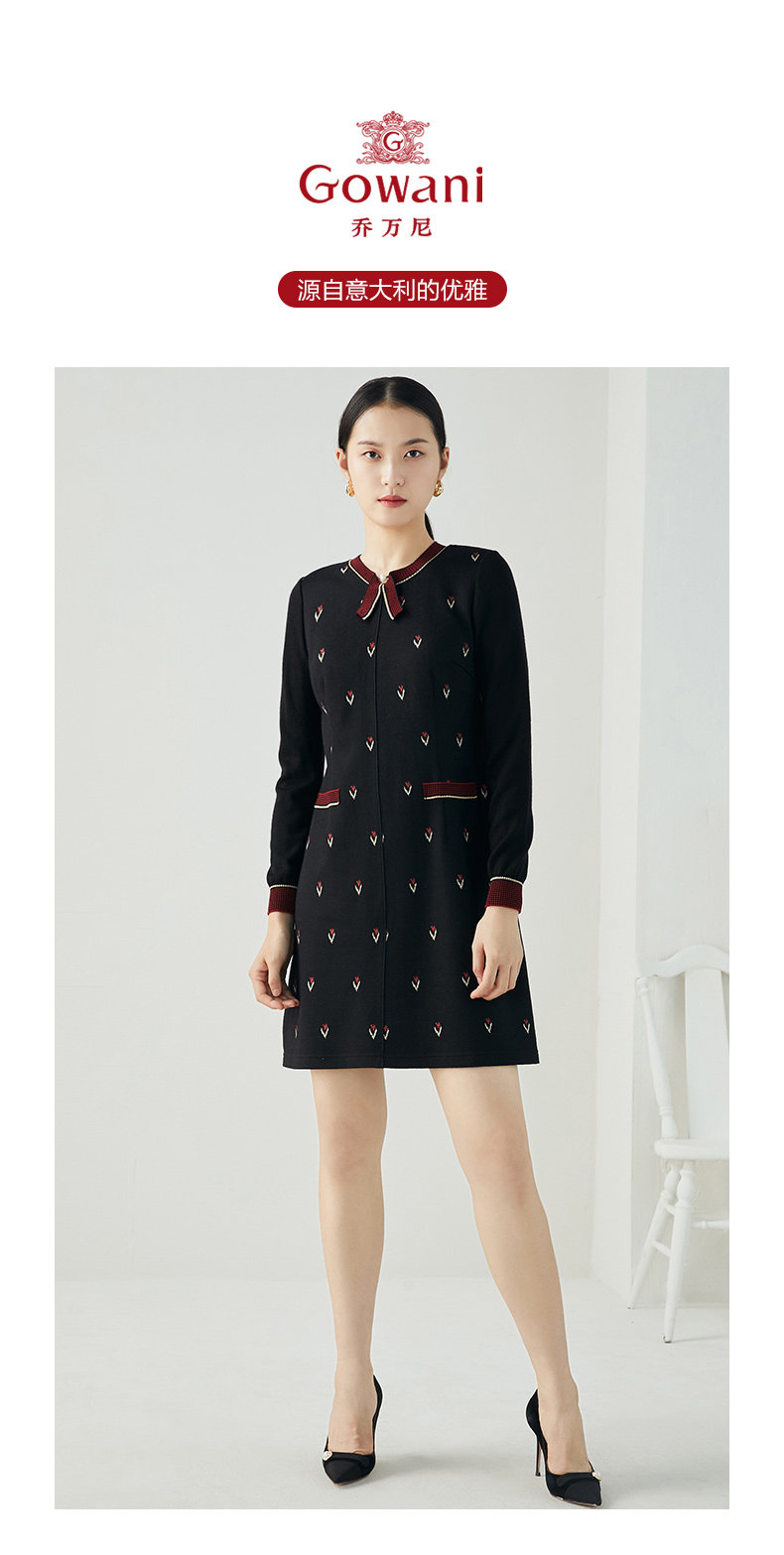 乔万尼秋冬新品绵羊毛弹力保暖小香风端庄精致设计感灵动连衣裙ES4E326