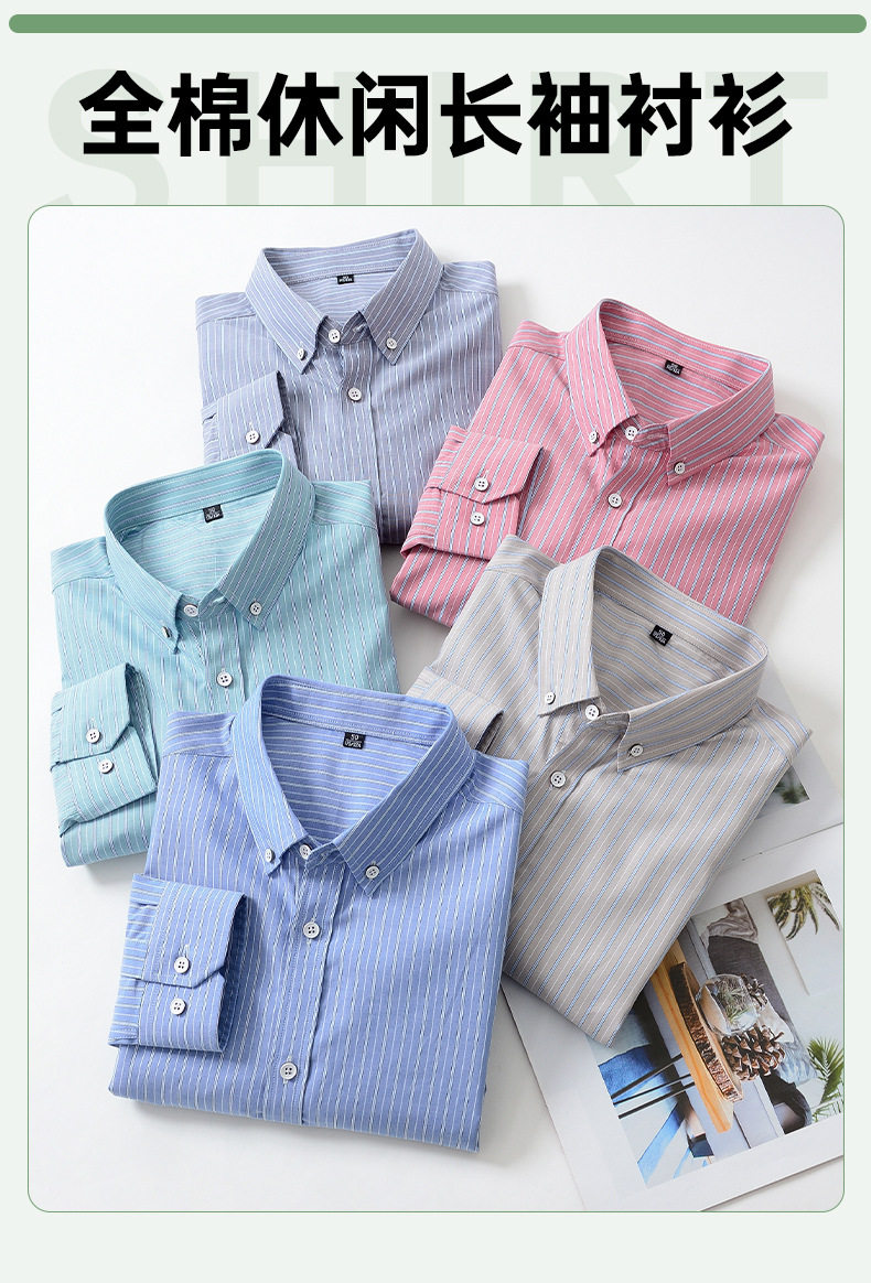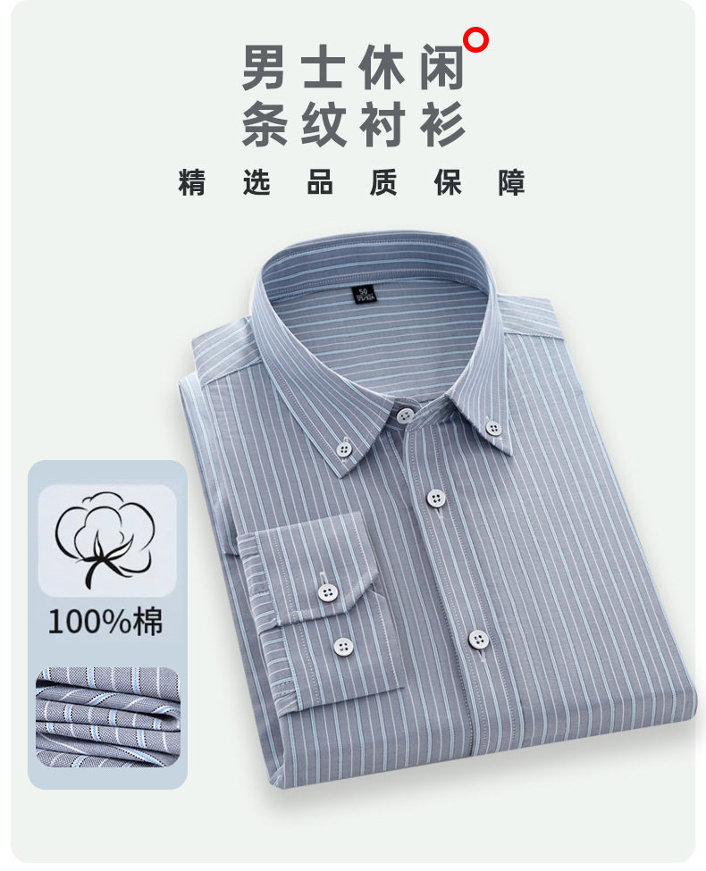 秋季新款全棉长袖衬衫男式修身简约工装衬衣男士条纹潮流商务寸衫 LSBT-LB2118