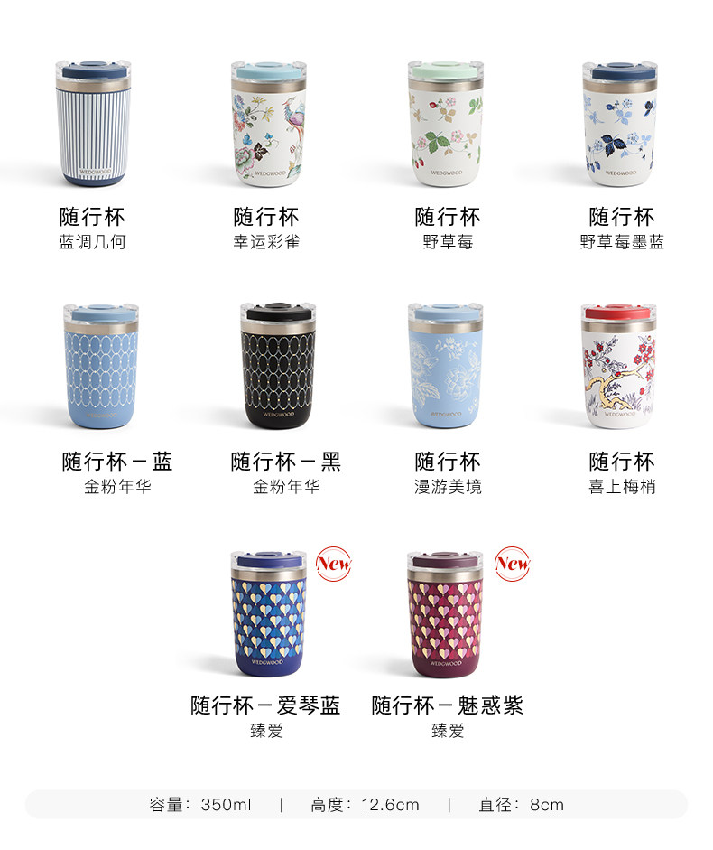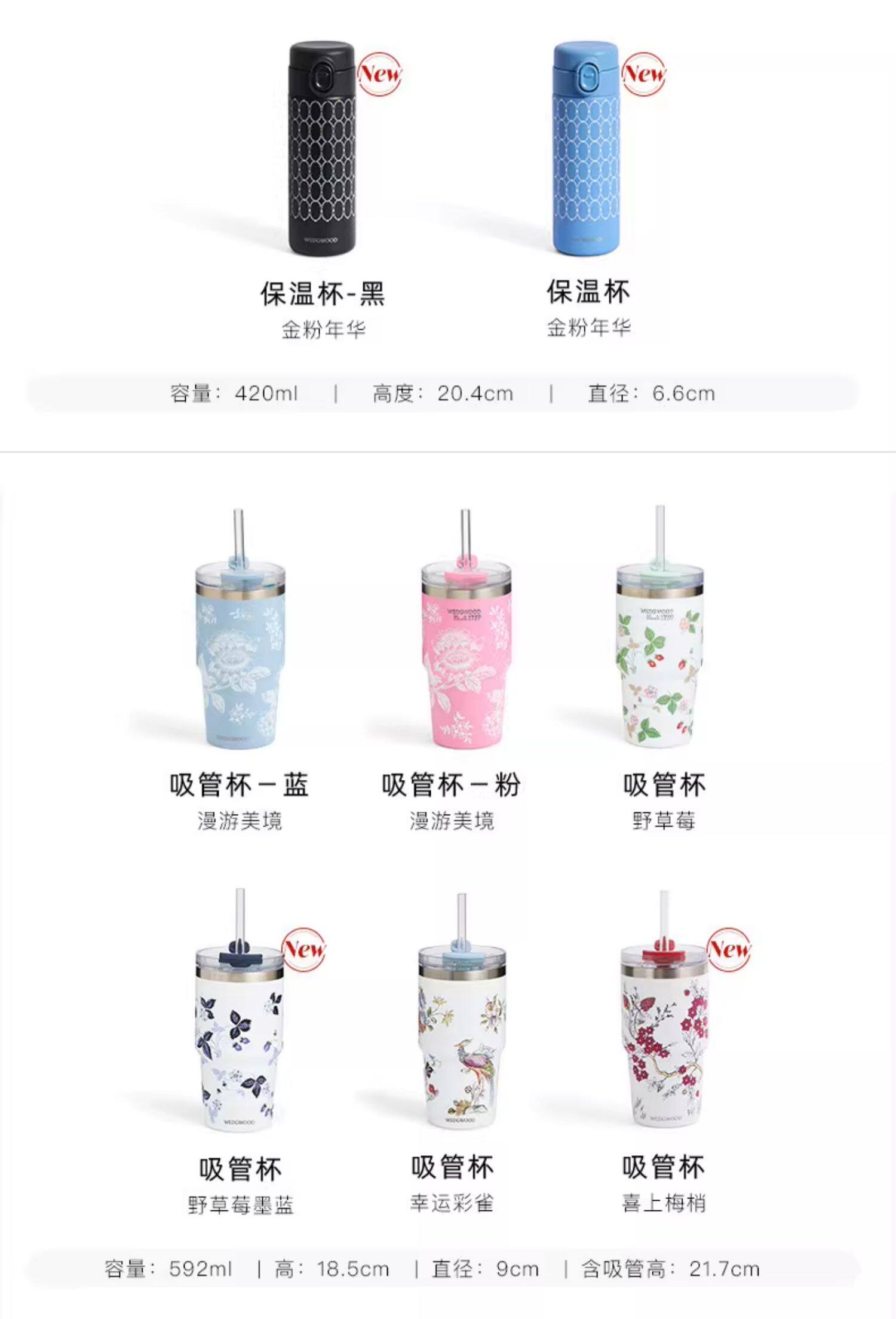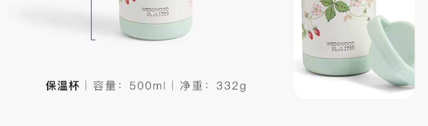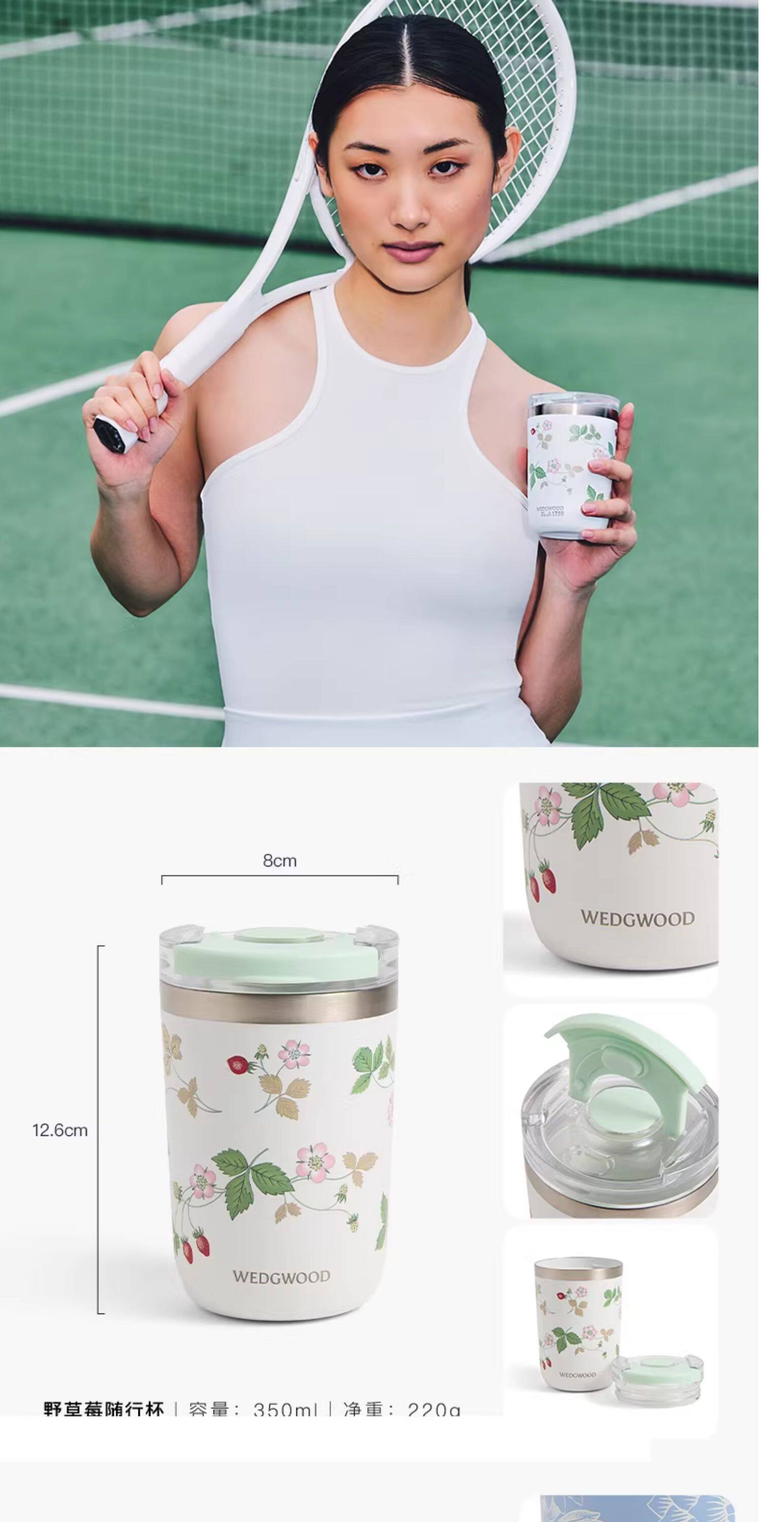 【WEDGWOOD】威基伍德陶瓷涂层内胆野草莓保温杯随身杯吸管杯