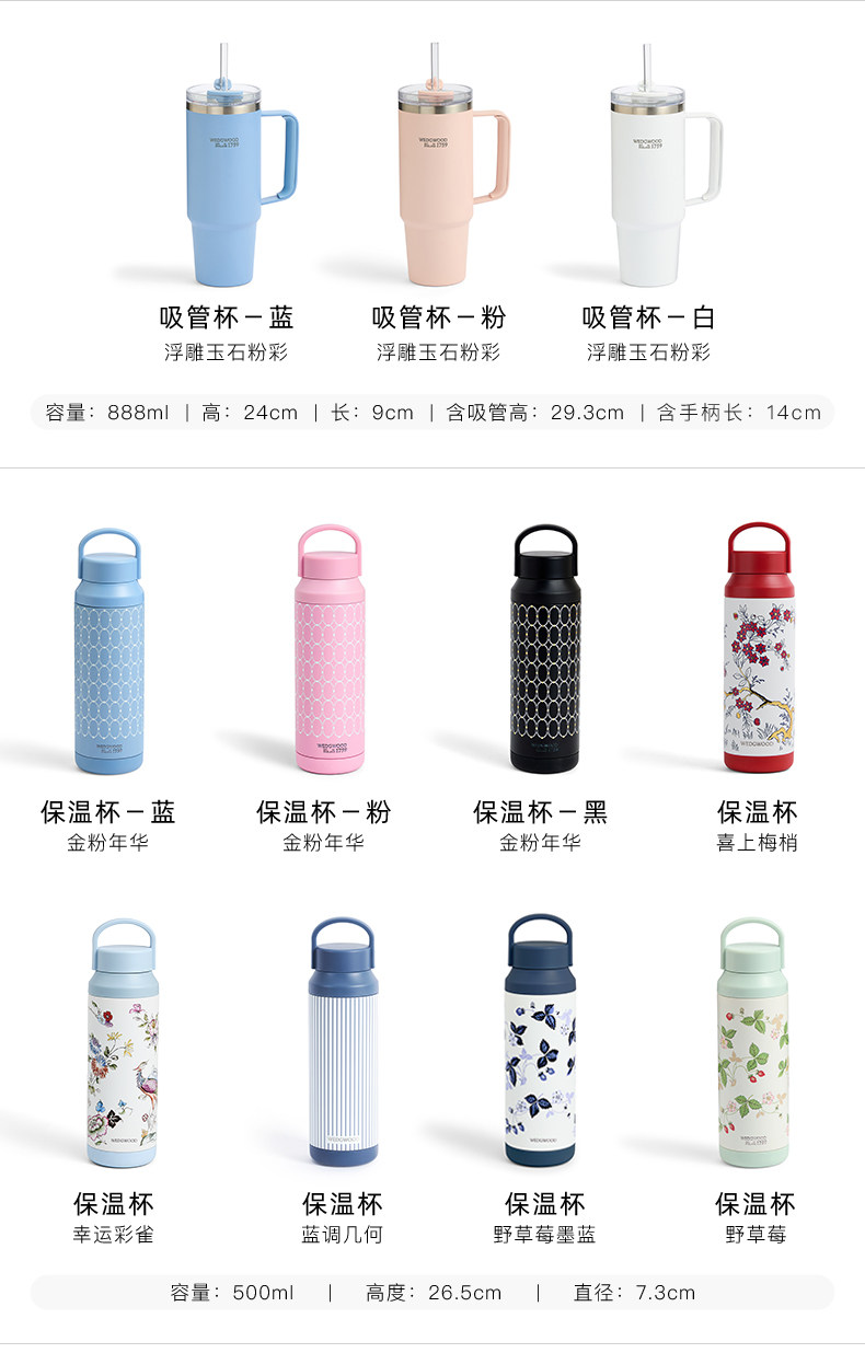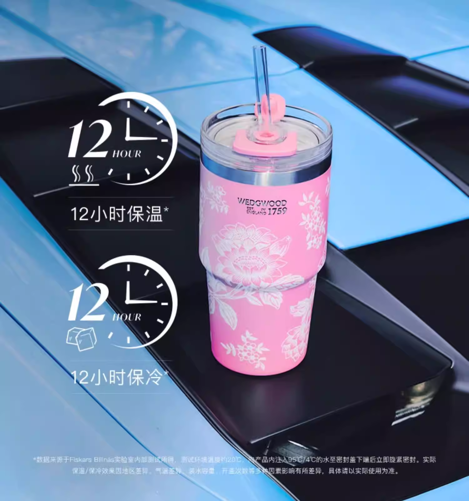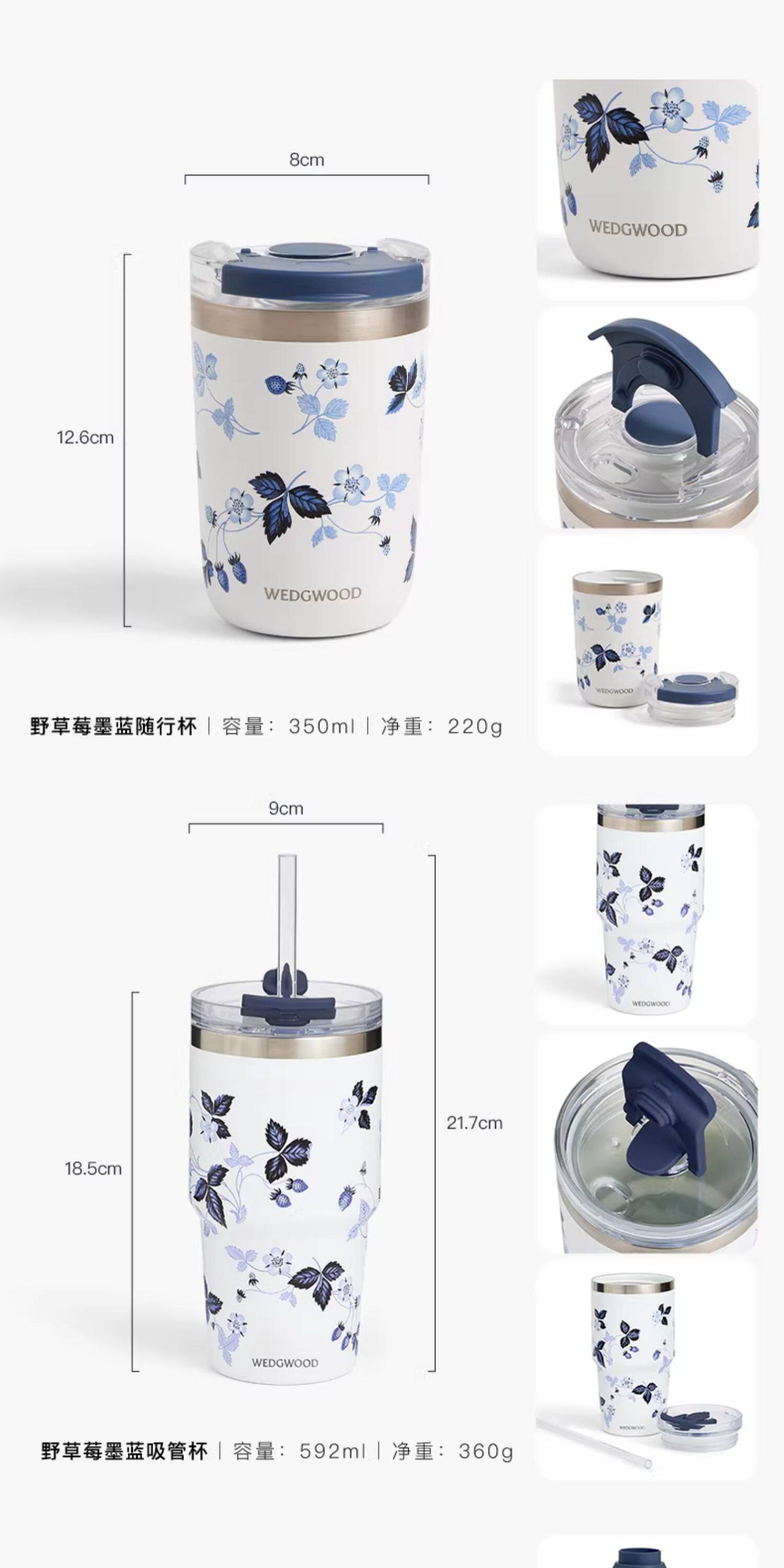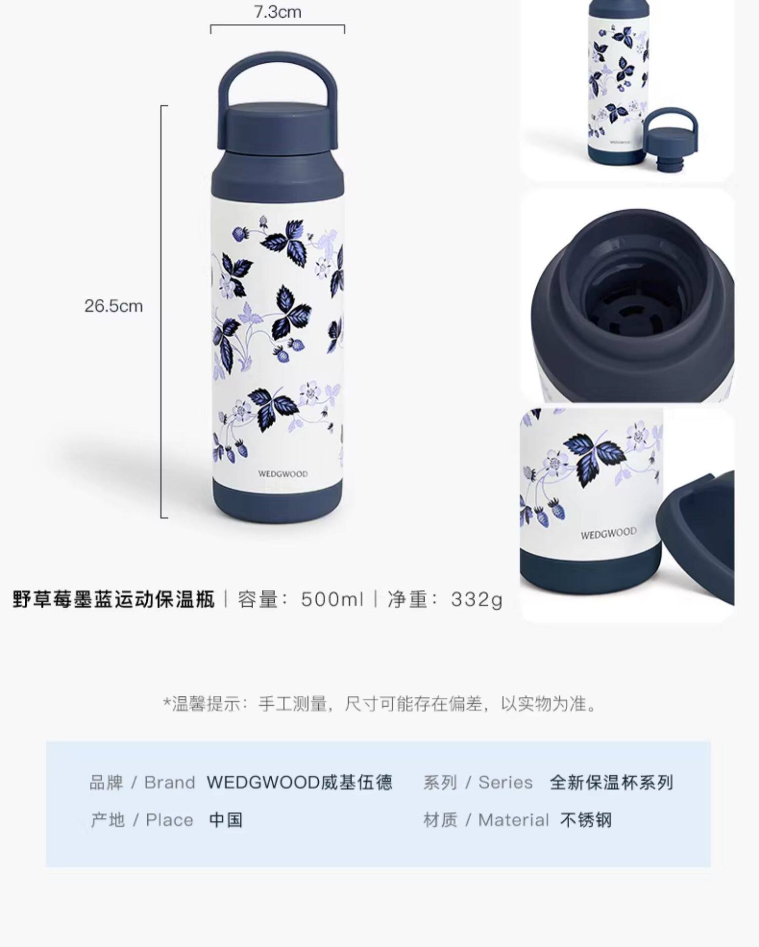 【WEDGWOOD】威基伍德陶瓷涂层内胆野草莓保温杯随身杯吸管杯