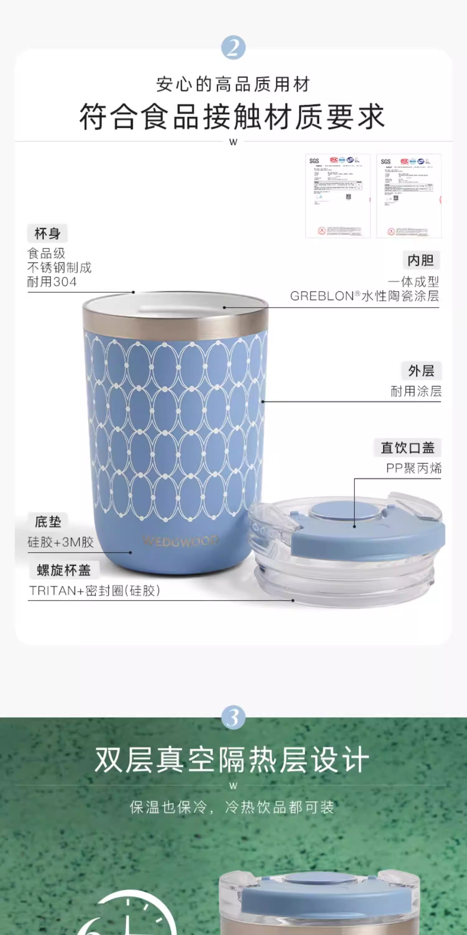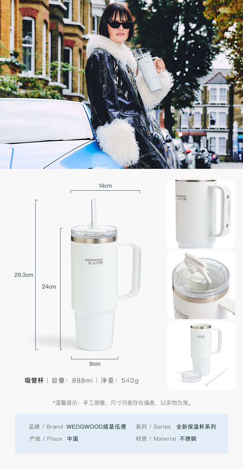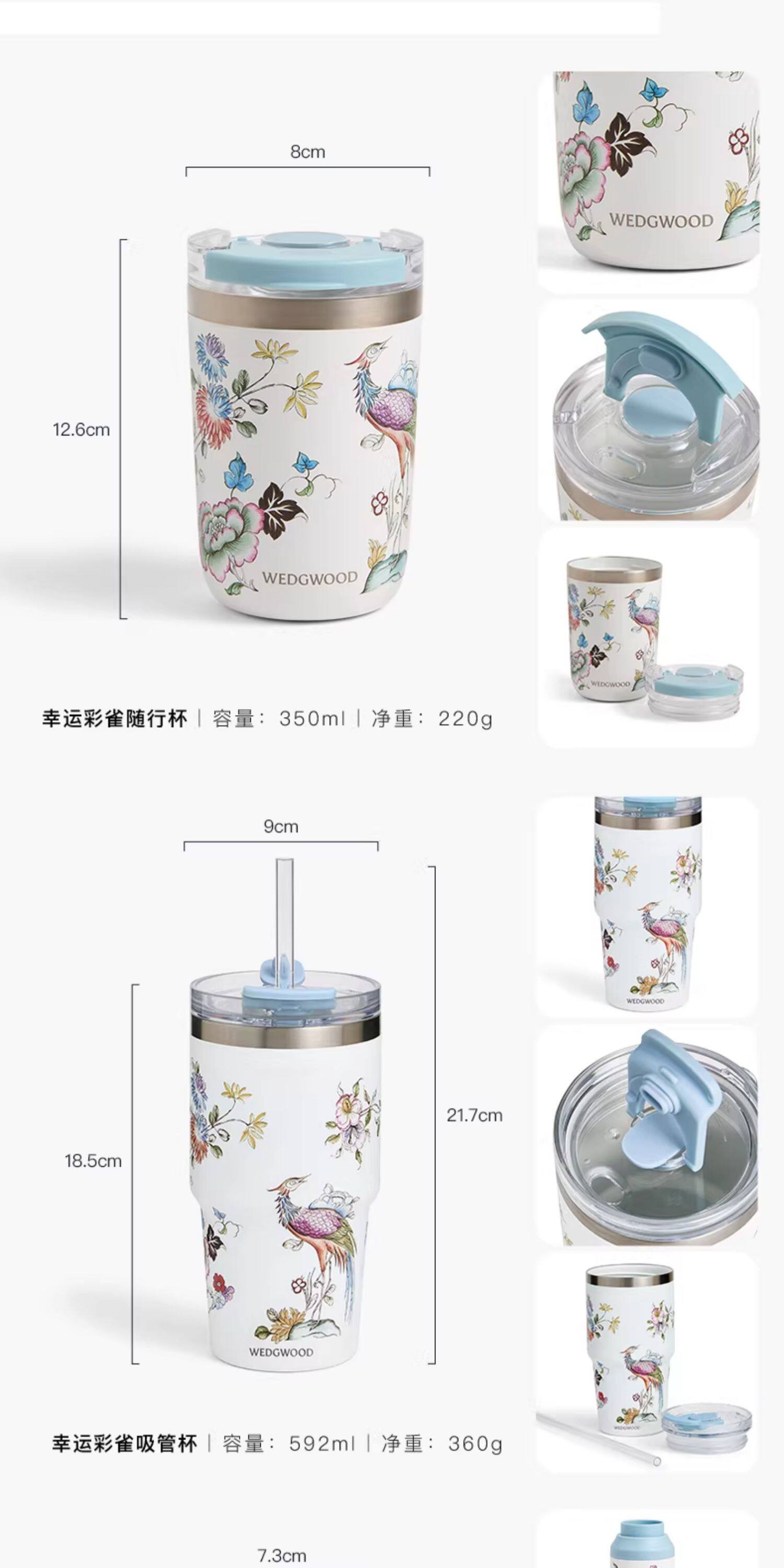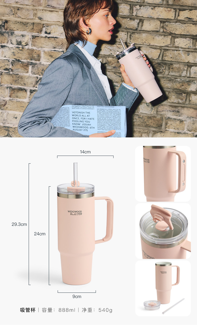 【WEDGWOOD】威基伍德陶瓷涂层内胆野草莓保温杯随身杯吸管杯