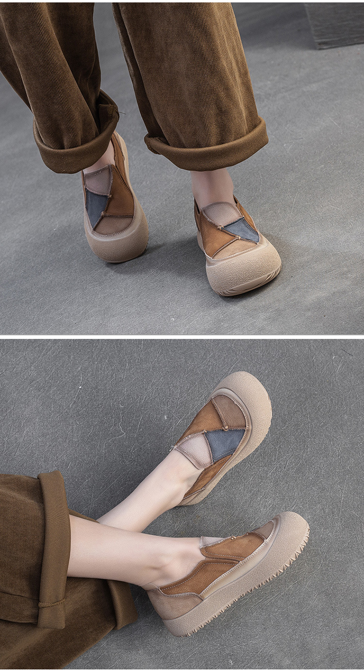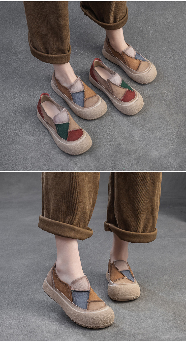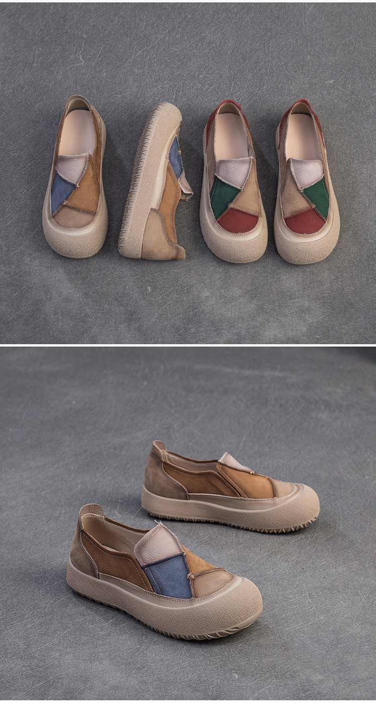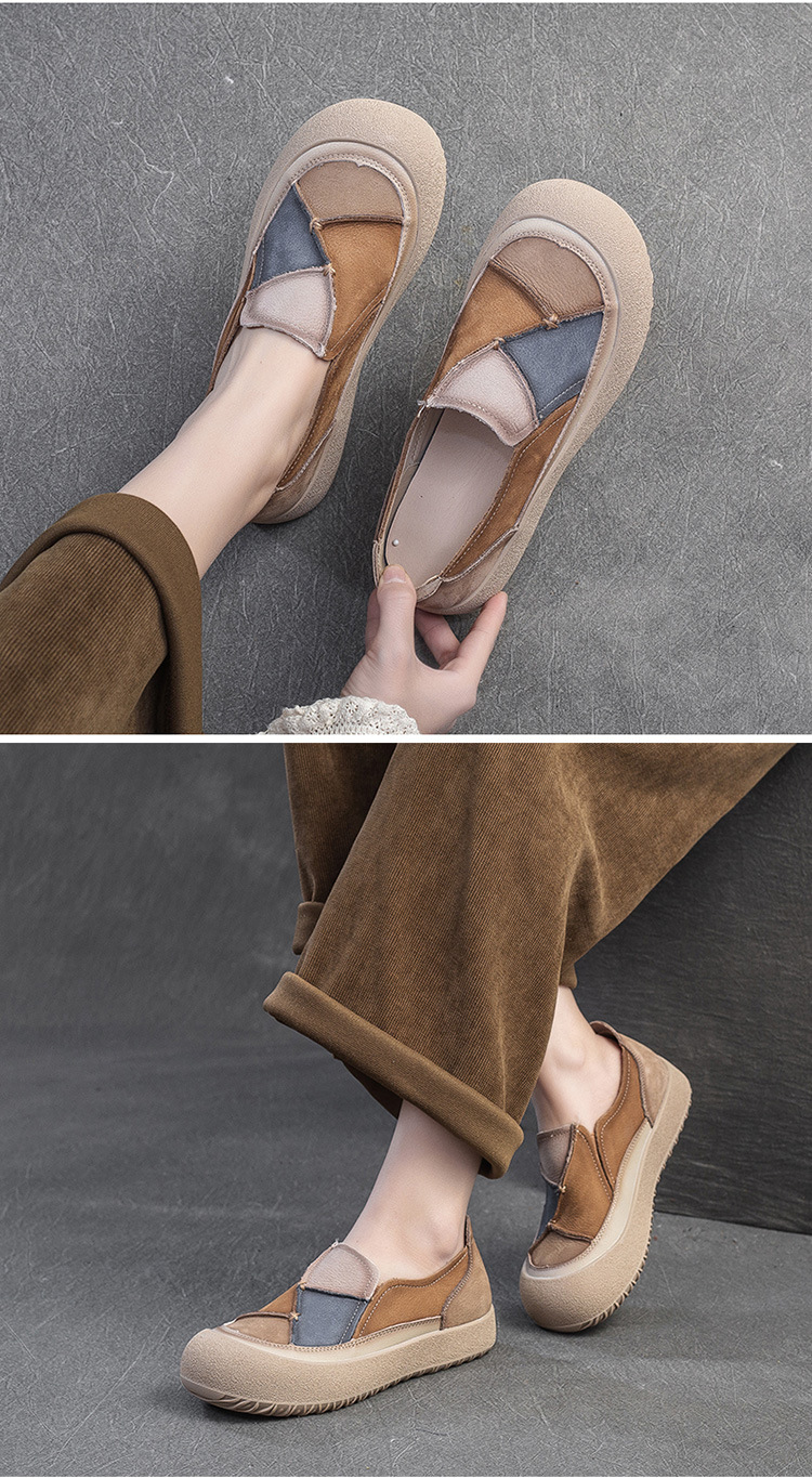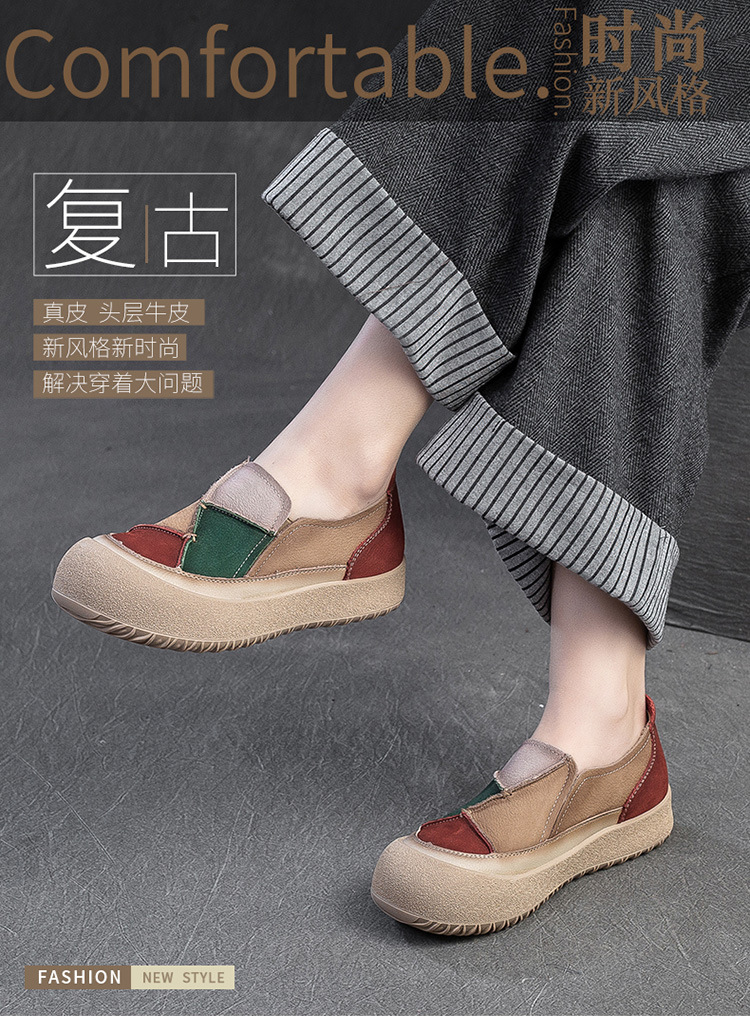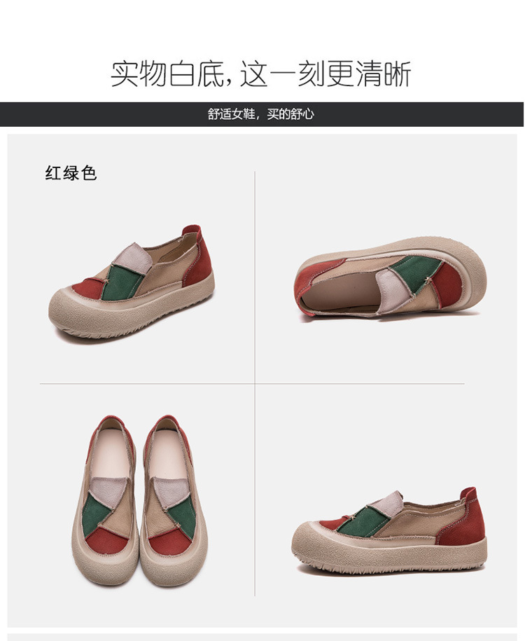 JZ5255 2025春季新款拼色补丁鞋头层牛皮舒适一脚蹬单鞋休闲女鞋