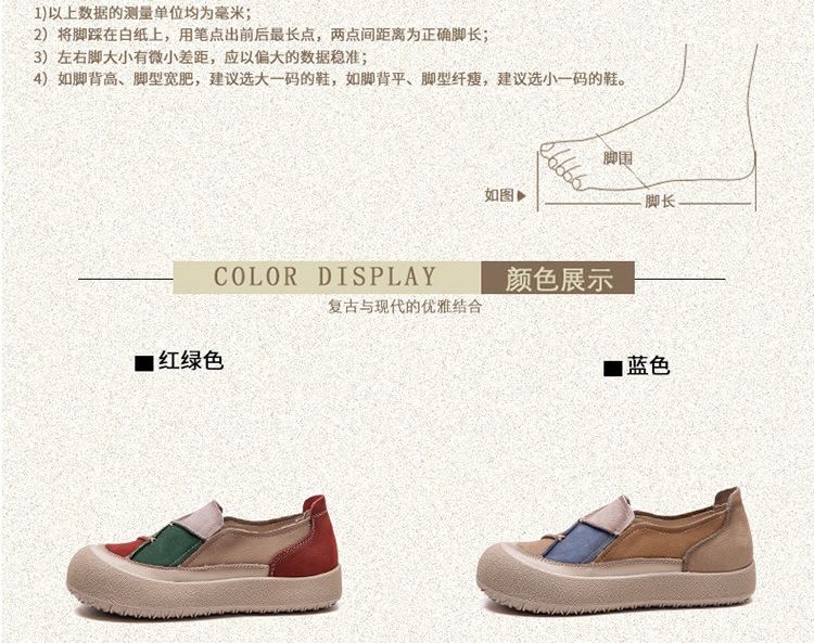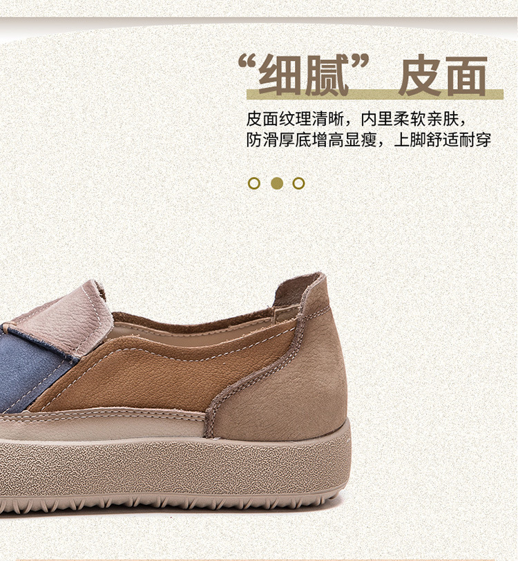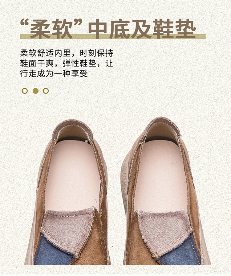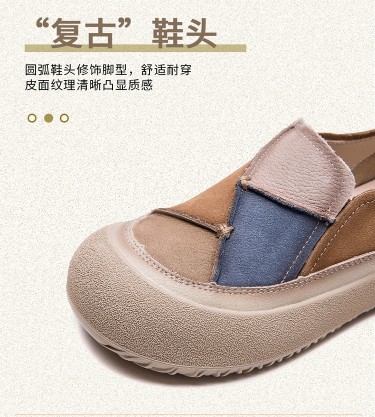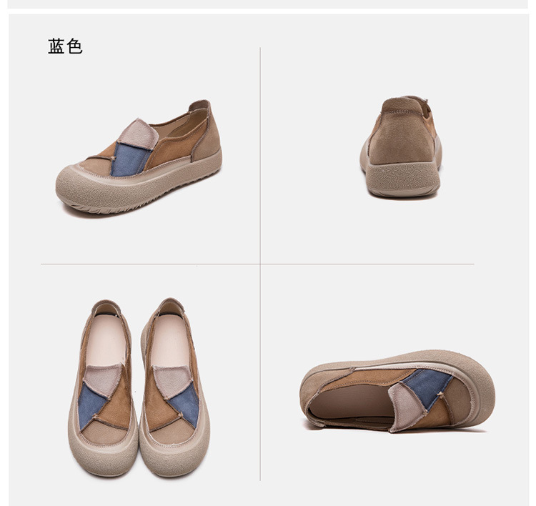 JZ5255 2025春季新款拼色补丁鞋头层牛皮舒适一脚蹬单鞋休闲女鞋 商品图2