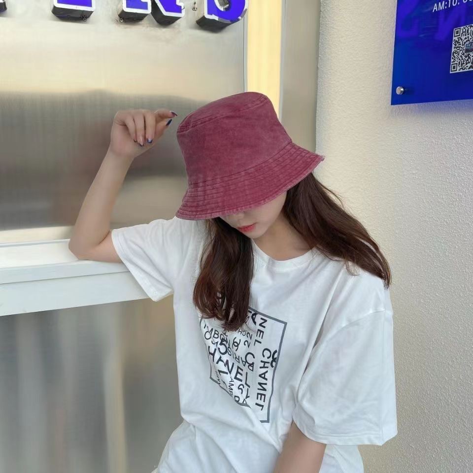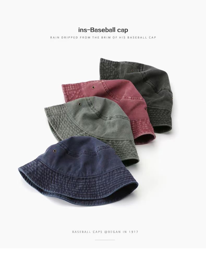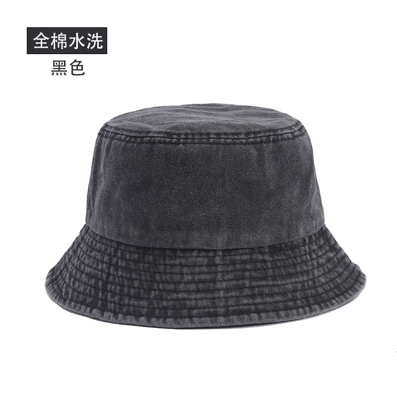 【复古做旧渔夫帽,时尚透气潮款!】复古做旧渔夫帽 纯色水洗棉牛仔帽子 春夏时尚透气情侣盆帽潮-QQ