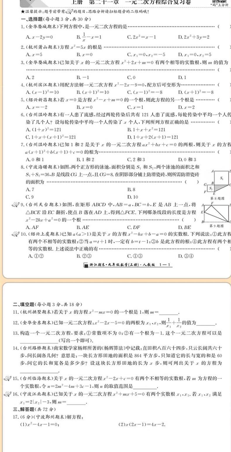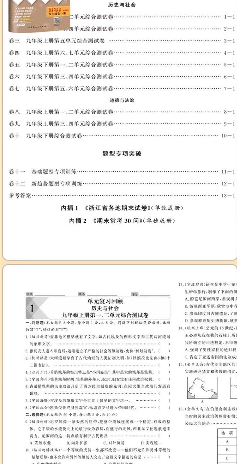 2026初中浙江期末下册各地期末试卷人教版浙教版单元期中