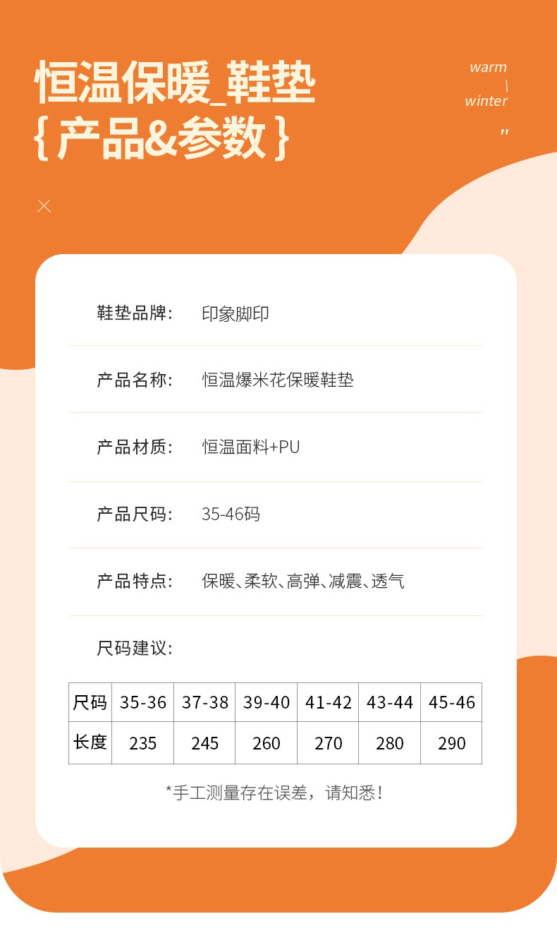【商品名称】恒温保暖自发热爆米花鞋垫(新)