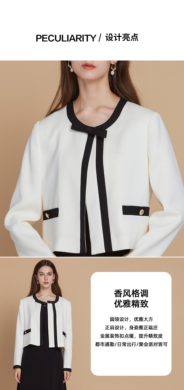 EITIE爱特爱气质小香风高级感撞色秋季新款短外套C2503812