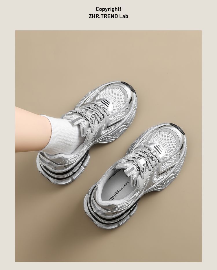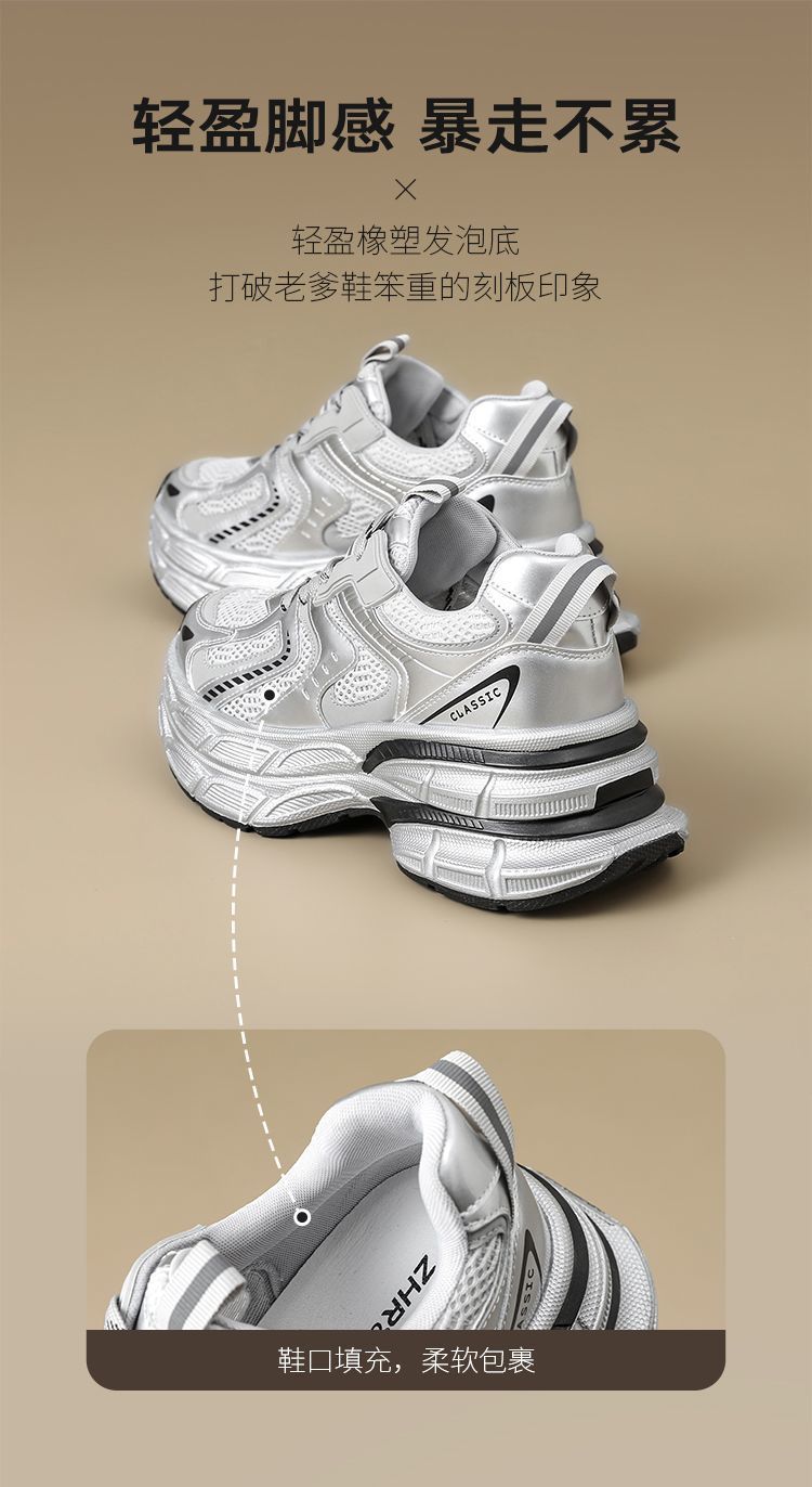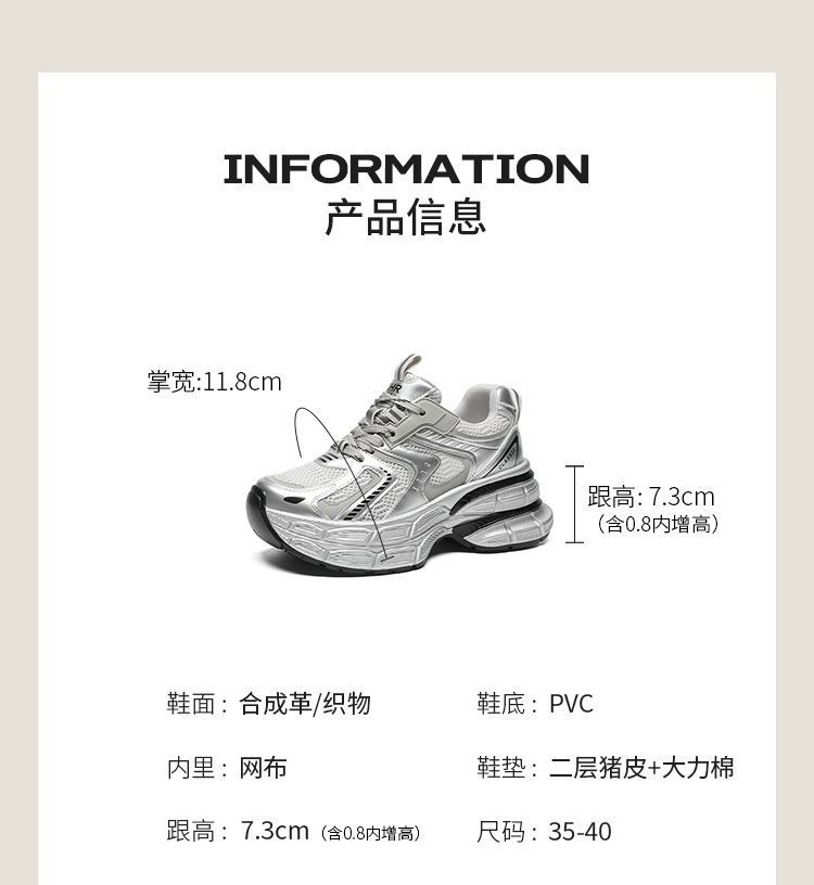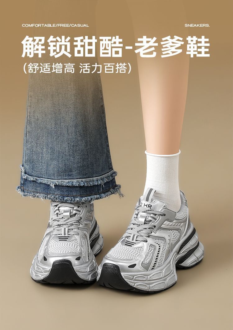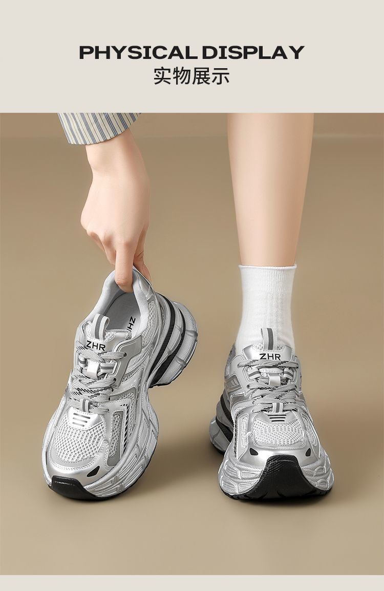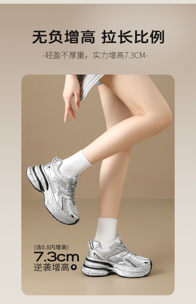 ZHR则则厚底7.3CM内增高老爹鞋女2025夏季网面透气银色休闲运动鞋