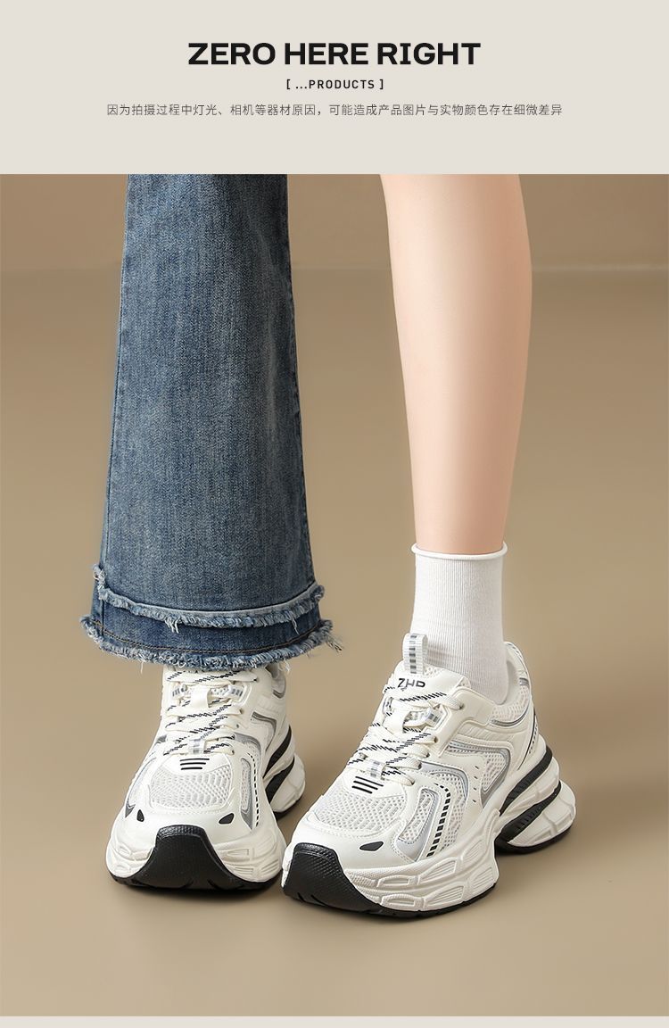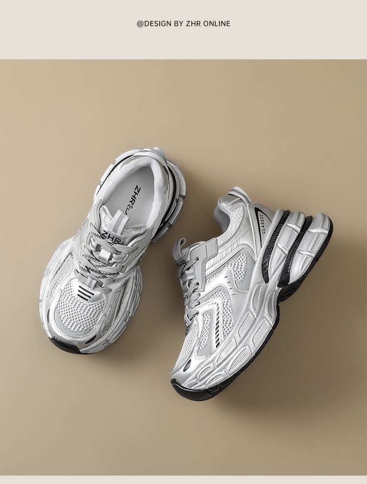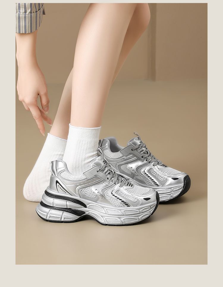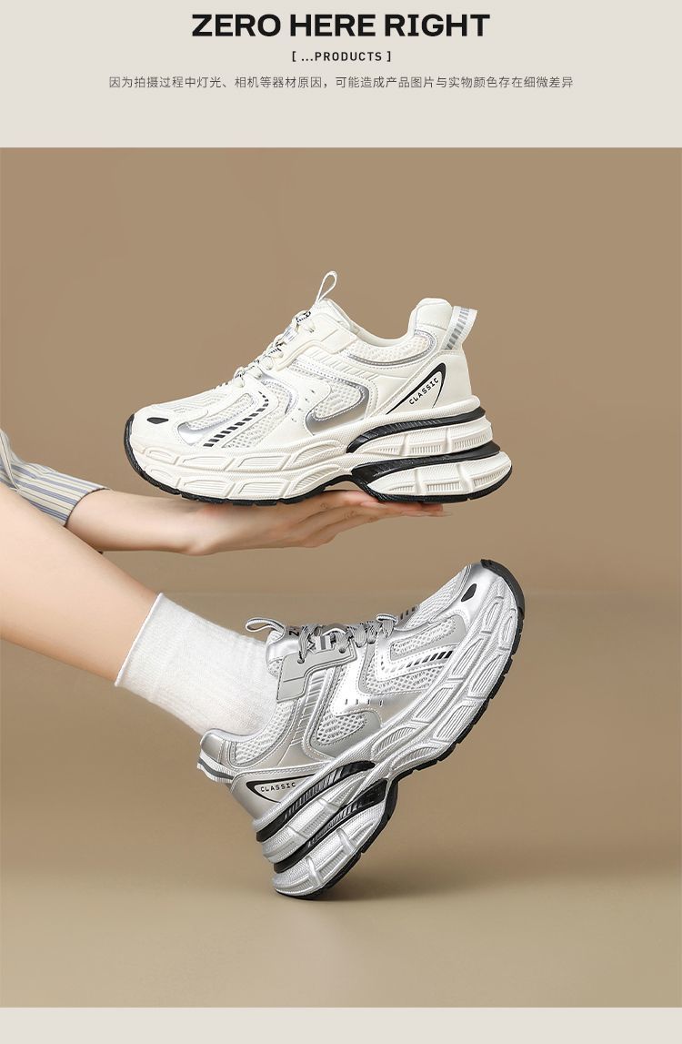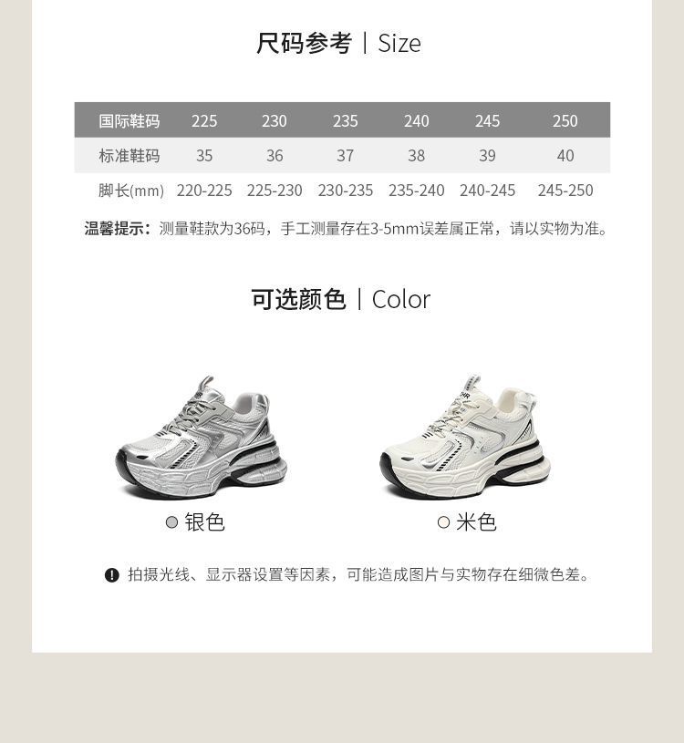ZHR则则厚底7.3CM内增高老爹鞋女2025夏季网面透气银色休闲运动鞋