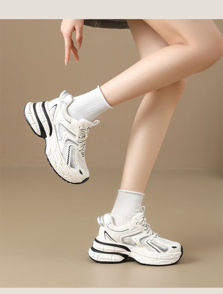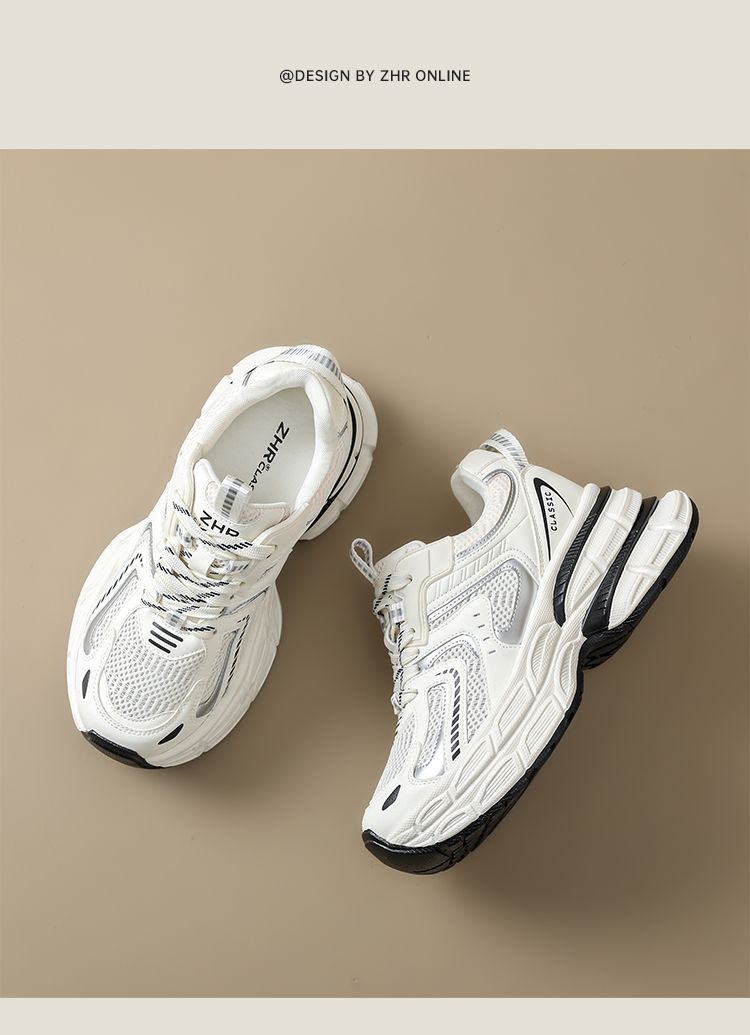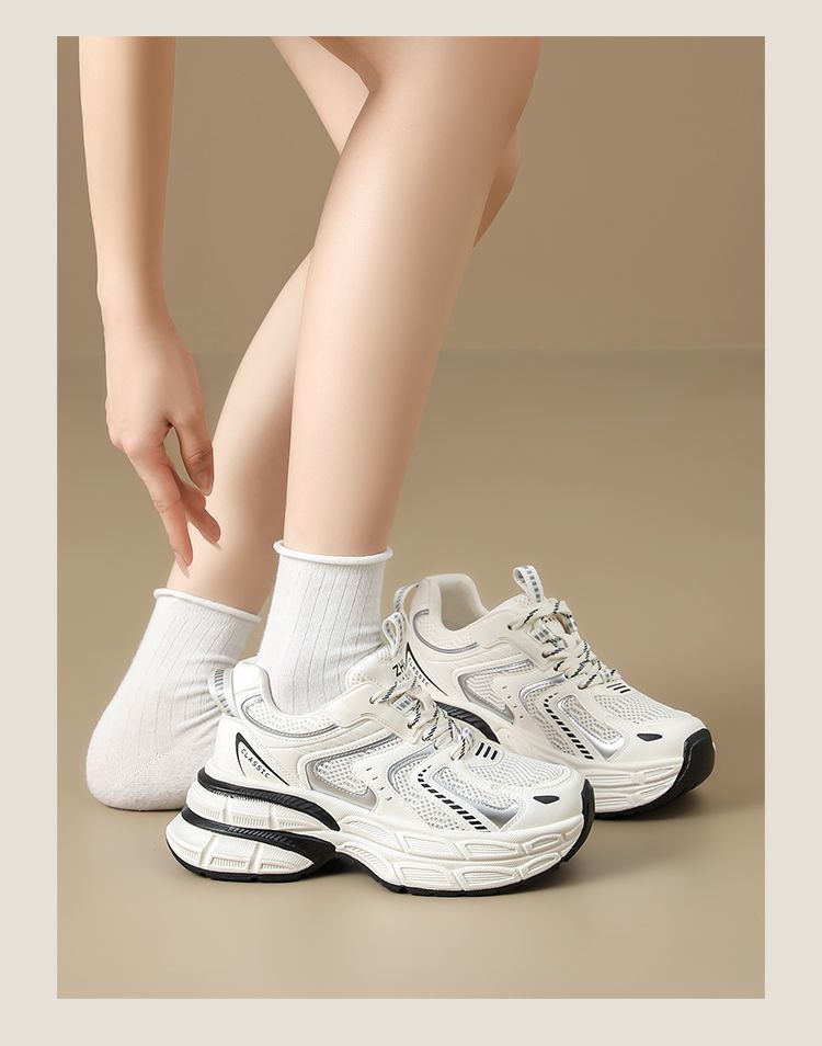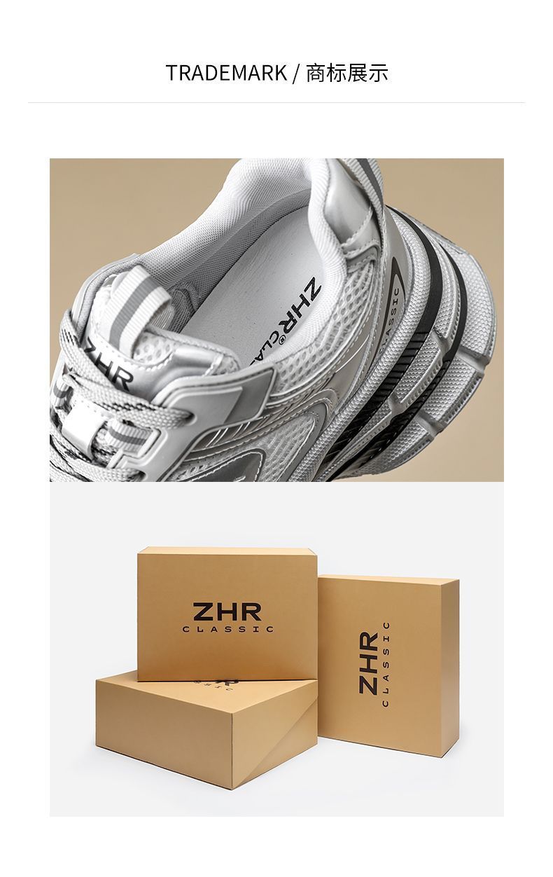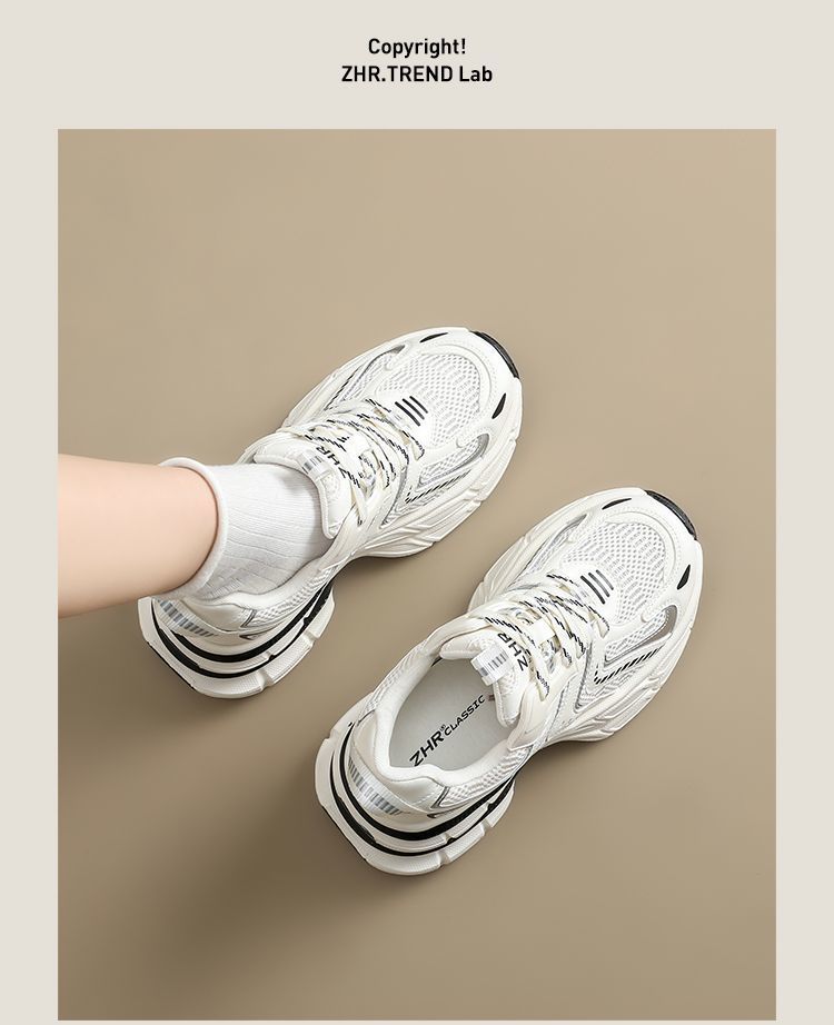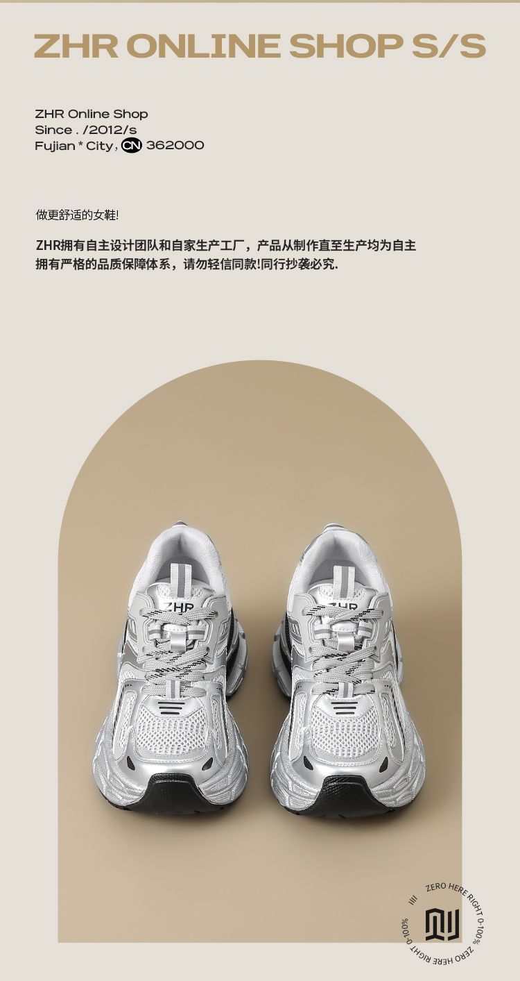 ZHR则则厚底7.3CM内增高老爹鞋女2025夏季网面透气银色休闲运动鞋