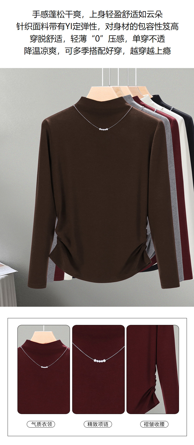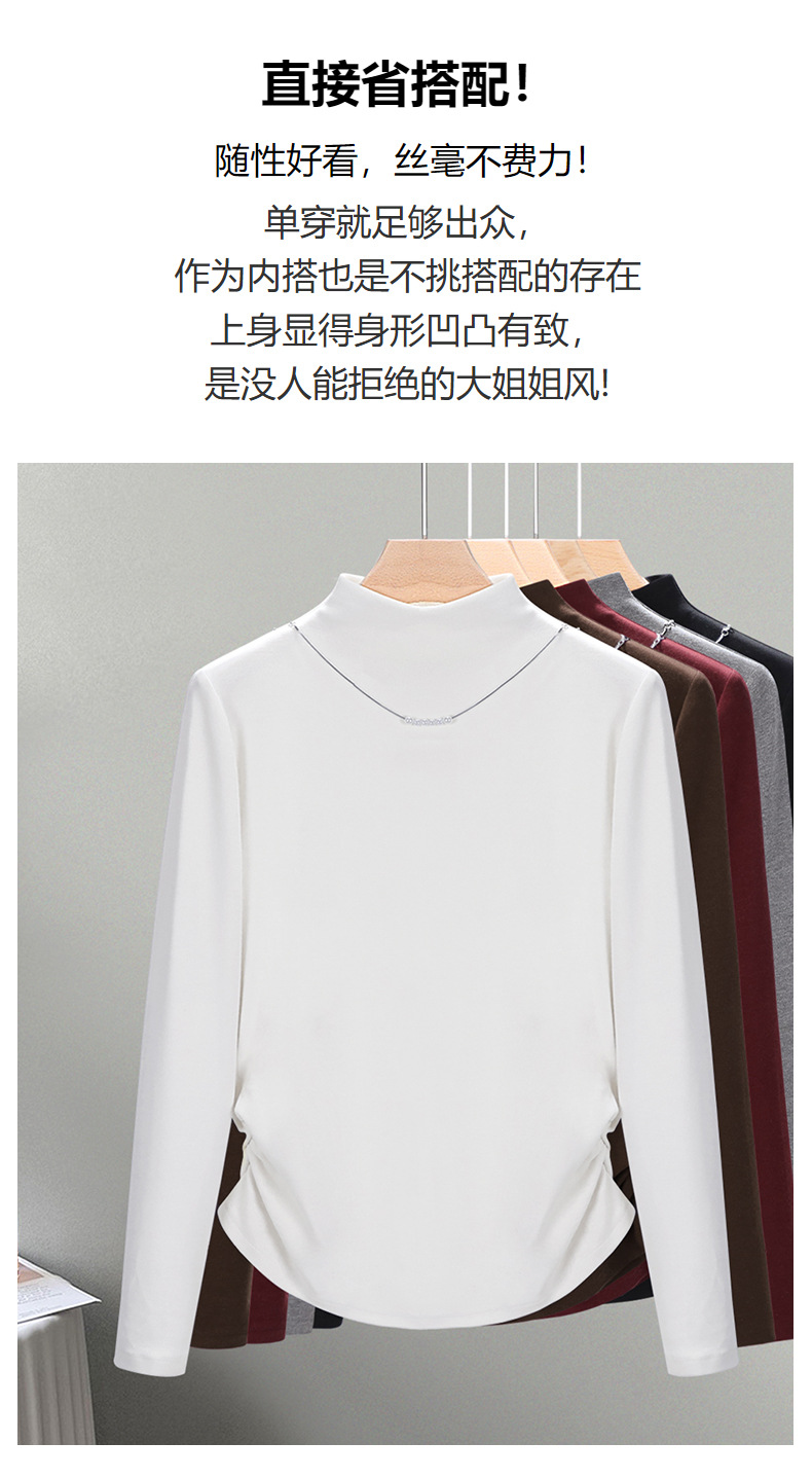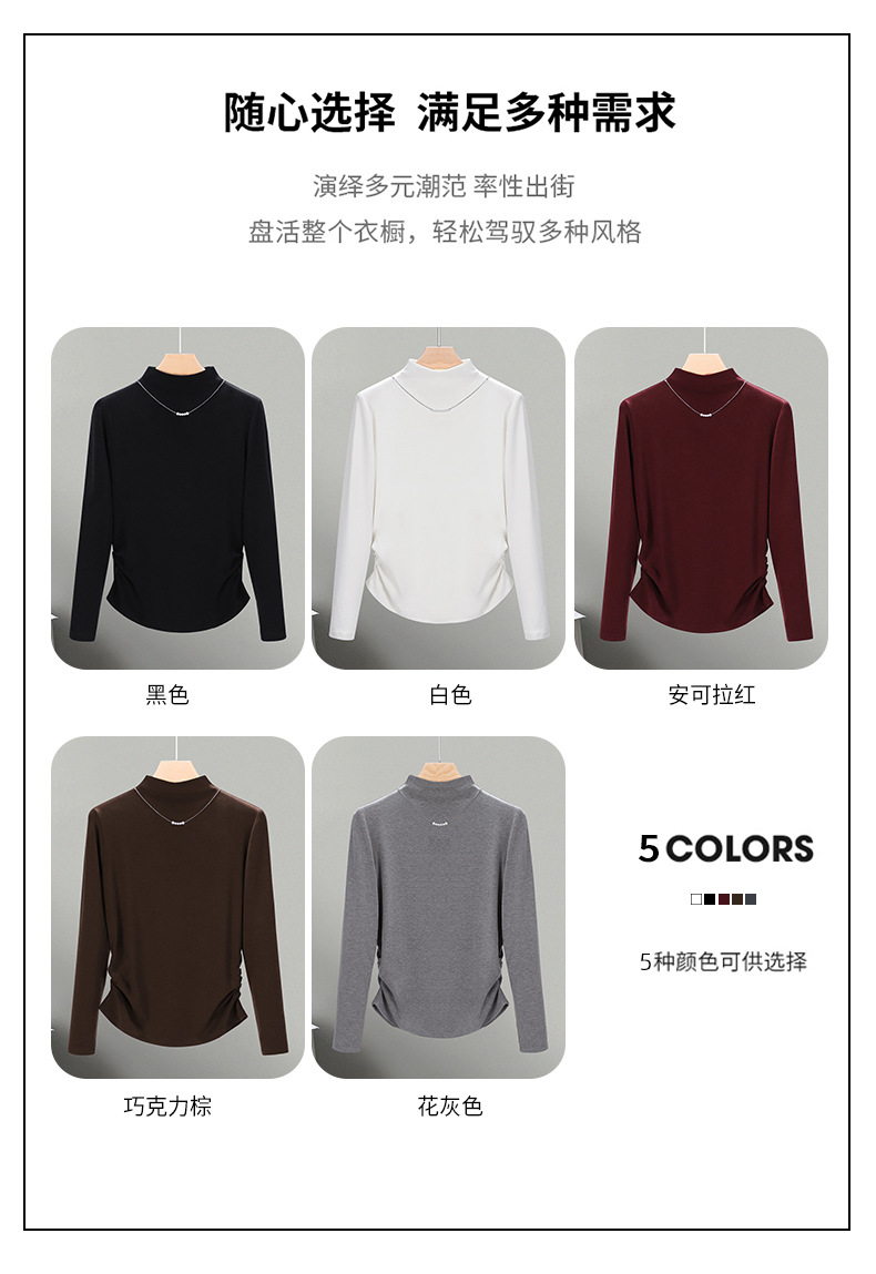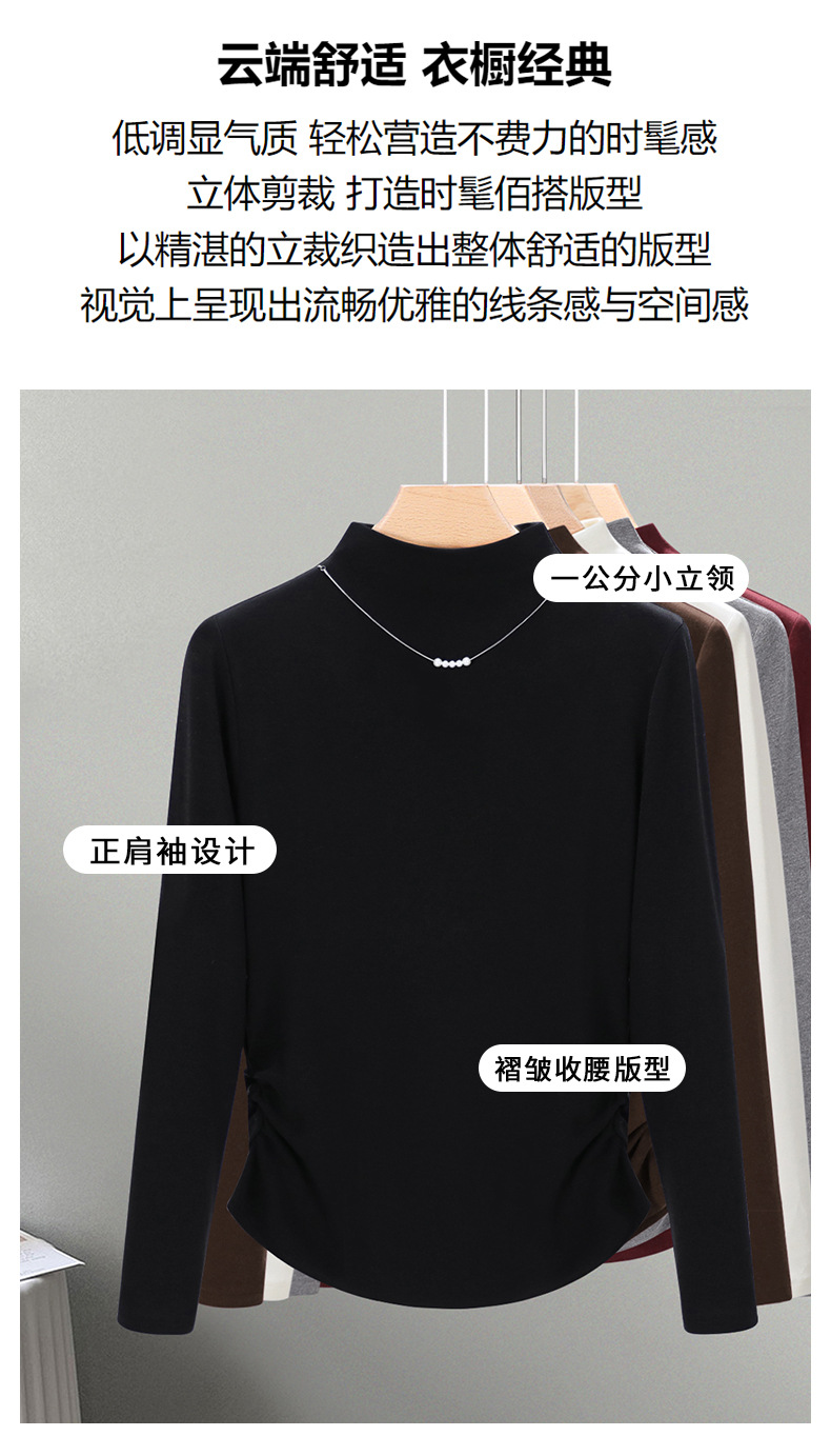 丁摩 女装半高领女士t恤长袖秋季气质正肩袖收腰显瘦上衣4ZF-6836
