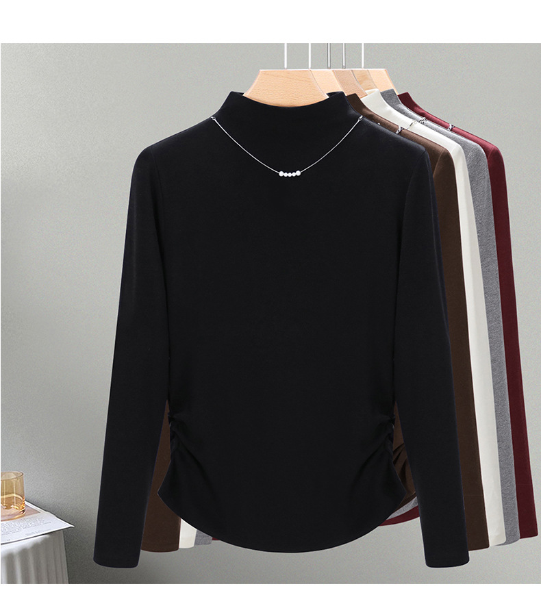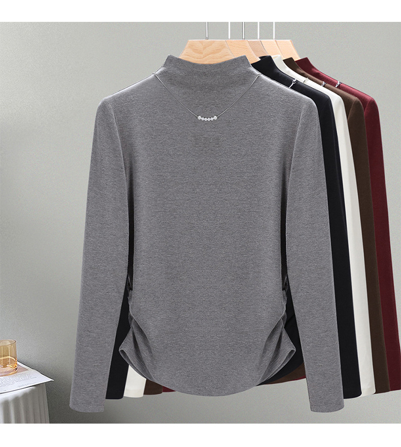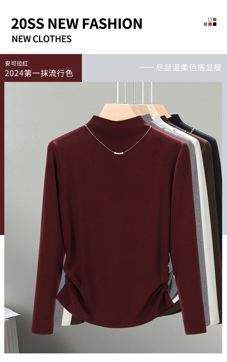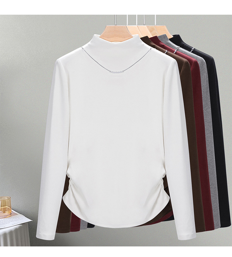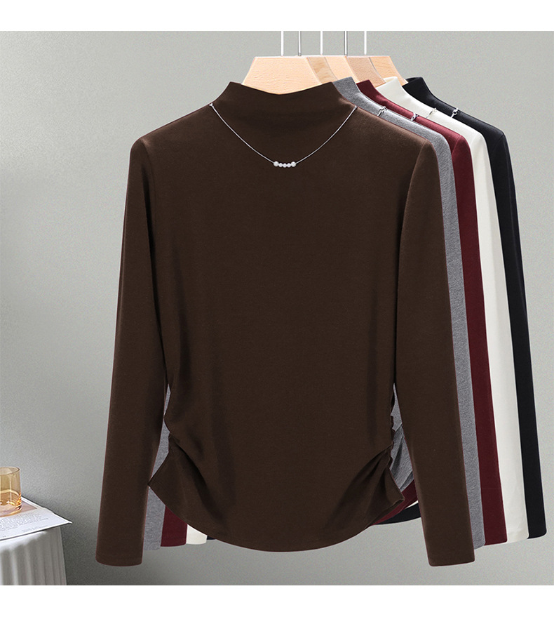 丁摩 女装半高领女士t恤长袖秋季气质正肩袖收腰显瘦上衣4ZF-6836