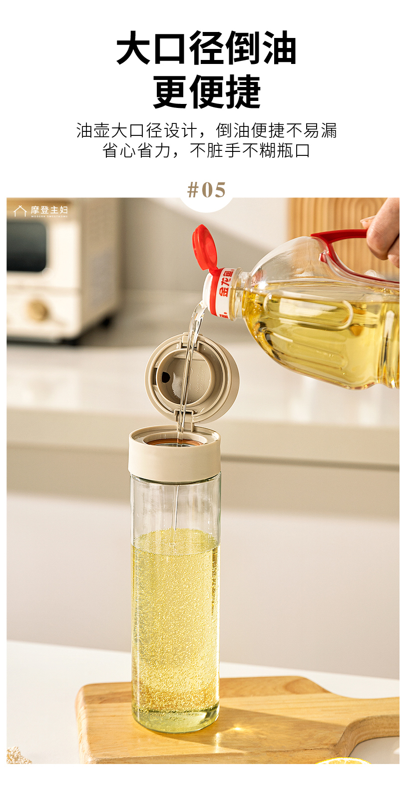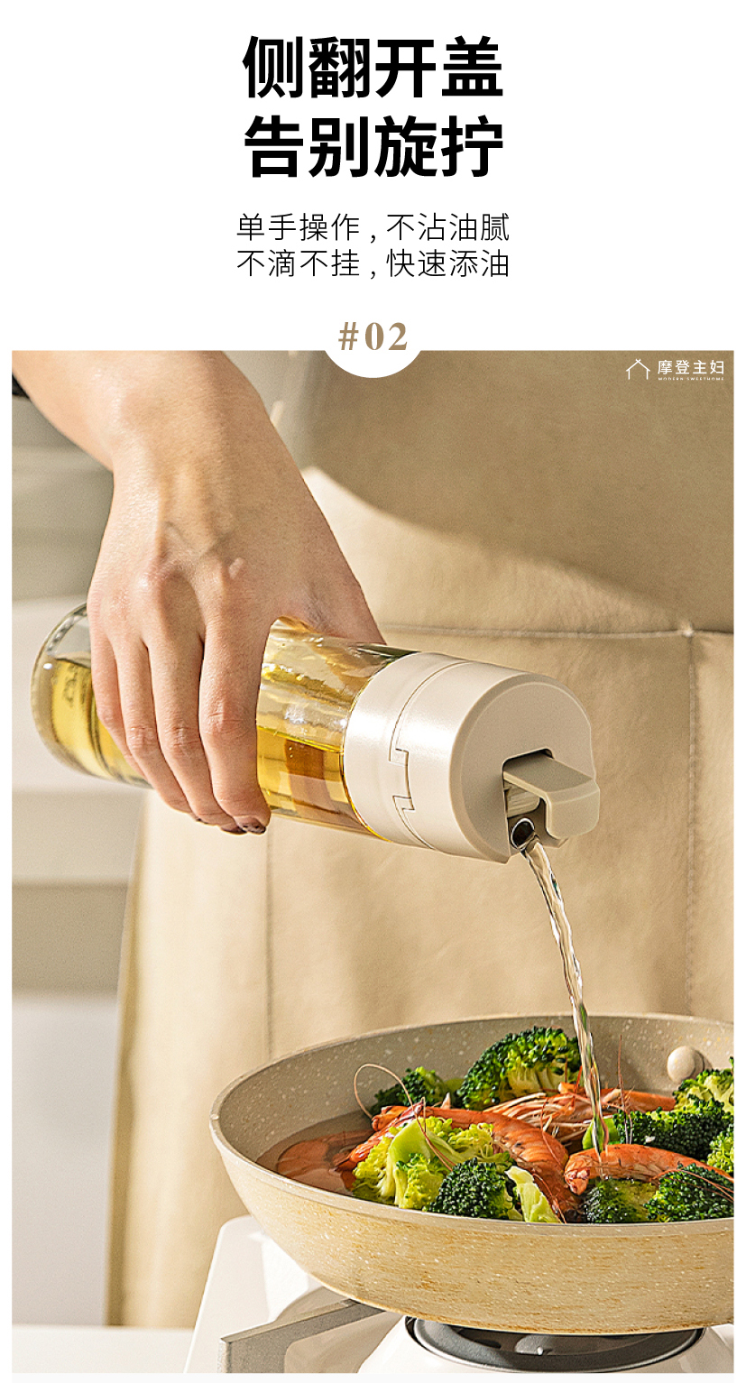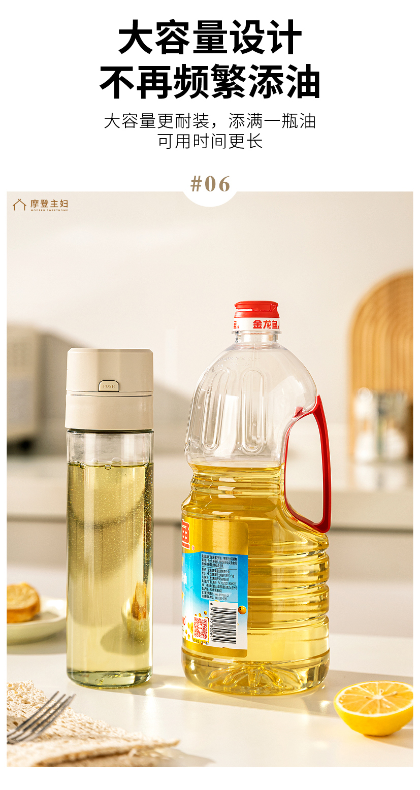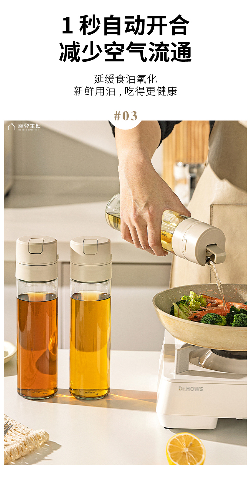摩登主妇自动开合油壶家用食品级玻璃油罐厨房专用密封不挂油油瓶