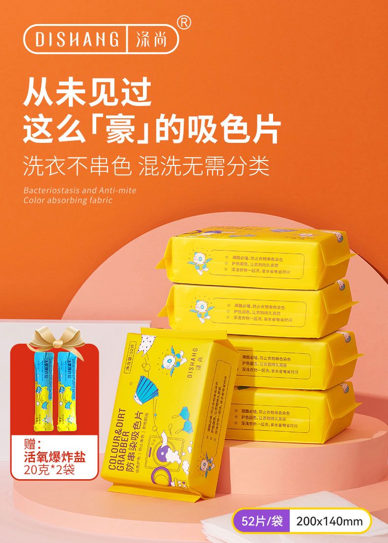 涤尚防串染吸色片5袋(送爆炸盐40克)-日常款共260片