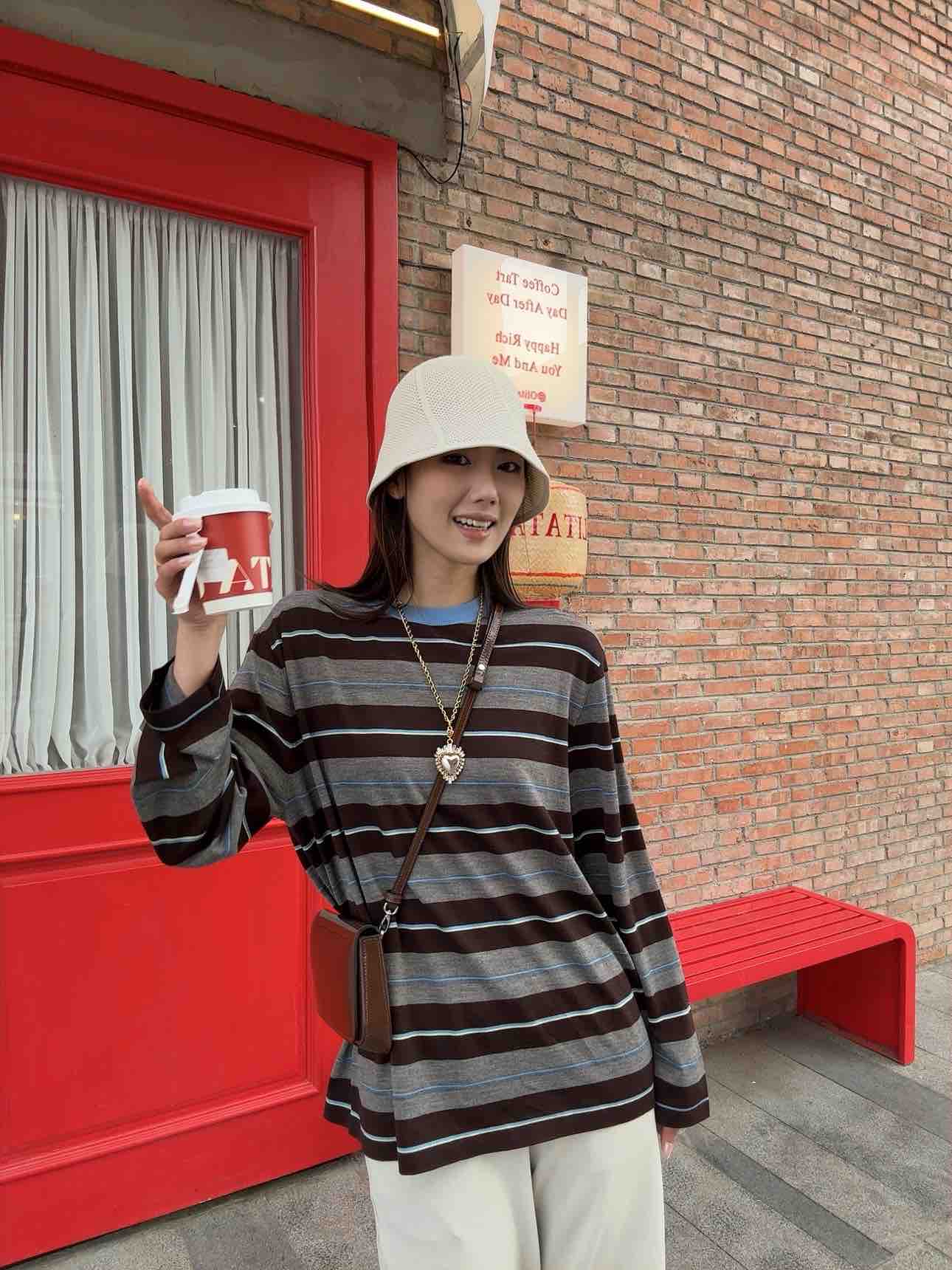 「咖灰撞色条纹衫」|宽松显瘦不挑人!
