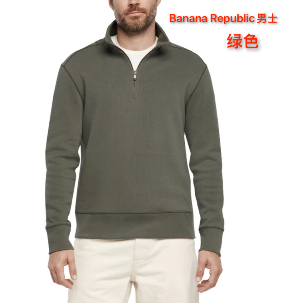 到手价218元 Banana Republic男士长袖四分之一拉链卫衣 美国代购,无中文标签,介意慎拍