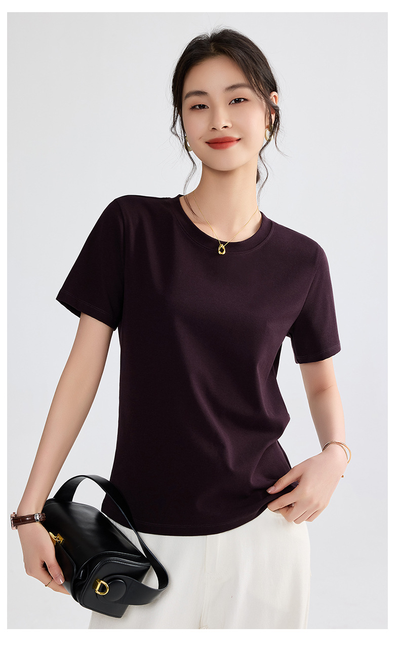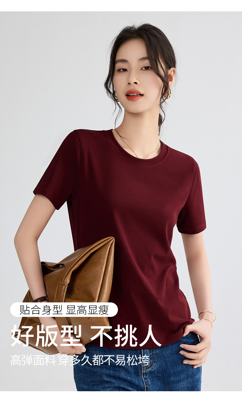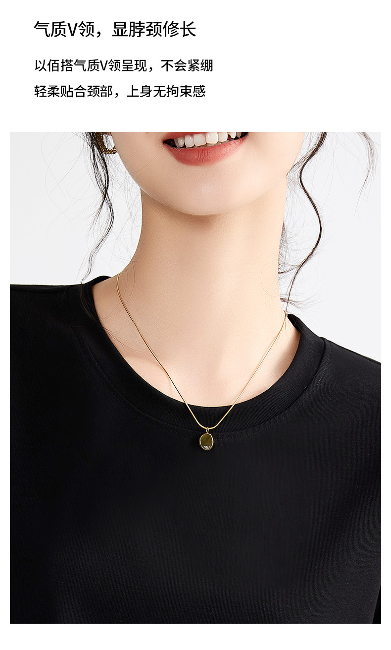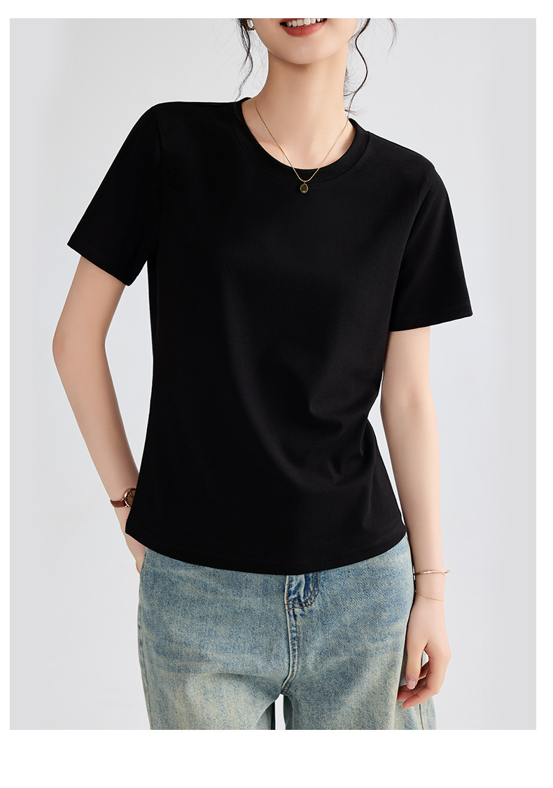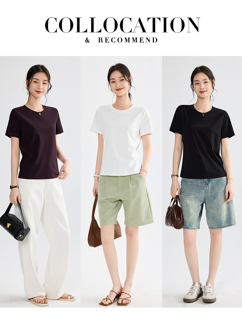 「自j」全新升级【铂金会员119/天猫159/差价40】(70653)洛诗琳纯色正肩T2025夏季新款圆领修身显瘦短袖上衣女