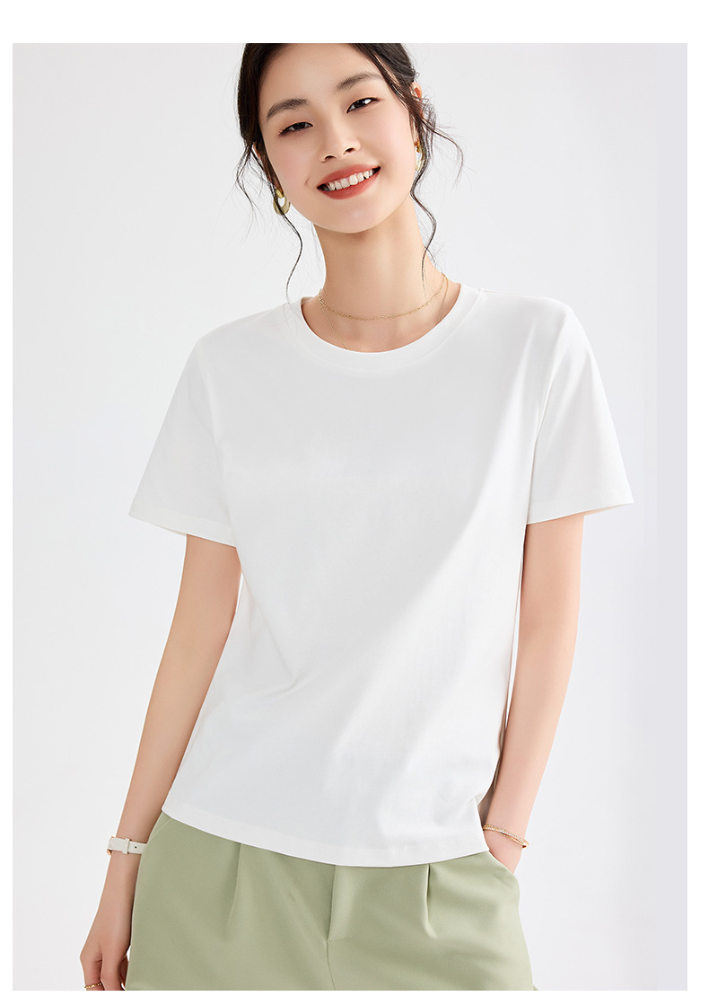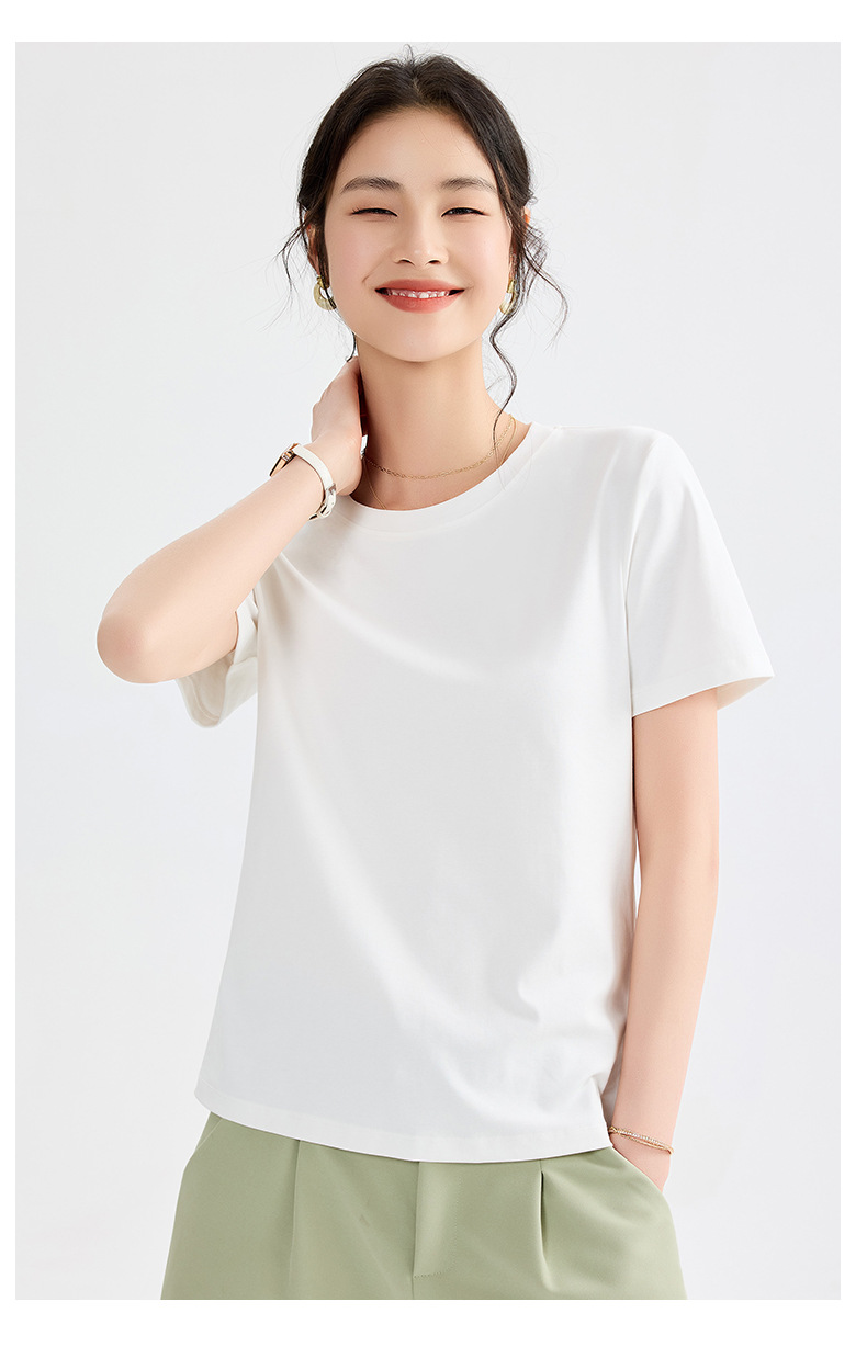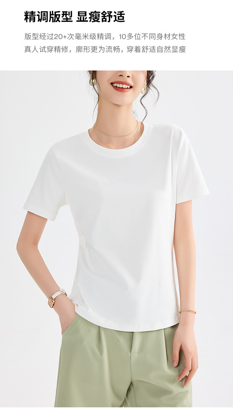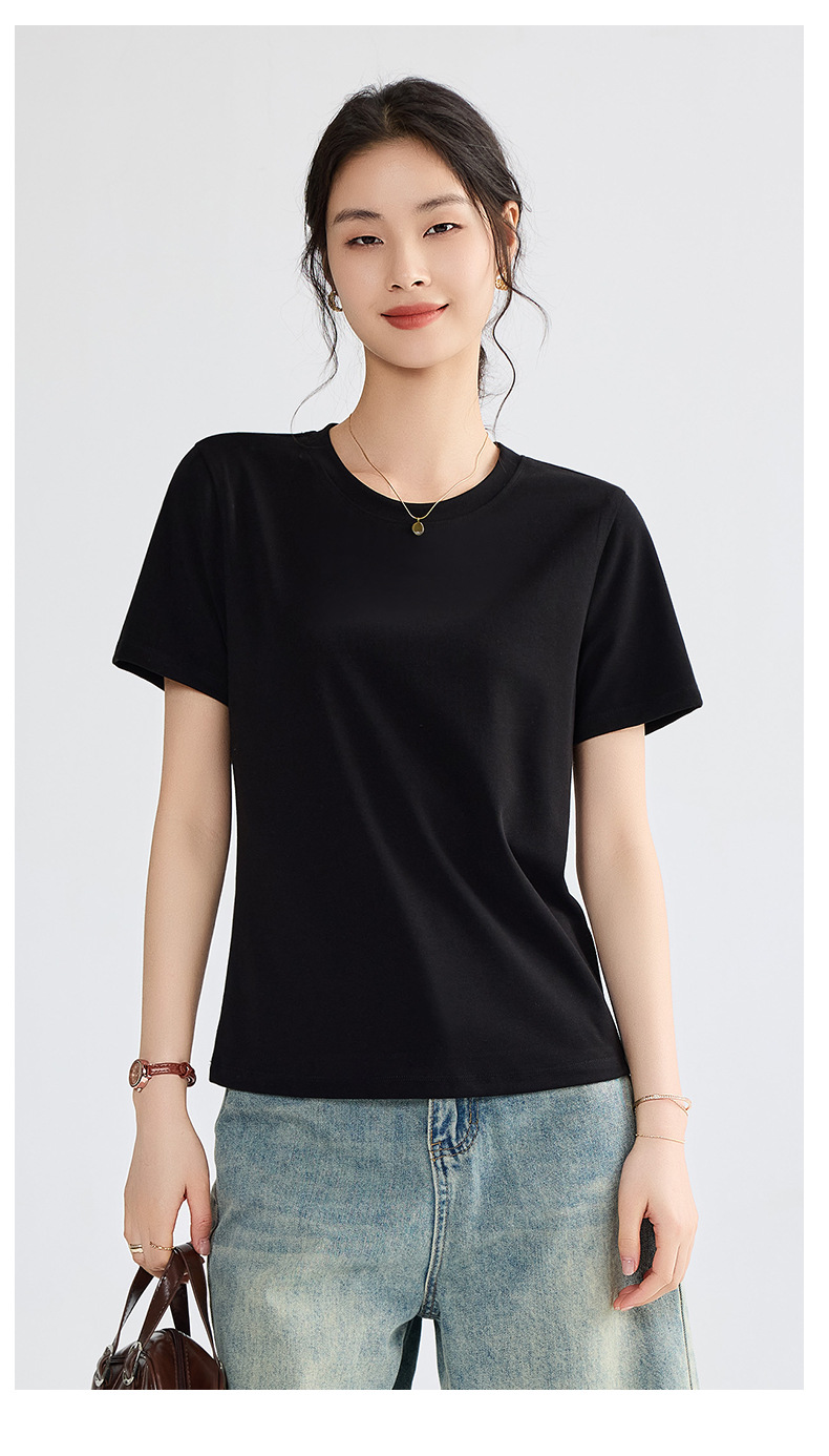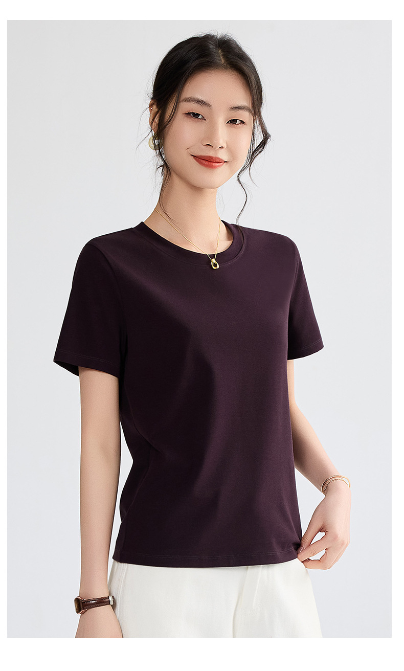 「自j」全新升级【铂金会员119/天猫159/差价40】(70653)洛诗琳纯色正肩T2025夏季新款圆领修身显瘦短袖上衣女