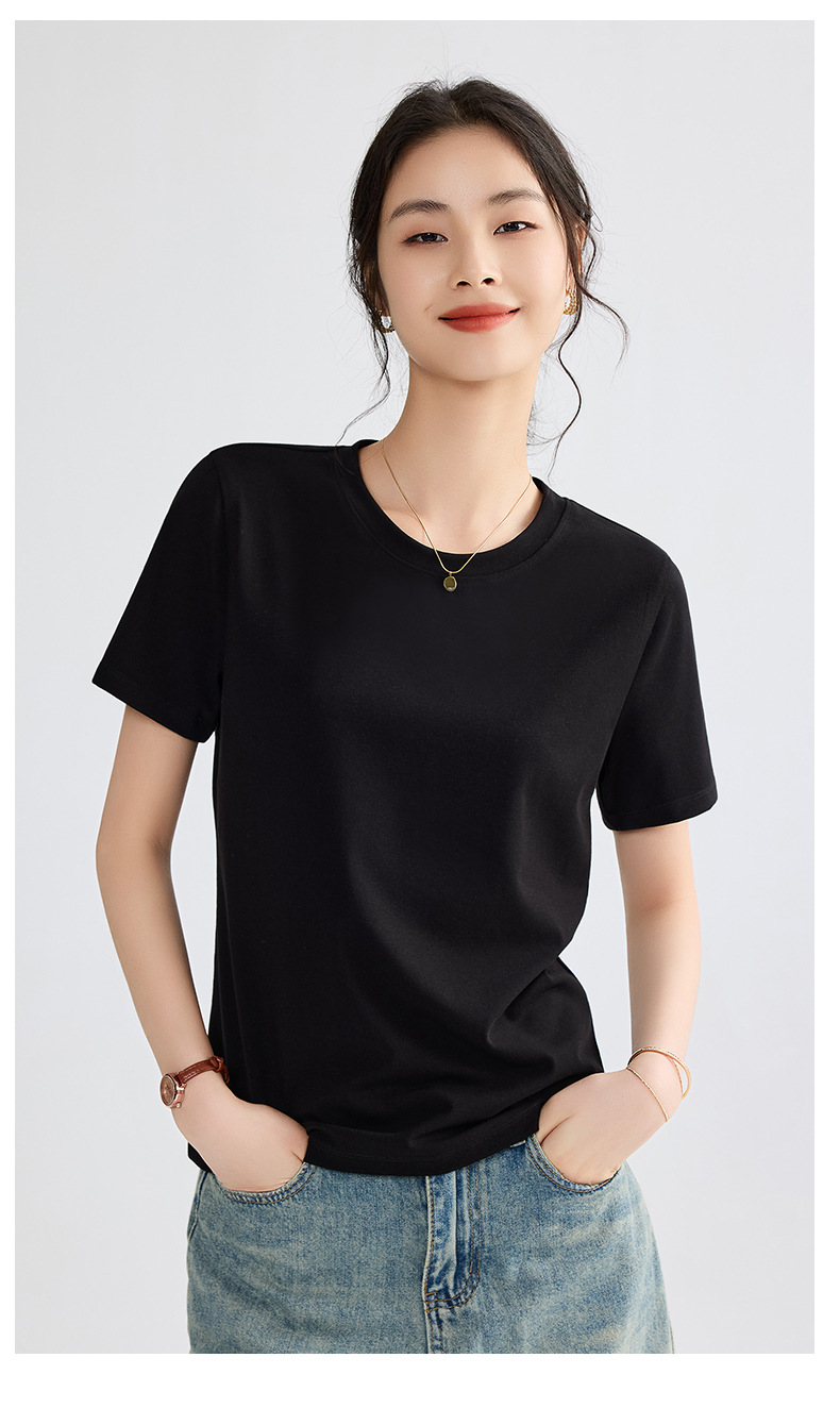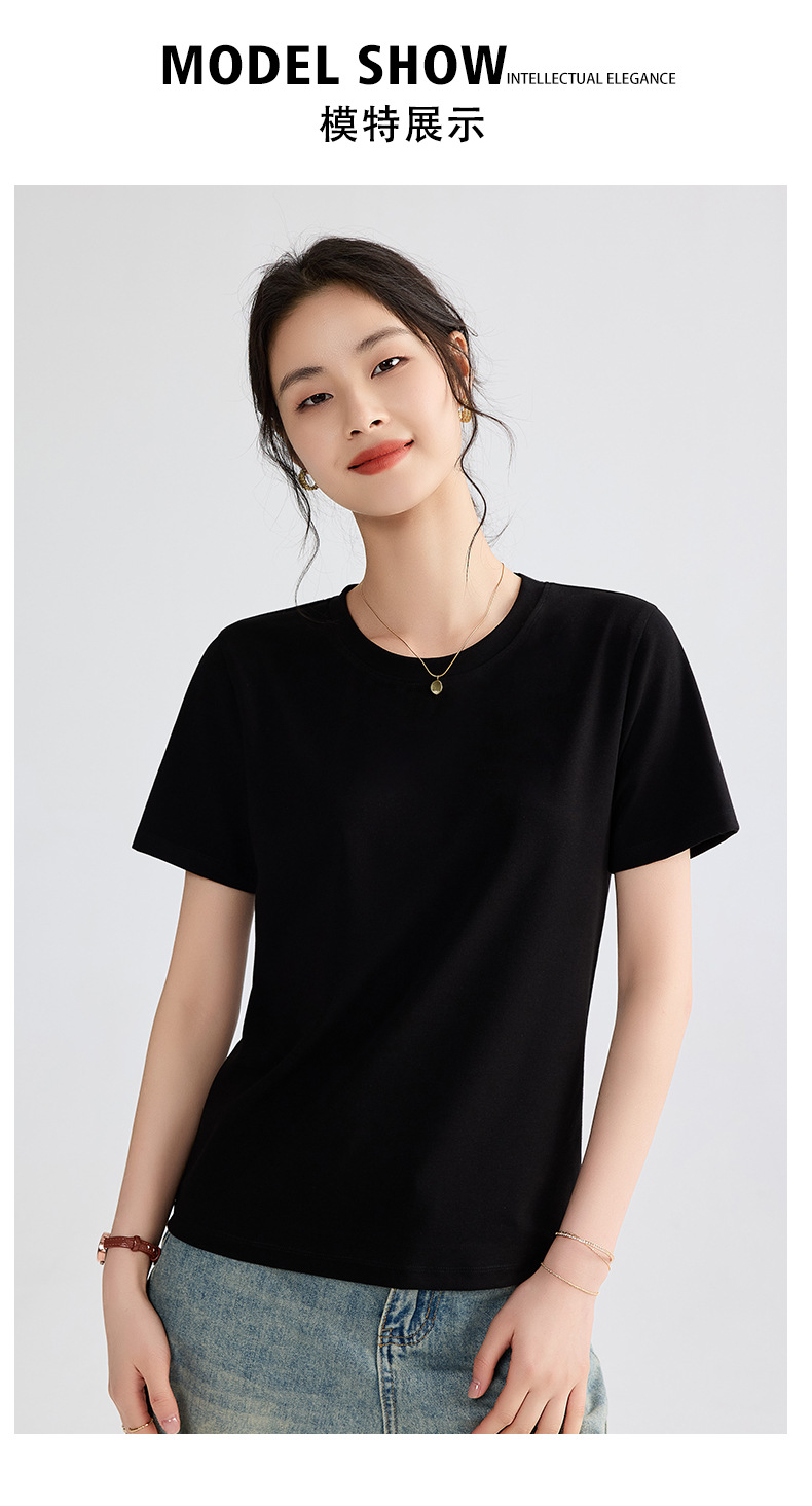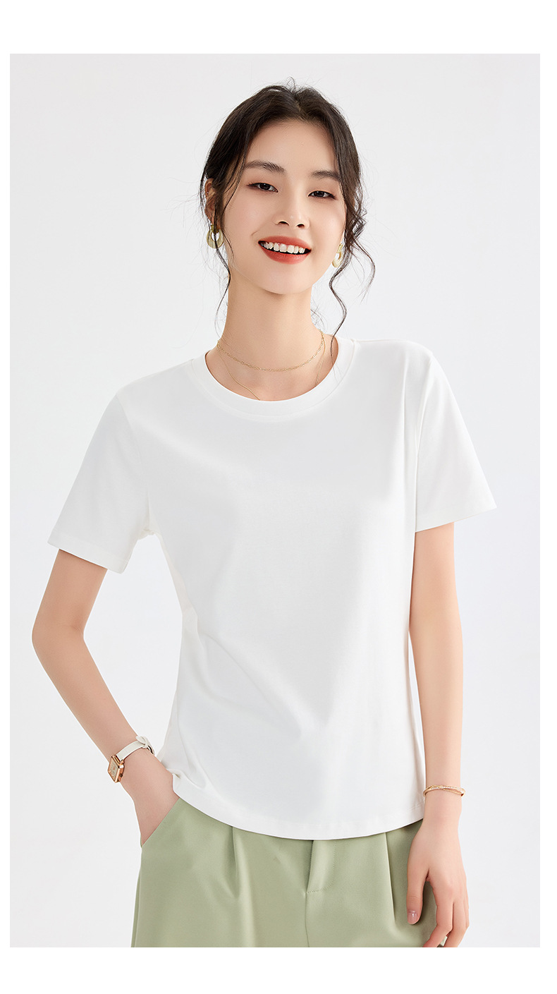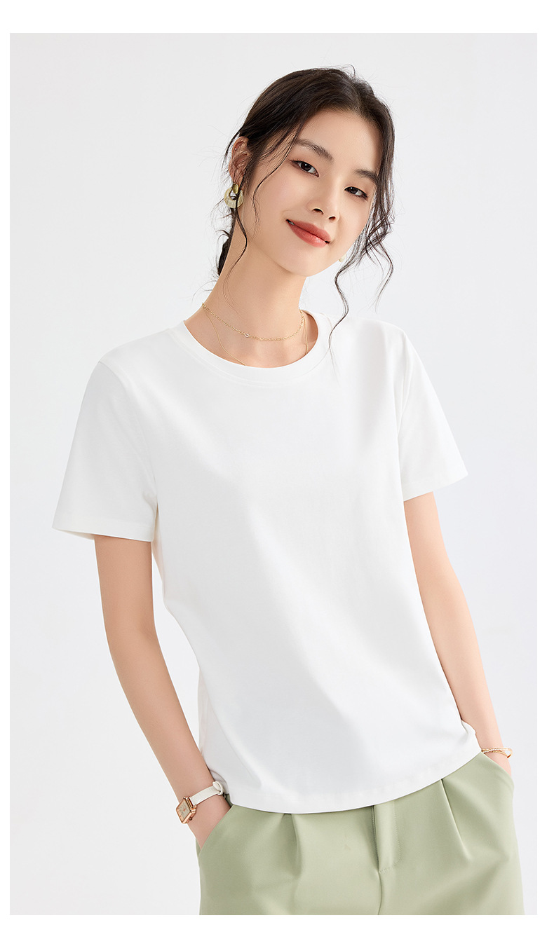 「自j」全新升级【铂金会员119/天猫159/差价40】(70653)洛诗琳纯色正肩T2025夏季新款圆领修身显瘦短袖上衣女