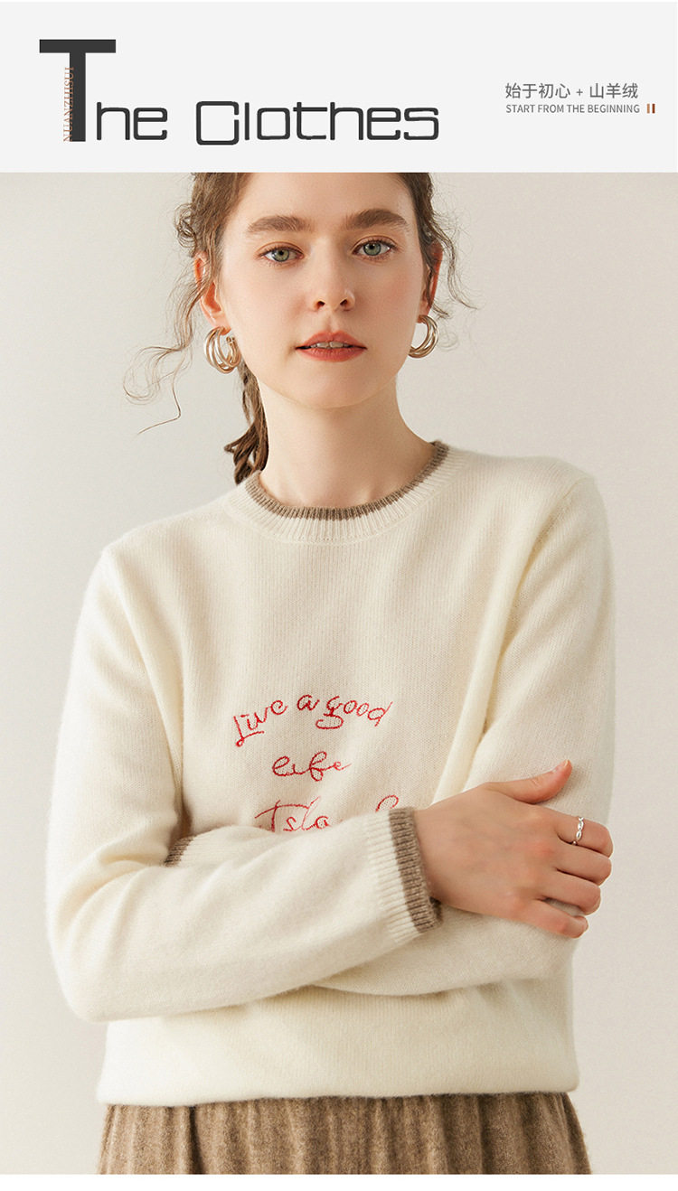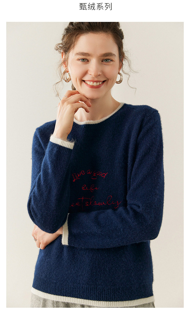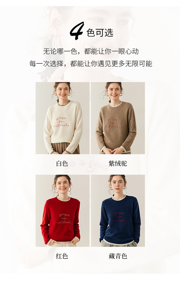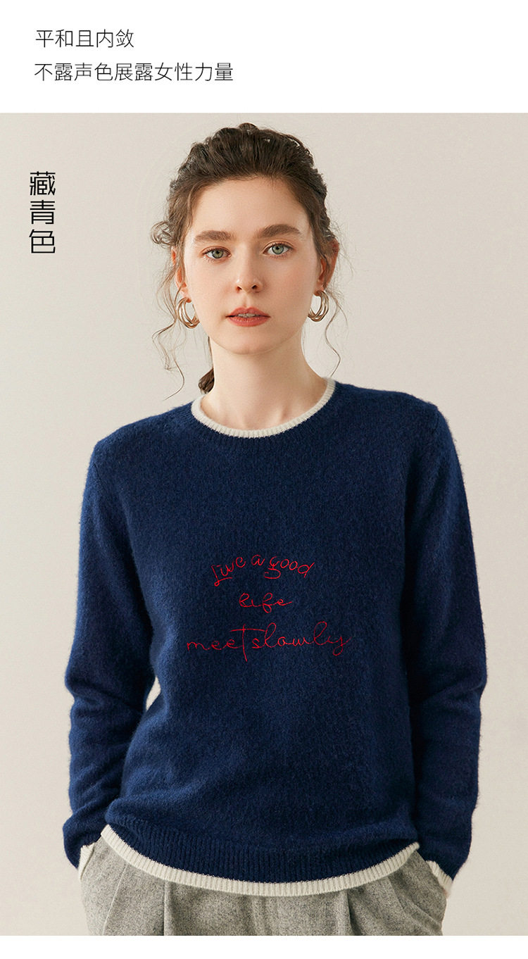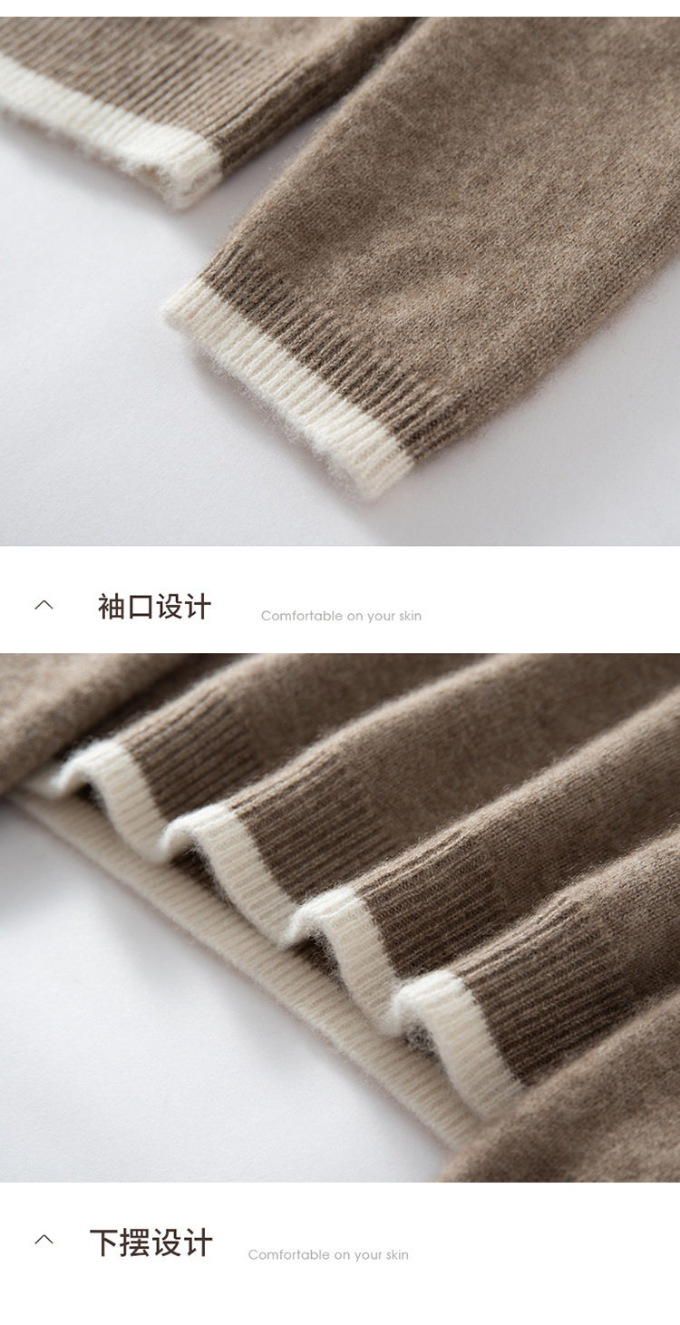 洛诗琳气质撞色圆领羊绒衫2025秋冬加厚宽松针织毛衣rig15609