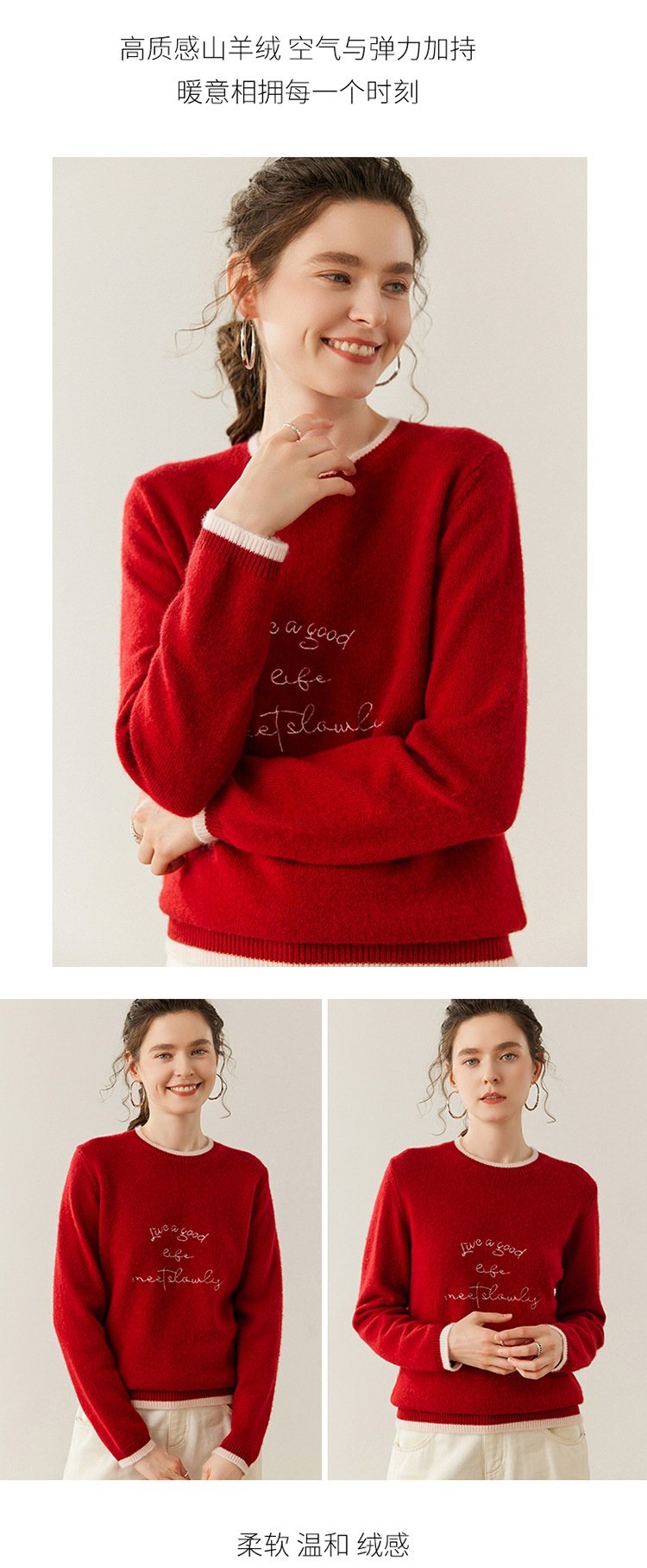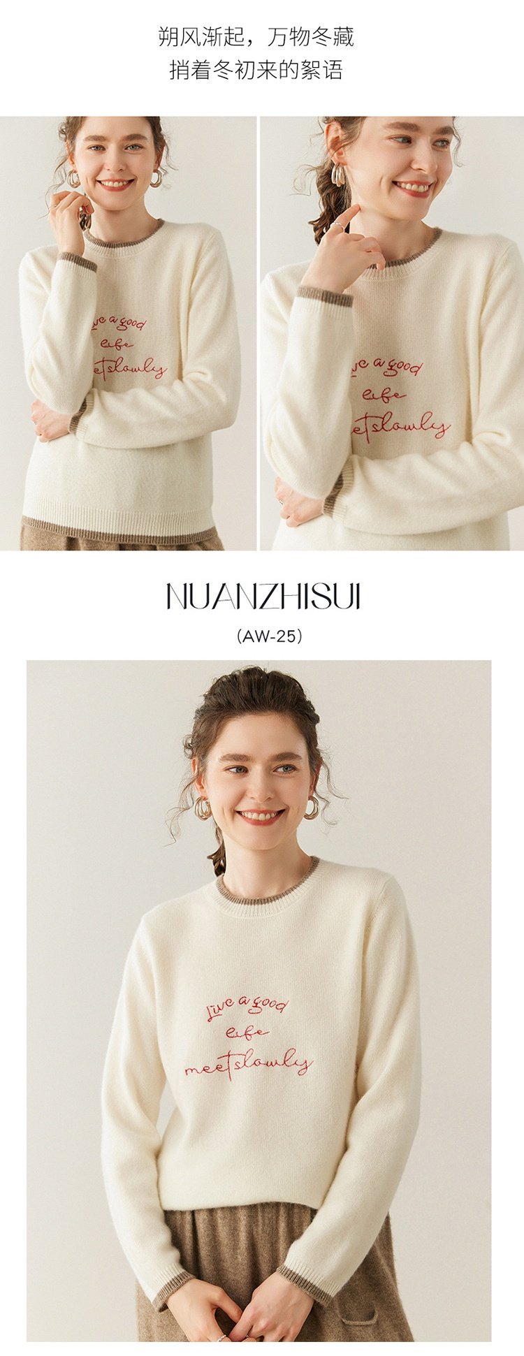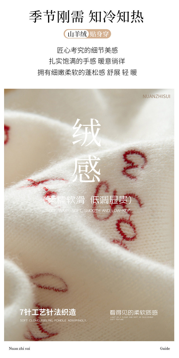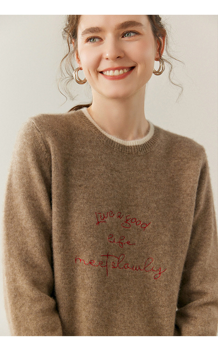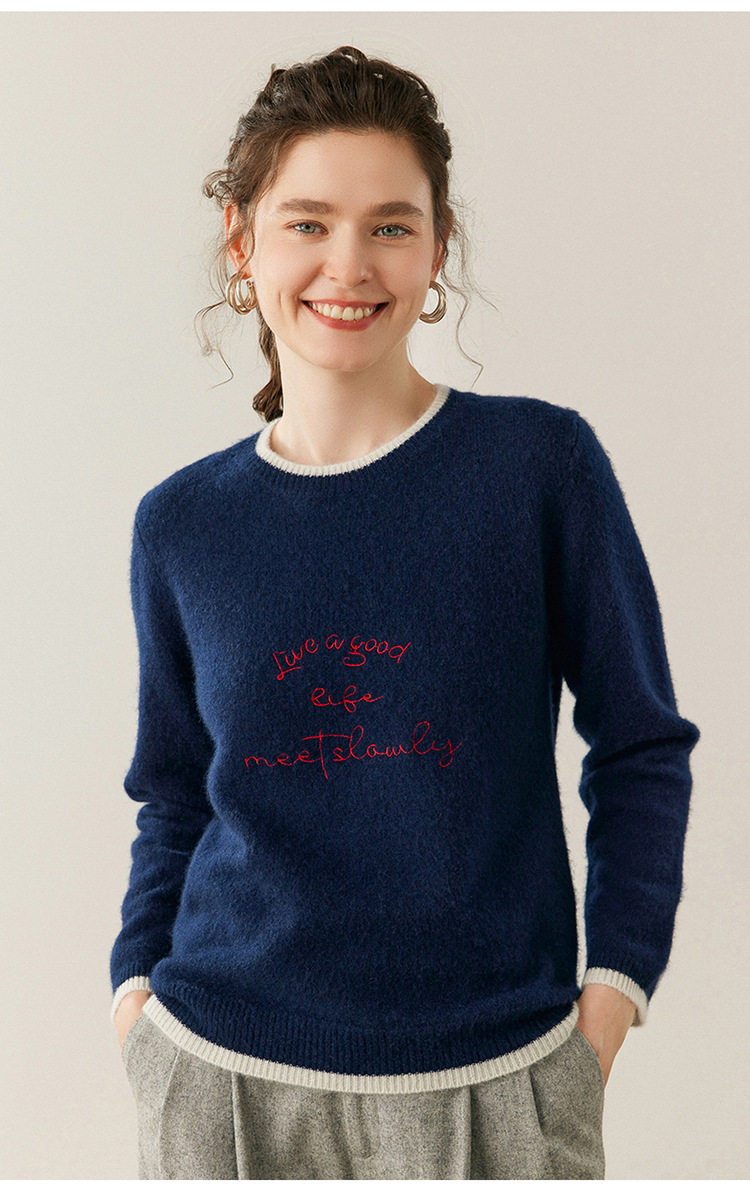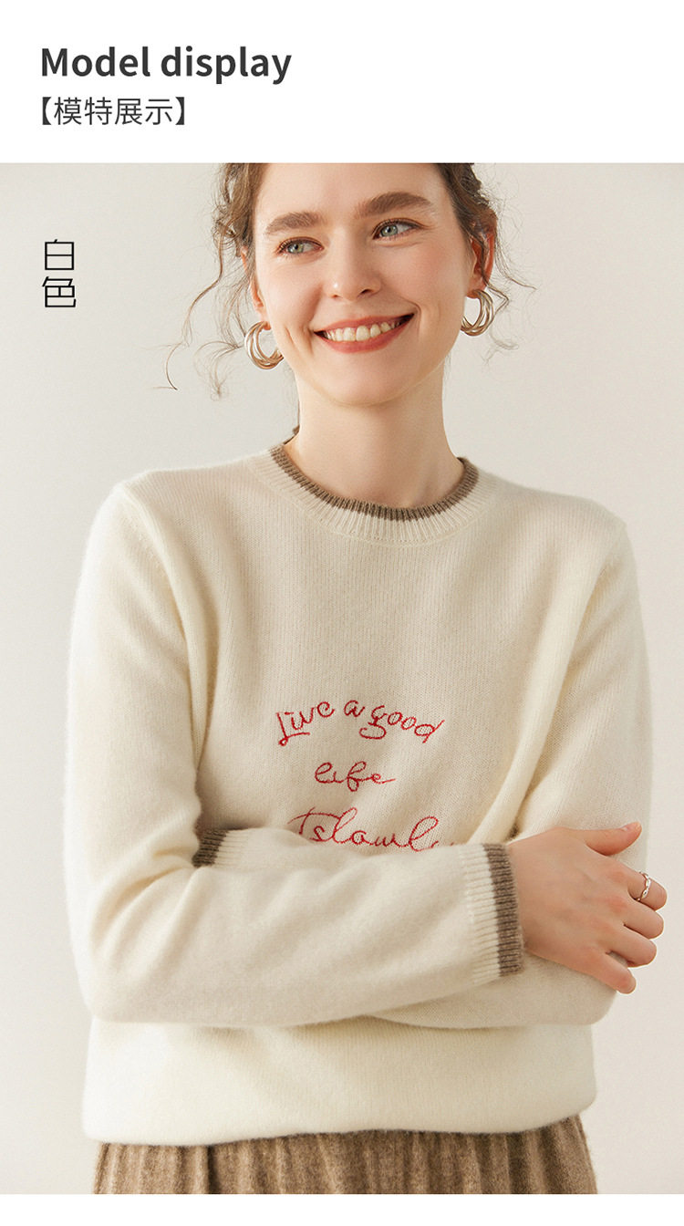 洛诗琳气质撞色圆领羊绒衫2025秋冬加厚宽松针织毛衣rig15609