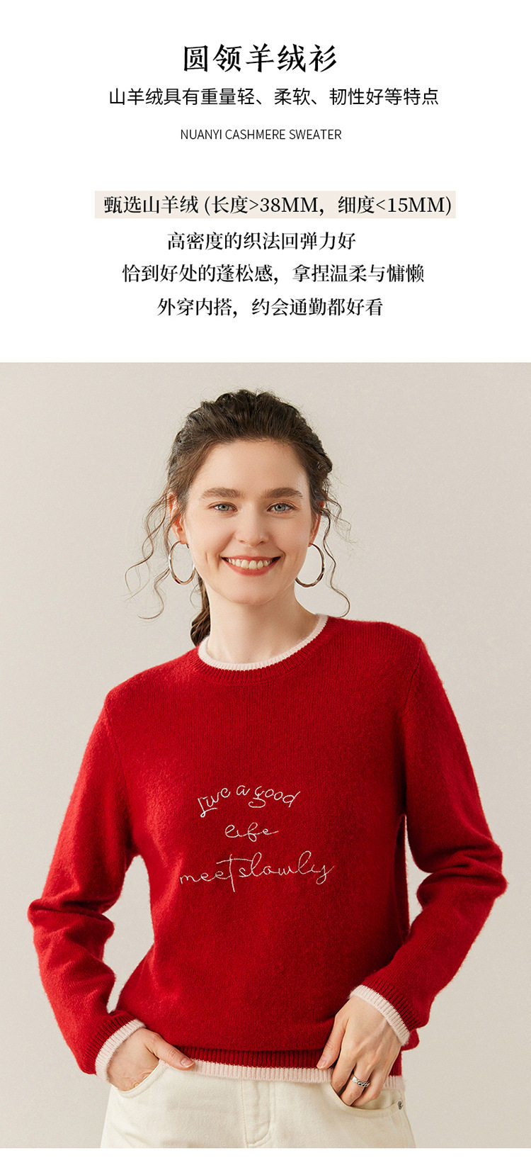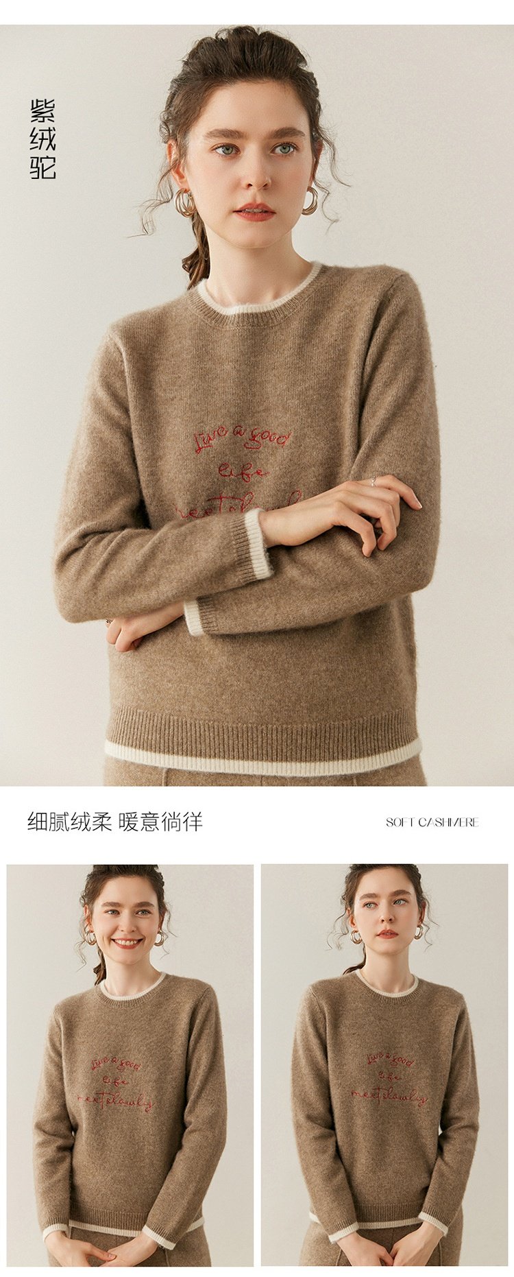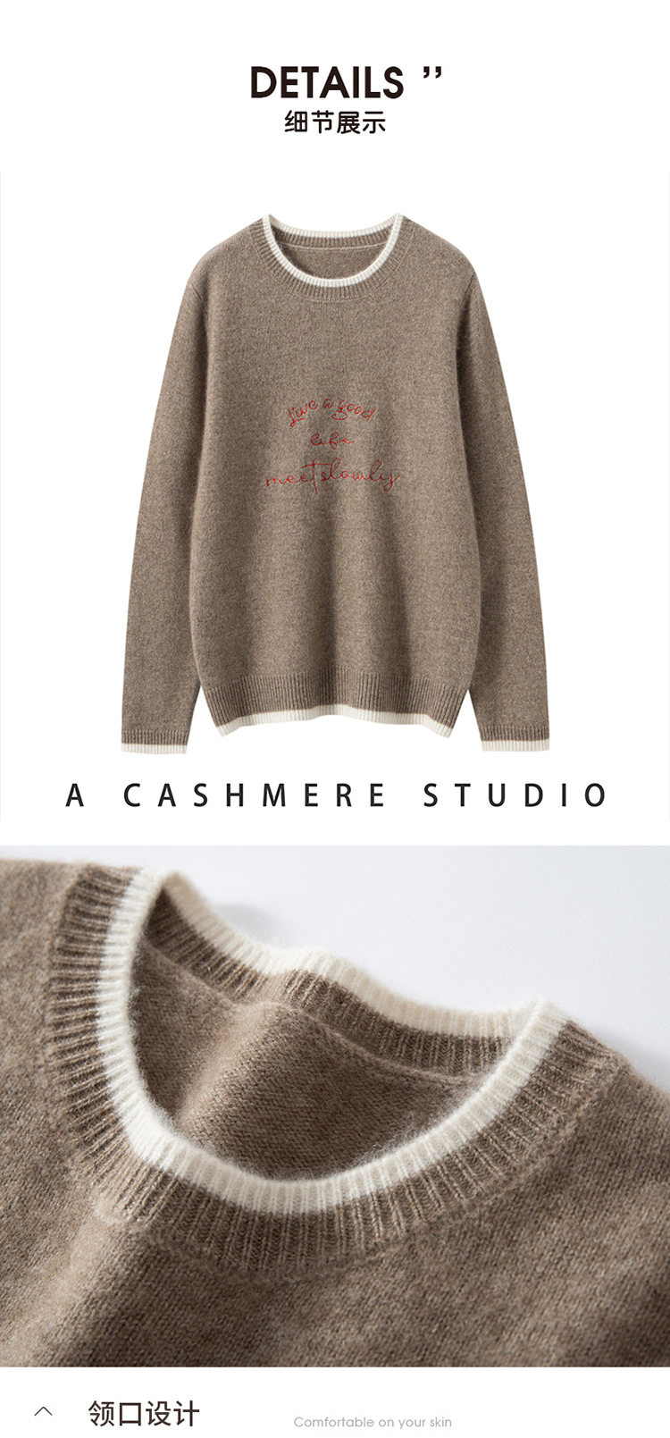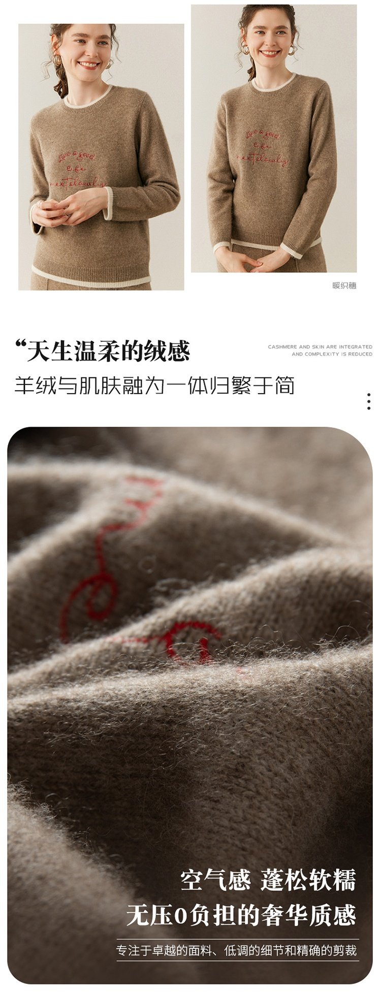 洛诗琳气质撞色圆领羊绒衫2025秋冬加厚宽松针织毛衣rig15609