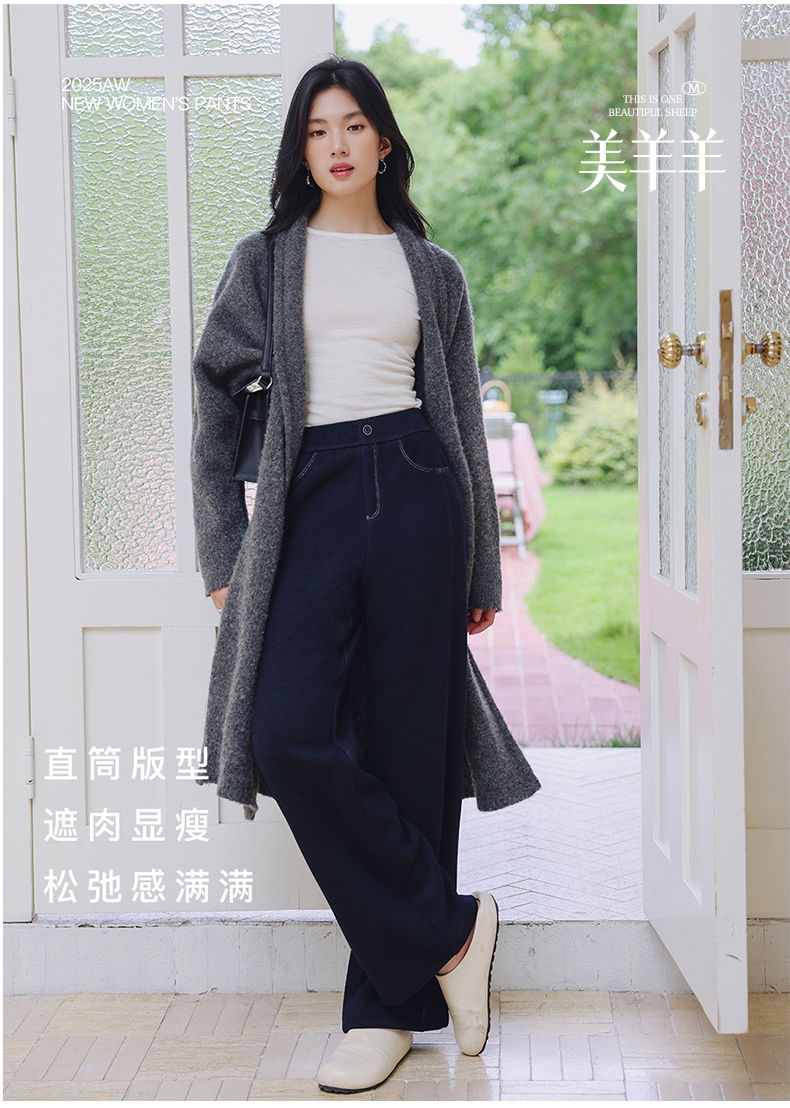 秋冬新款SAKURA樱花羊毛醋酸牛仔裤,美羊羊系列窄版直筒弯刀休闲裤