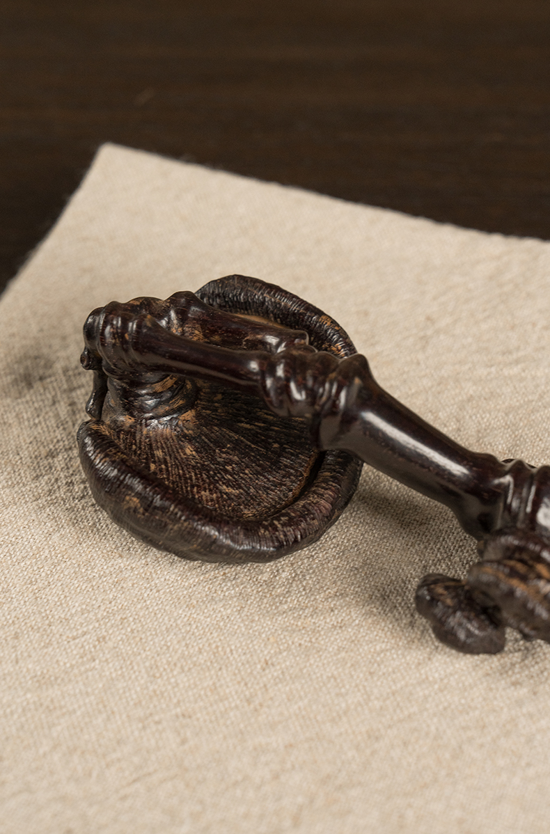 清 张宏裕款竹雕竹林雅集笔筒(红木口底)