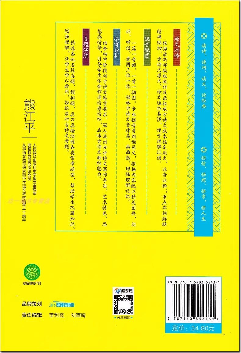 魅力语文 小学生必背古诗词75首80首126首168首初中生必背古诗文61篇139篇任选