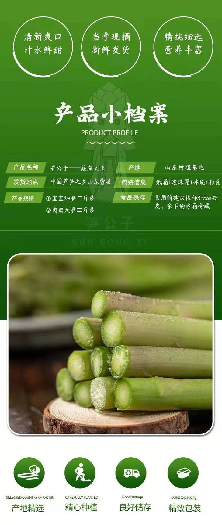 品名:笋公子芦笋 规格1:宝宝笋2斤装 规格2:肉肉大笋2斤装;拍几份发几个包裹,不一定能同时到达,请耐心等待; 发货地/产地:山东 包装方式:泡沫装 物流信息:默认顺丰/京东快递,不支持指定快递 发货区域:新疆、西藏、青海、宁夏、甘肃、内蒙、黑龙江、吉林、海南、云南不发; 物流详情:周六、周日及节假日除外,正常48小时内发货,到货时间约为2~5天,请耐心等待 售后说明:收到货后有质量问题,在24小时内都可以拍照(坏品+快递单面箱子一起拍)上传,申请按坏品比例理赔或联系客服,生鲜性质特殊,因地址错误,手机号联系不上,拒收等造成的损失无法售后,请理解; |