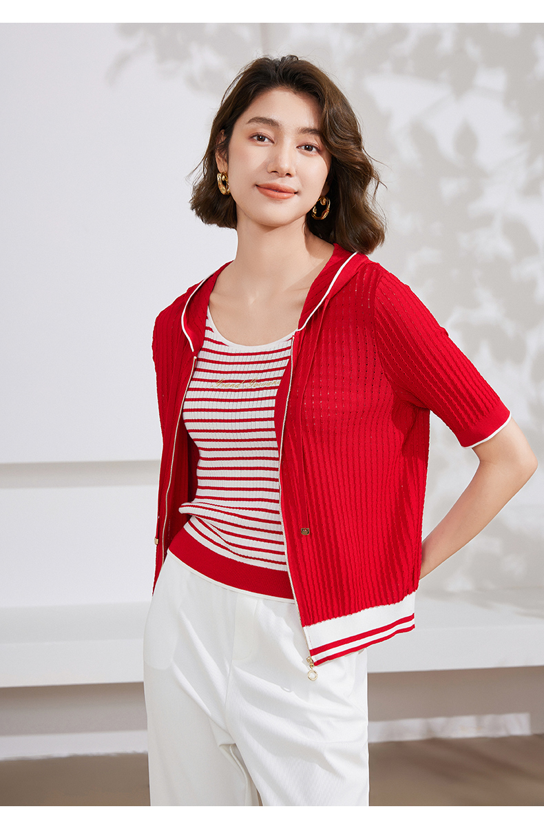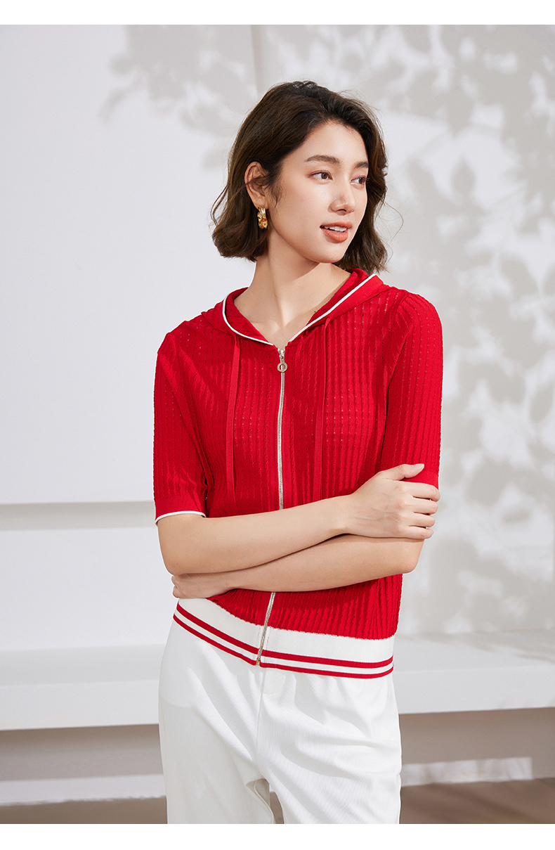 乔万尼针织衫女夏短袖新款减龄连帽设计EM2M896