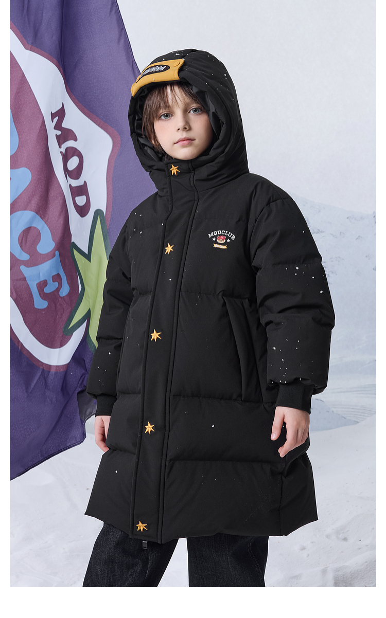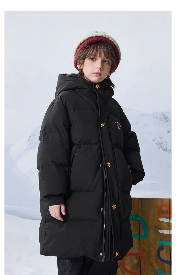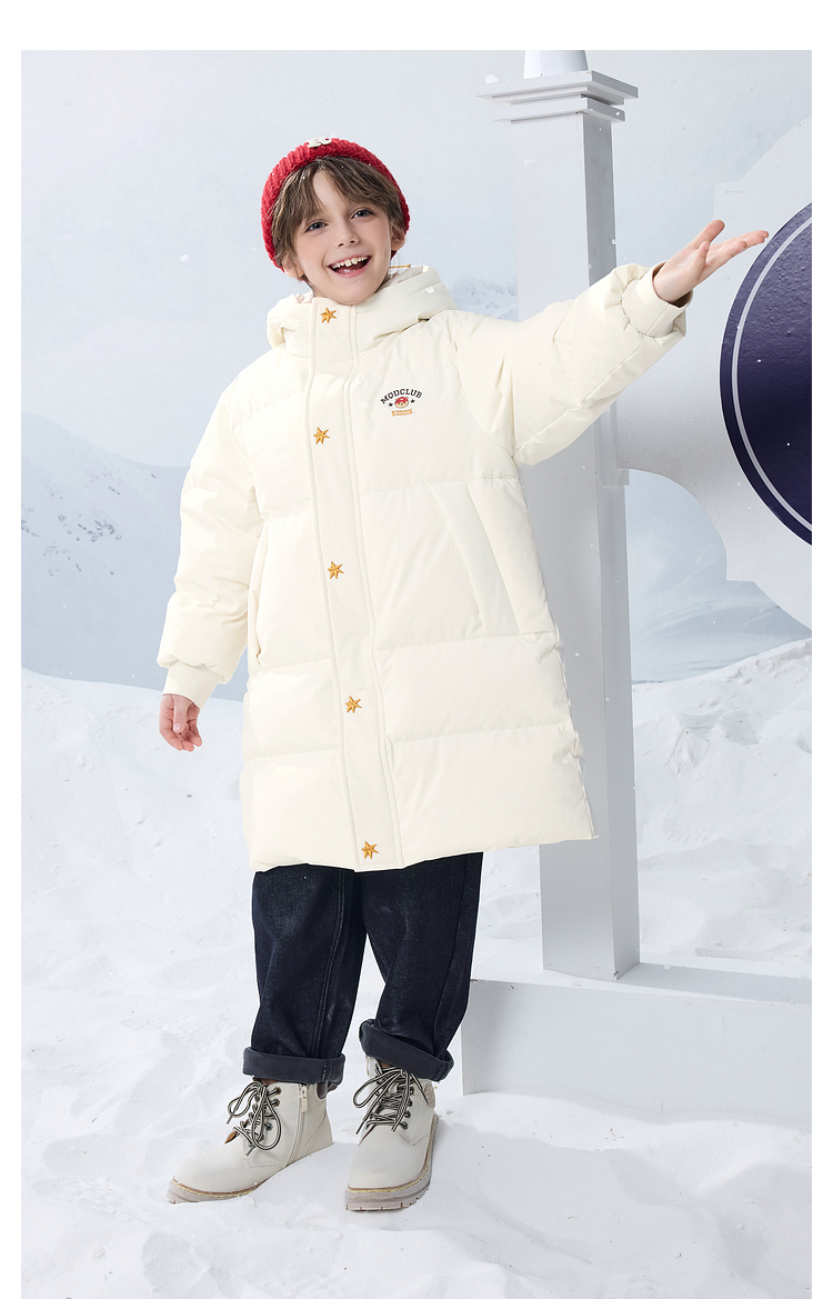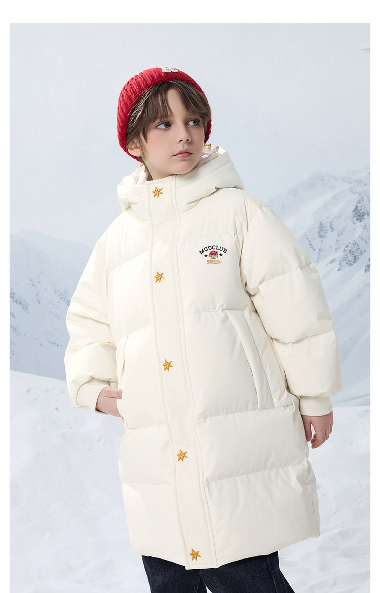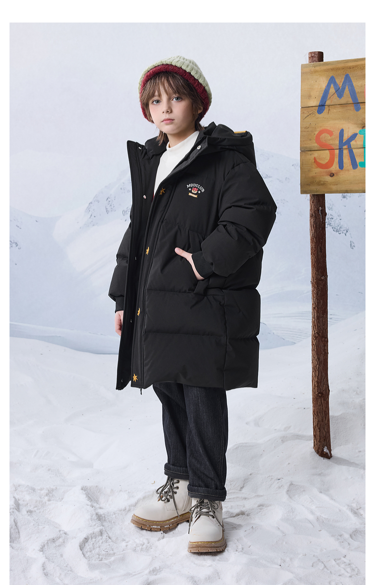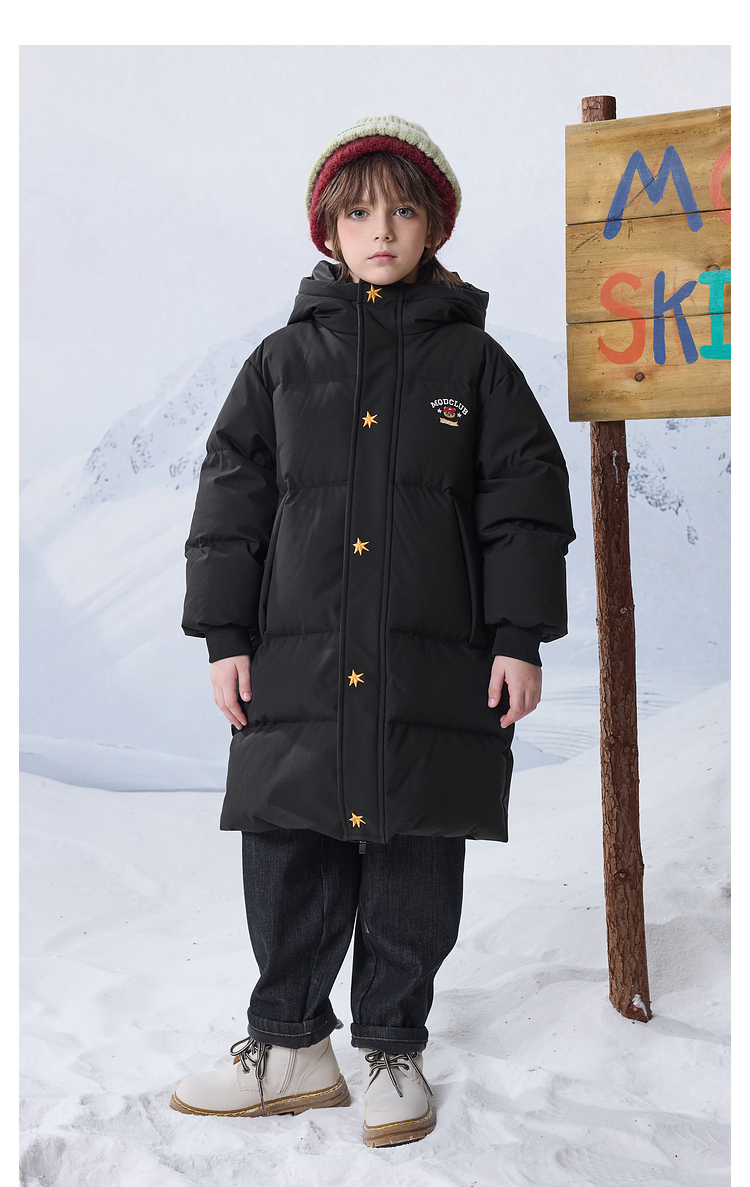 【MQD】男女童大童冬季新品学院风加厚保暖长款连帽羽绒服