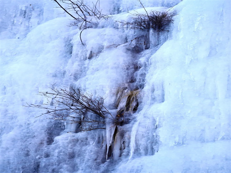 圣水峪上太湖冰挂冰瀑的规模相比较大,山上冰瀑如同从天而泻的银河悬挂在山腰冰瀑区,大自然的鬼斧神工雕琢出令人眼花缭乱的冰瀑群,冰表面美丽晶莹,垂挂的冰瀑像个硕大的冰帘。最大的高4—5米、宽近10米,形状各异,晶莹剔透,令人惊喜不已。