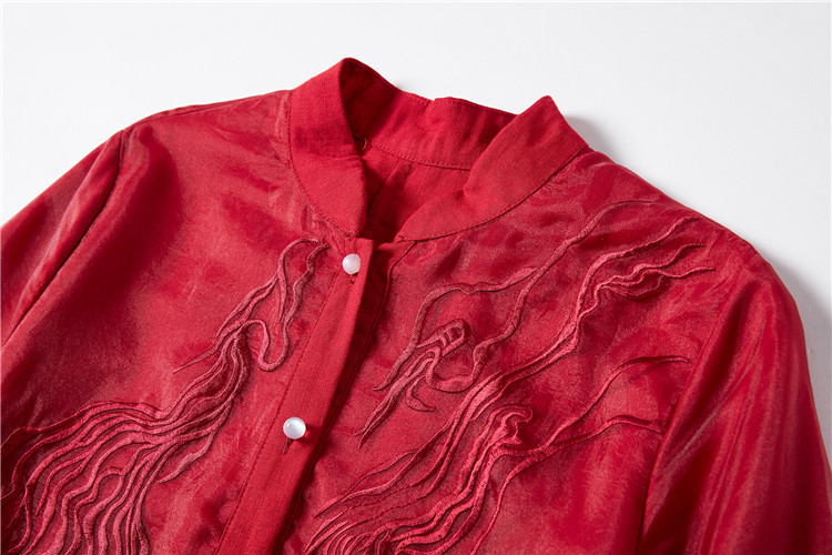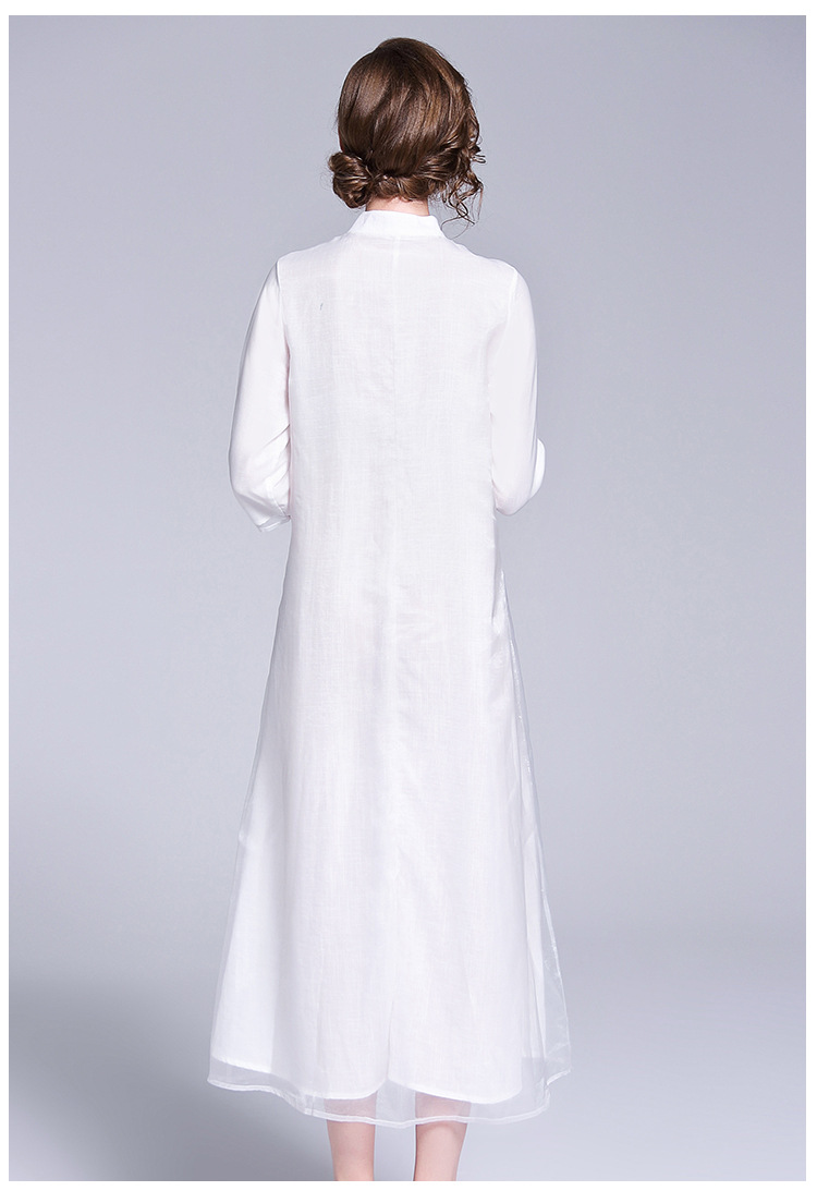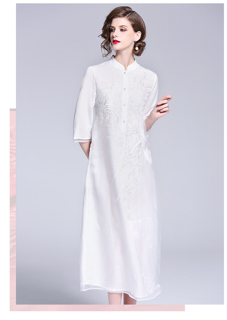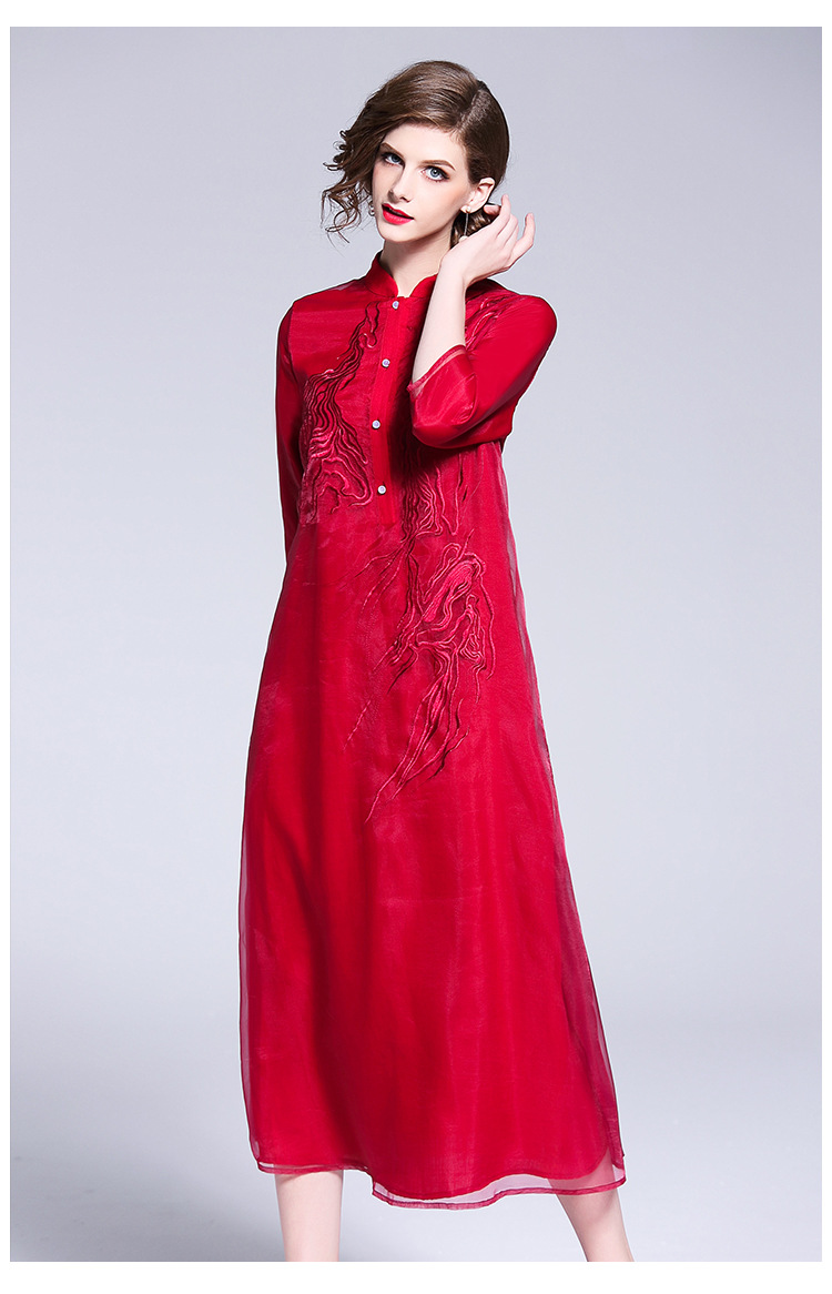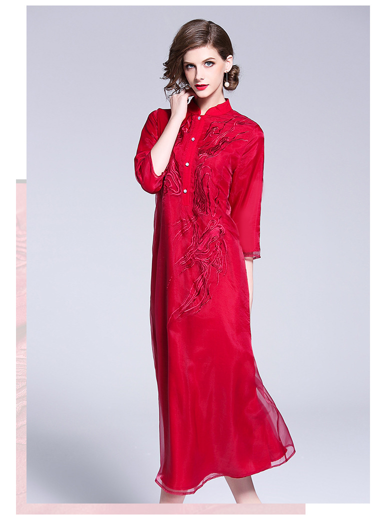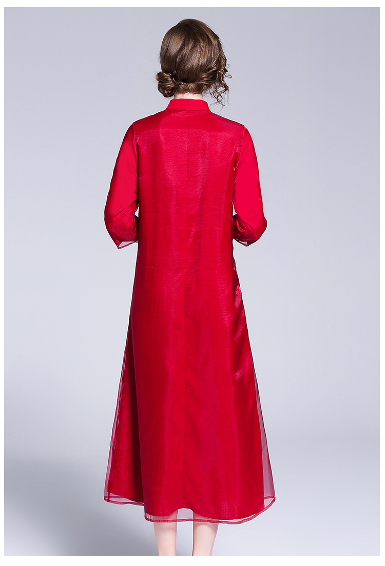 中式复古欧根纱茶服刺绣改良旗袍中长款连衣裙 YFN18156