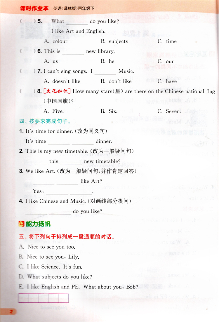 包邮 2025年春 课时作业本 英语4下 译林版 四年级下册 含试卷 答案与解析 知识手册 小学 通城学典 浙江教育出版社