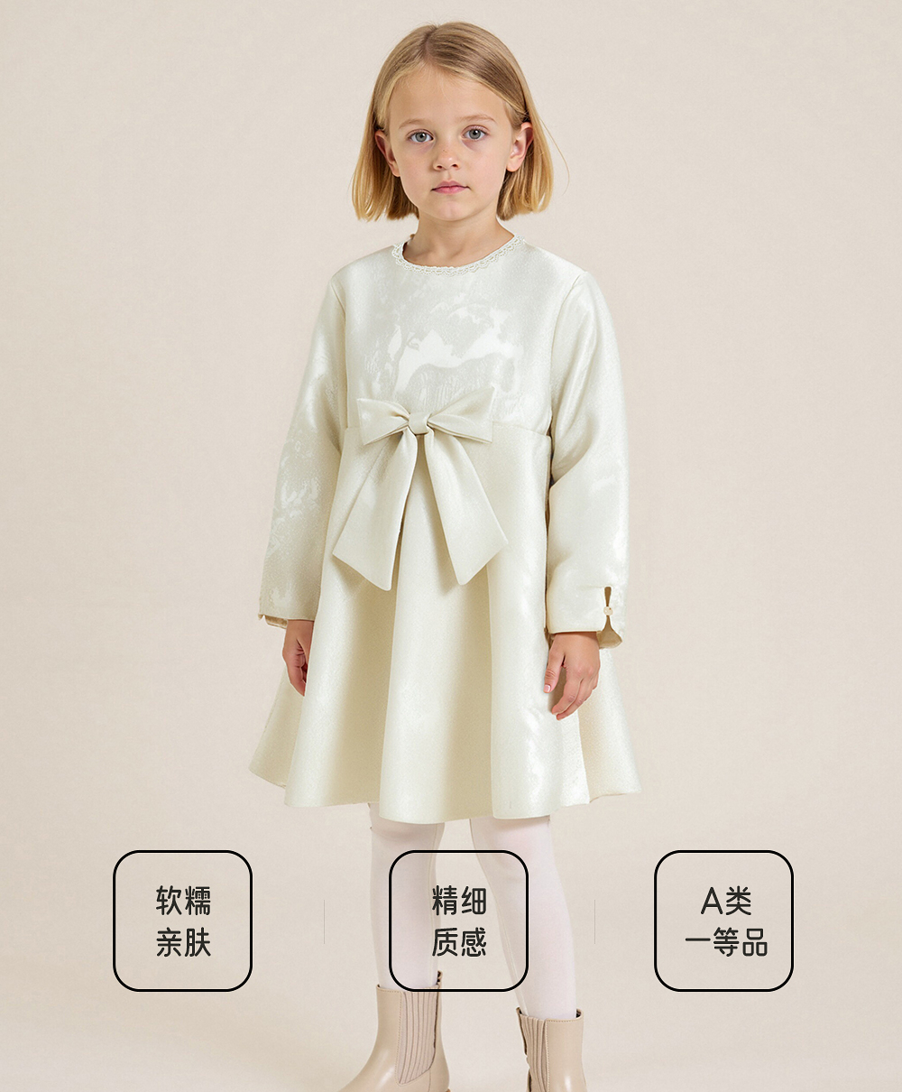 【高定系列】英氏女童连衣裙长袖桑蚕丝秋冬新品休闲女孩女宝宝