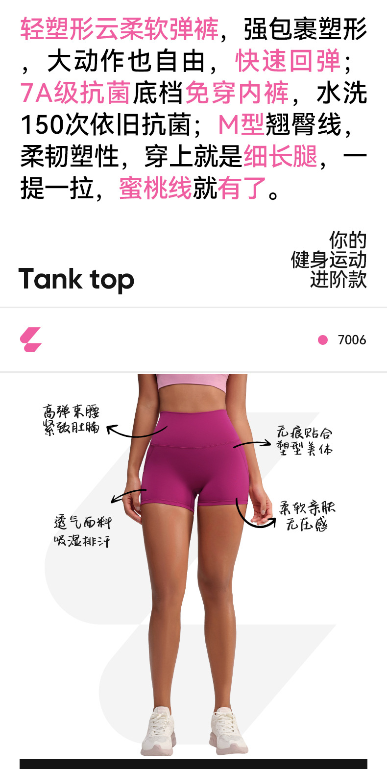 跃牌【轻匀系列】免穿内裤高腰蜜桃提臀高弹热裤无尴尬线运动短裤DK7006