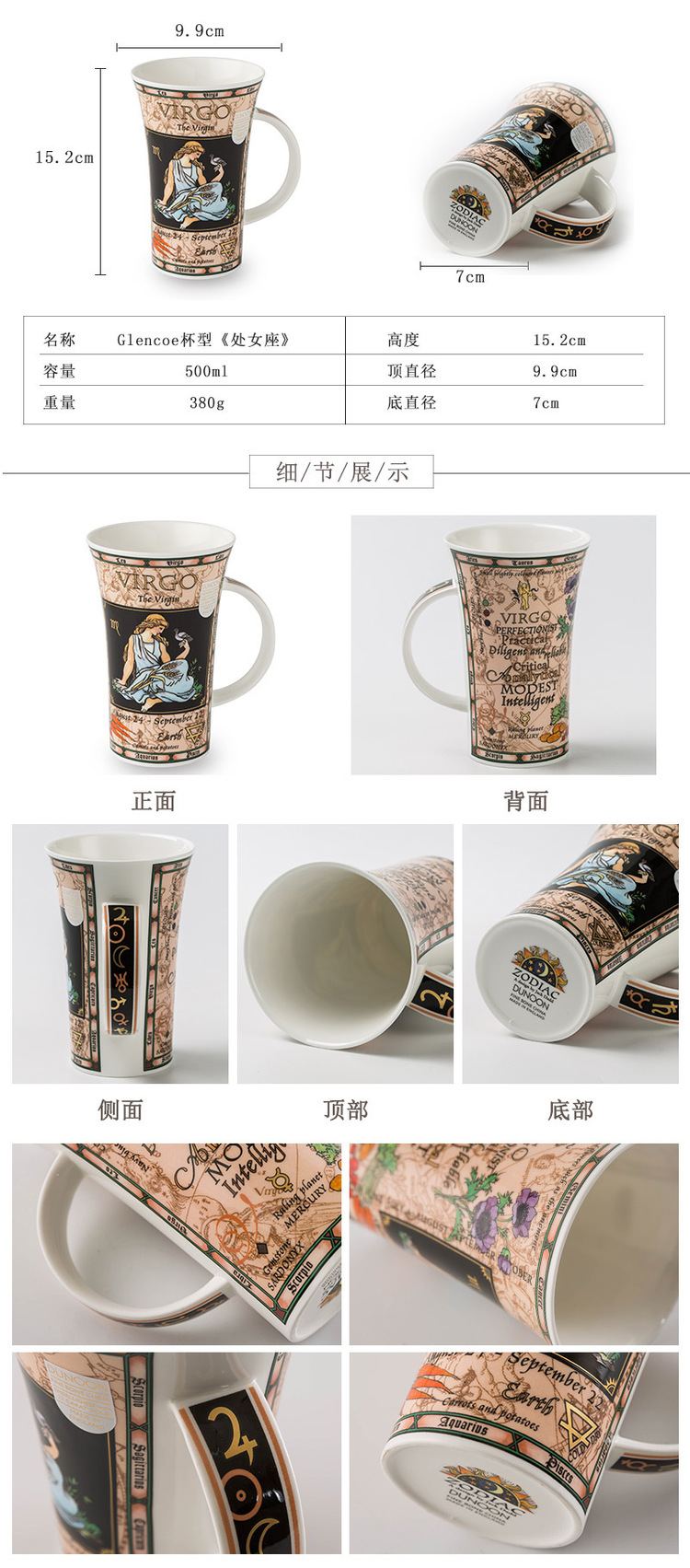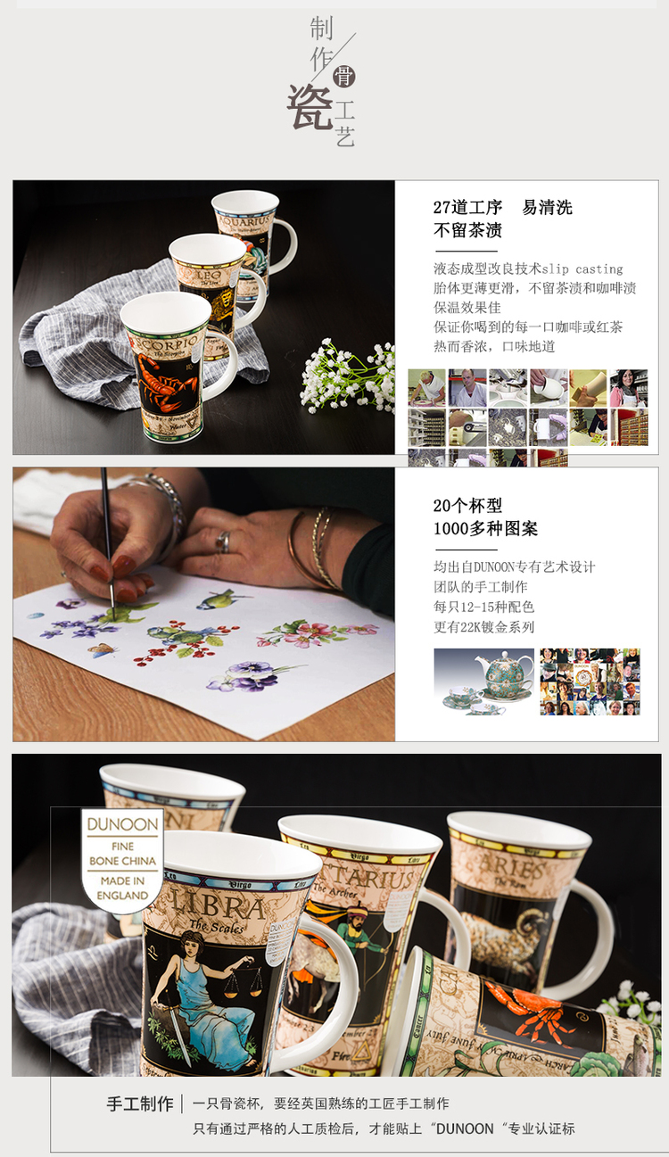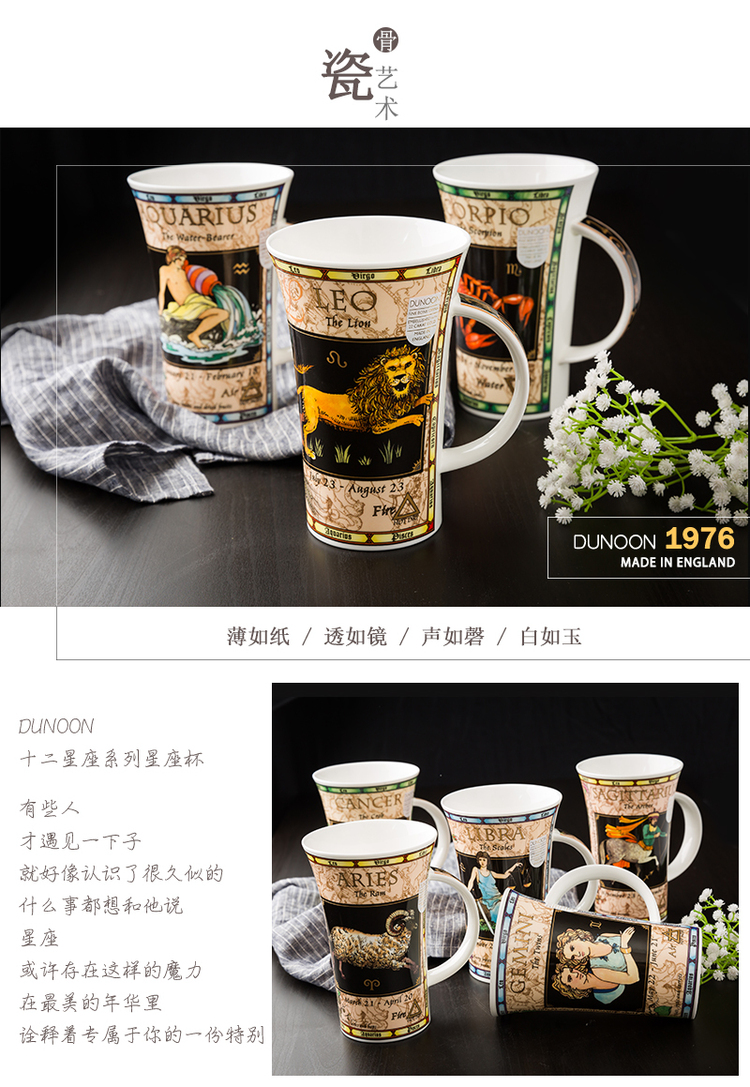 英国原产DUNOON丹侬处女座峡谷型骨瓷马克杯 黑色礼盒