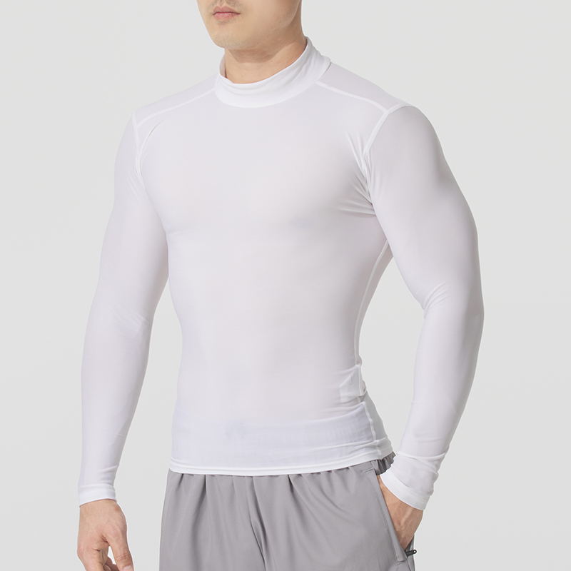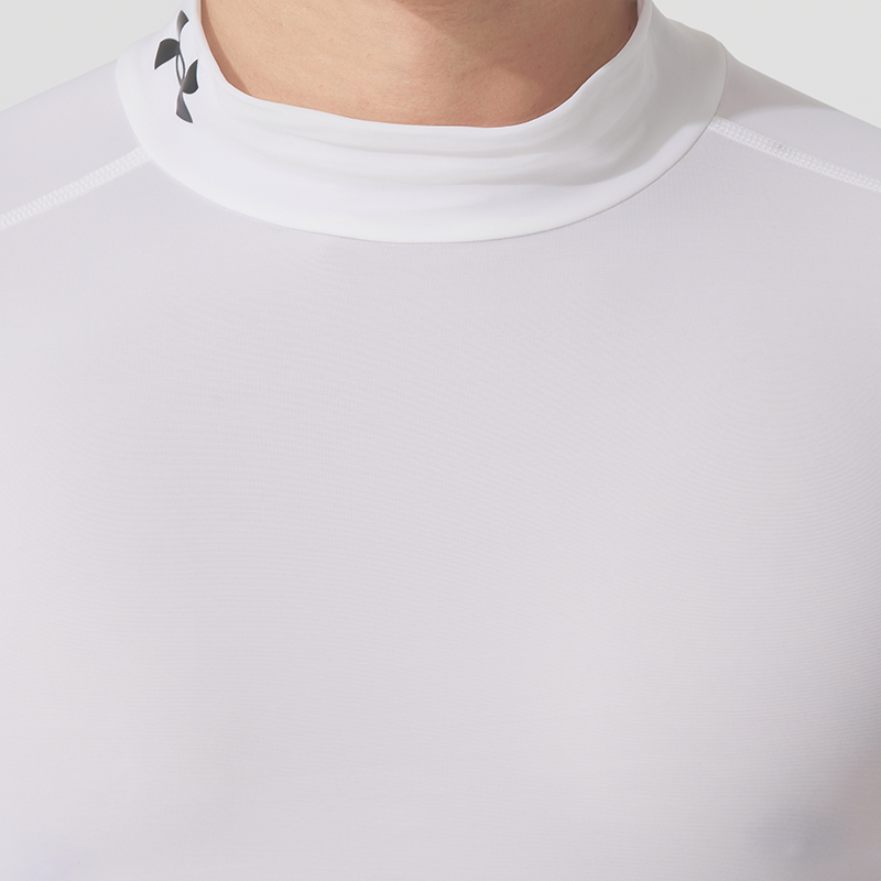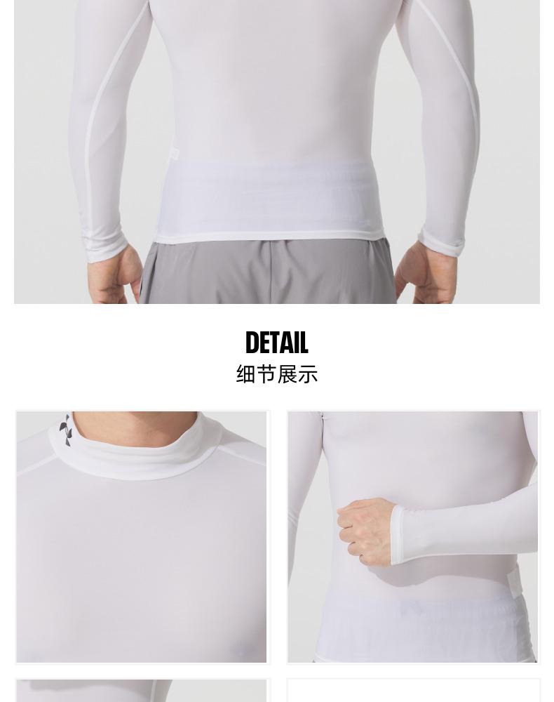 安德玛白色高领紧身衣男子秋季新款训练健身衣舒适跑步长袖T恤