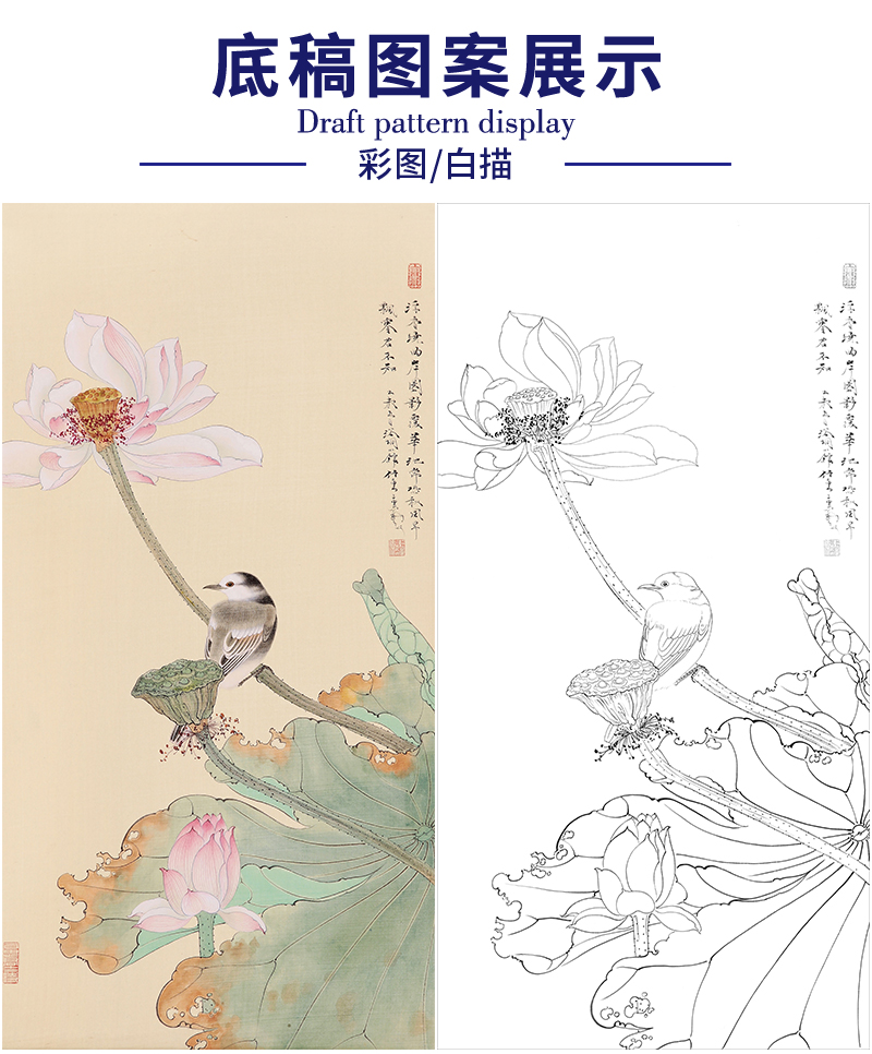 任重花鸟工笔画白描底稿《浮香华池图》临摹勾线高清打印稿RD10
