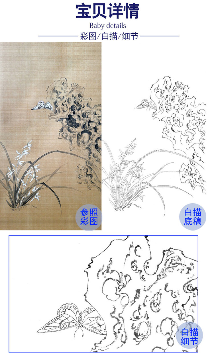 楚彦春竖幅复古风工笔花鸟白描底稿-兰花-多种白描尺寸可选-CY25