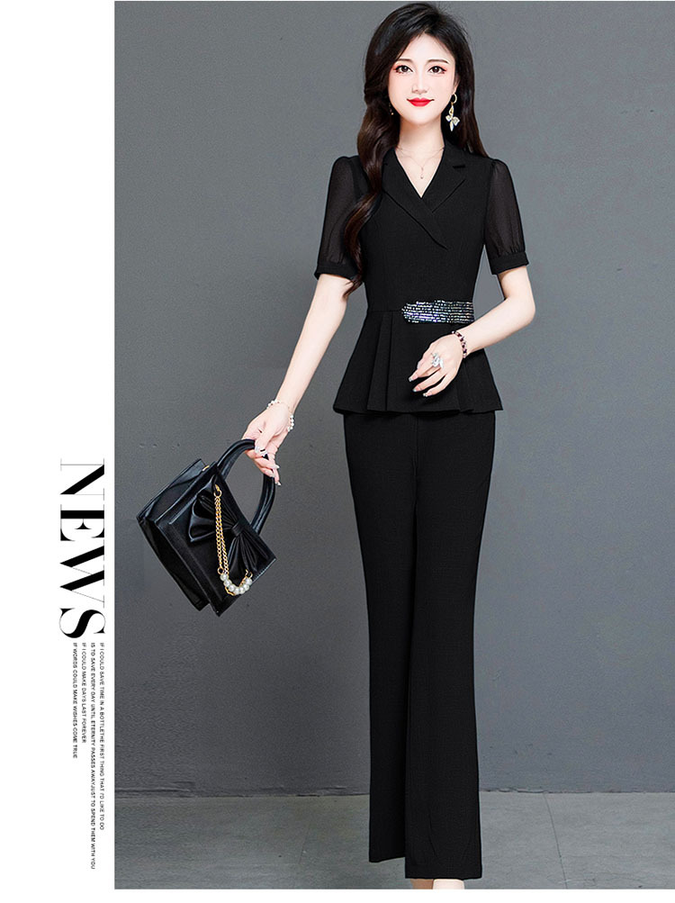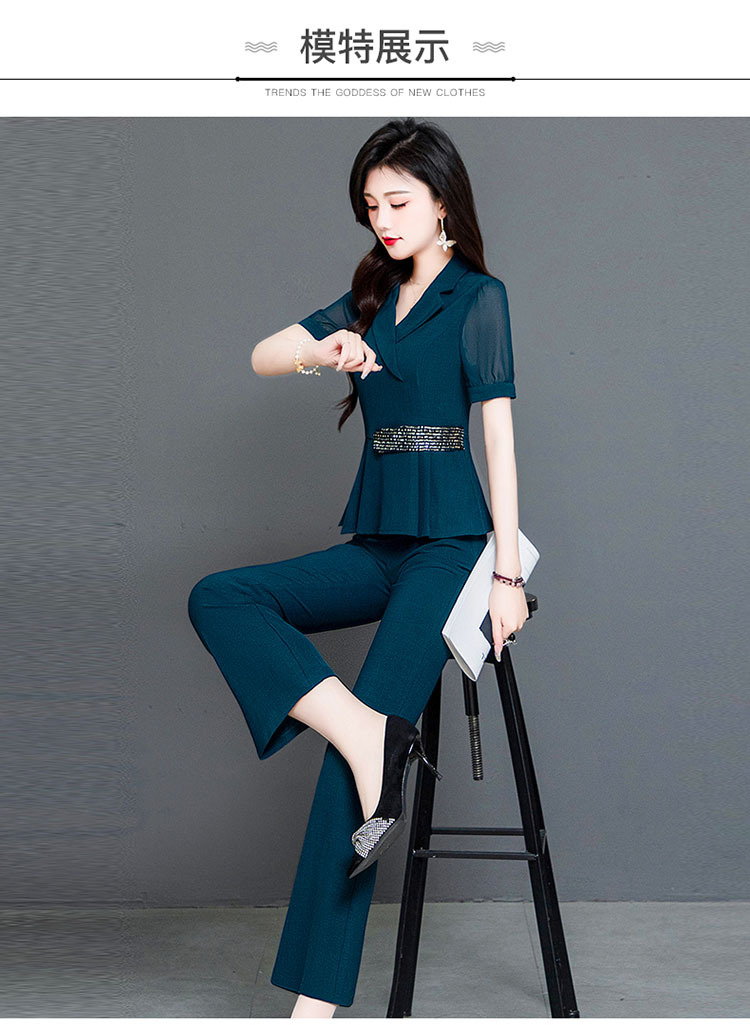 MZ TYH236046今年流行雪纺两件套女2023夏季新款洋气修身气质时尚休闲显瘦套装