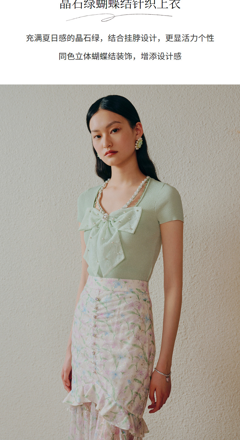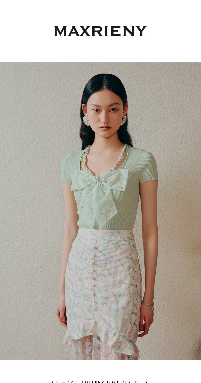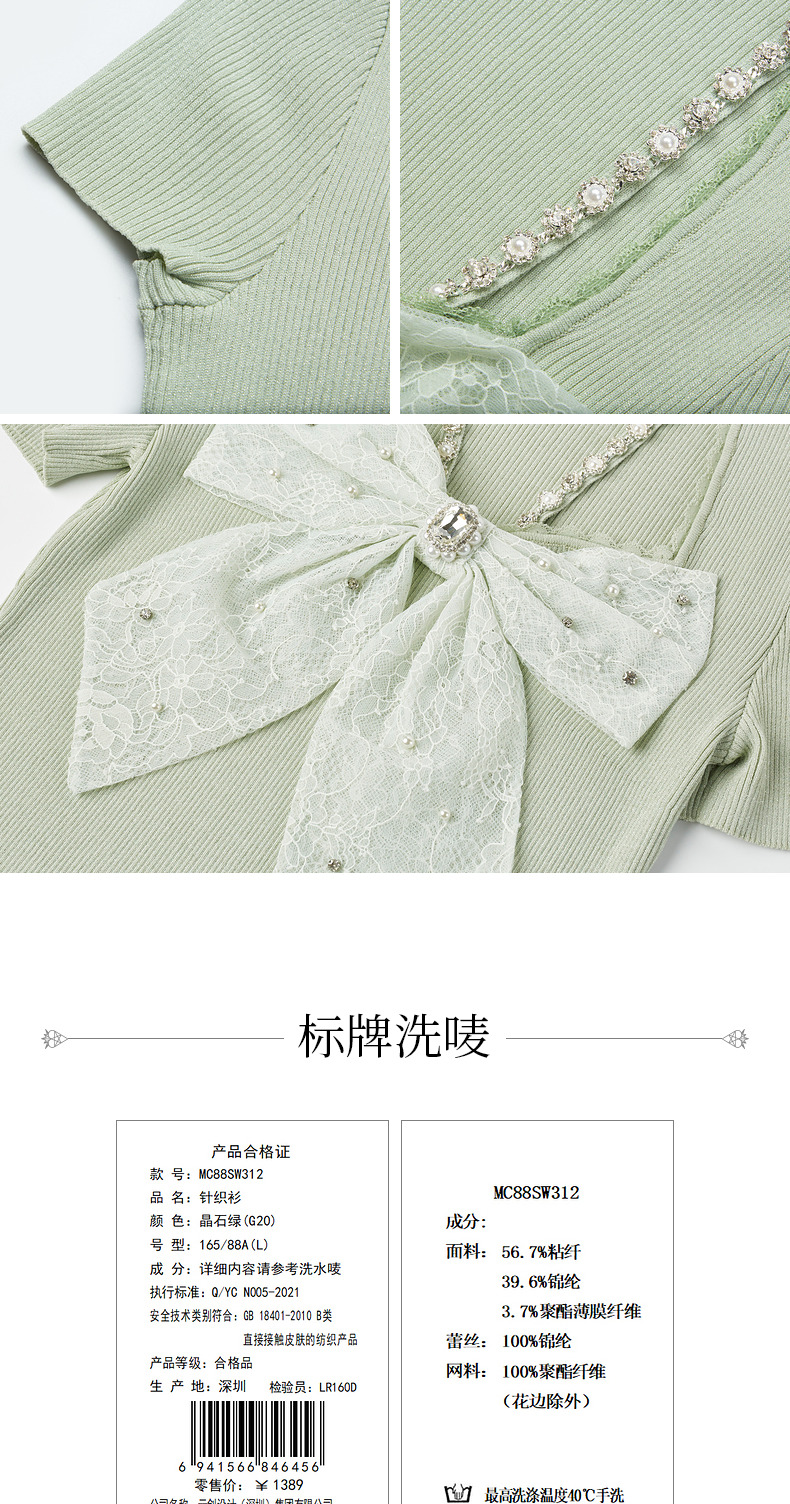 MAXRIENY千金小香风蝴蝶结针织衫薄薄荷曼波风穿搭(货号:MC88SW312)