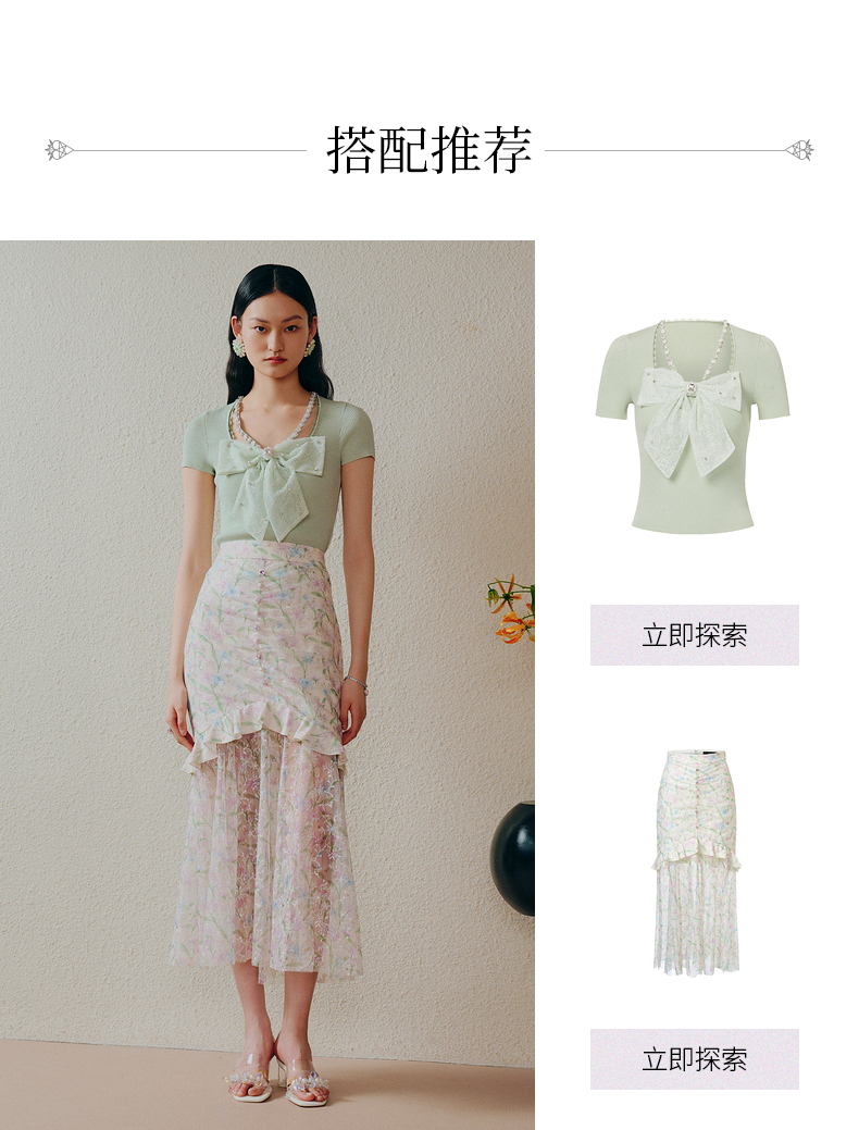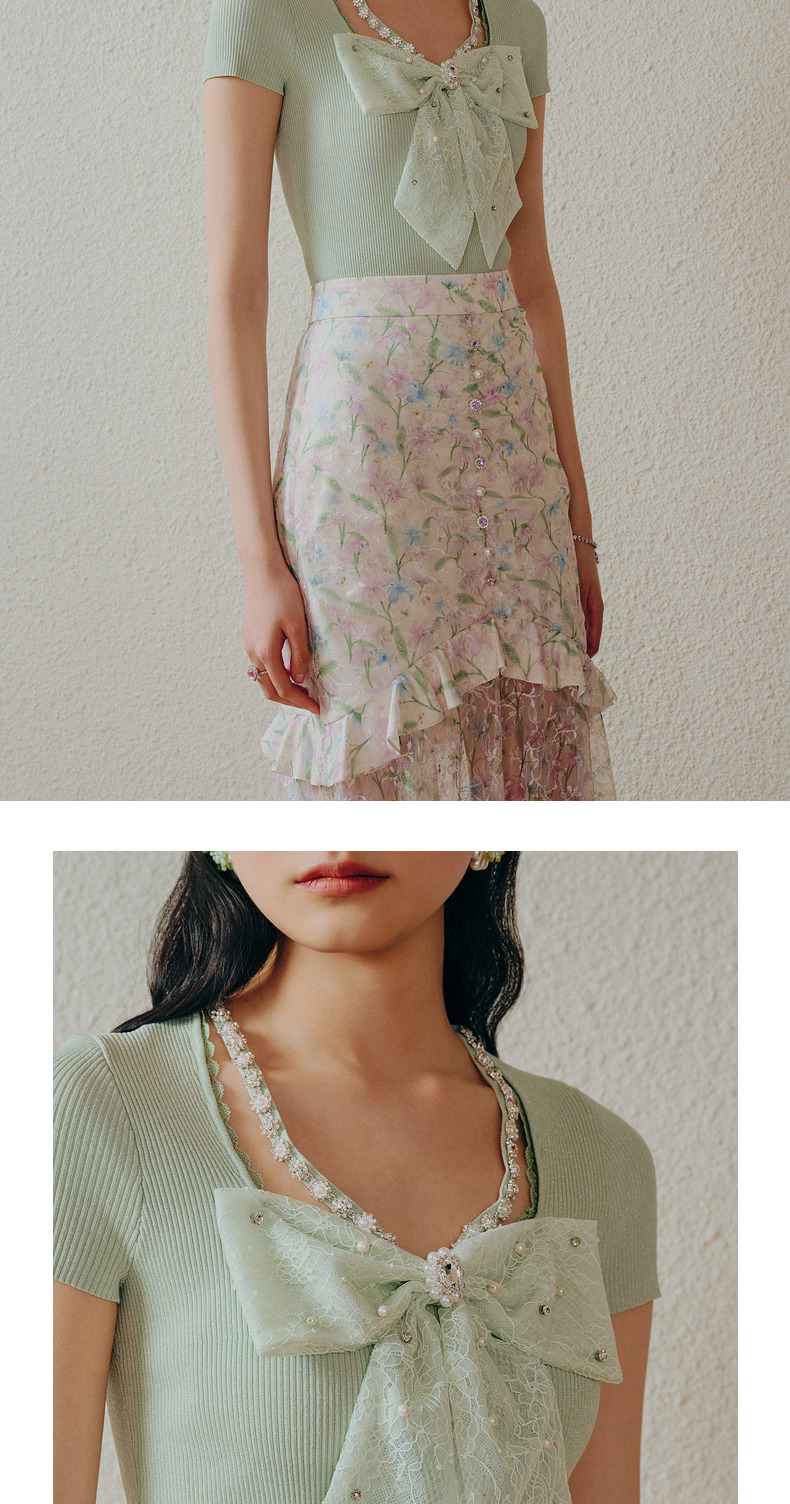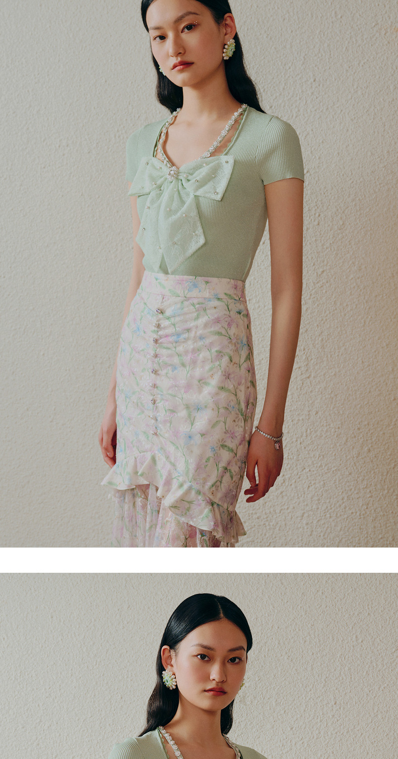 MAXRIENY千金小香风蝴蝶结针织衫薄薄荷曼波风穿搭(货号:MC88SW312)