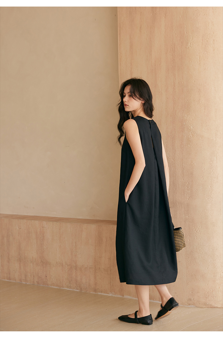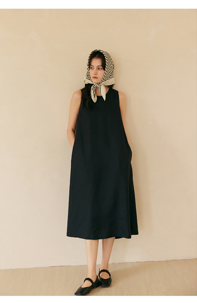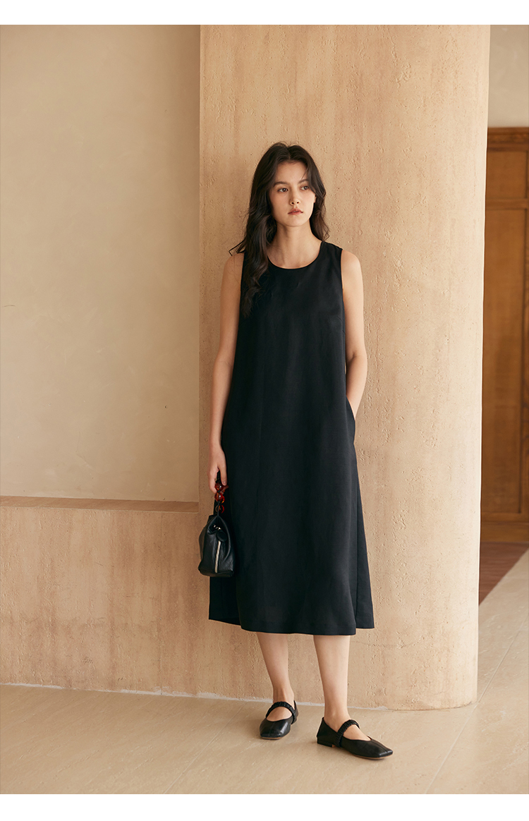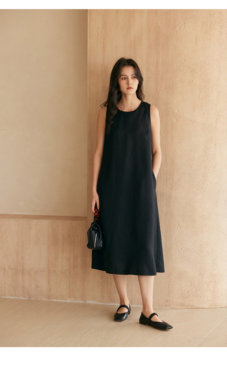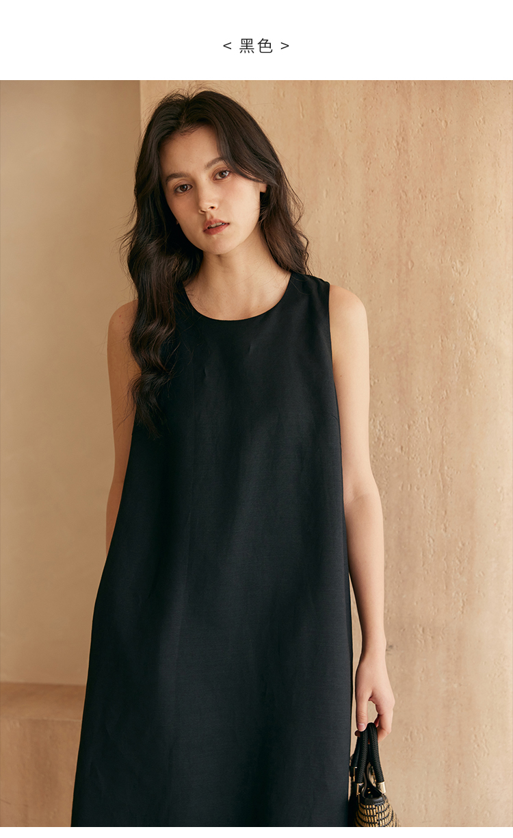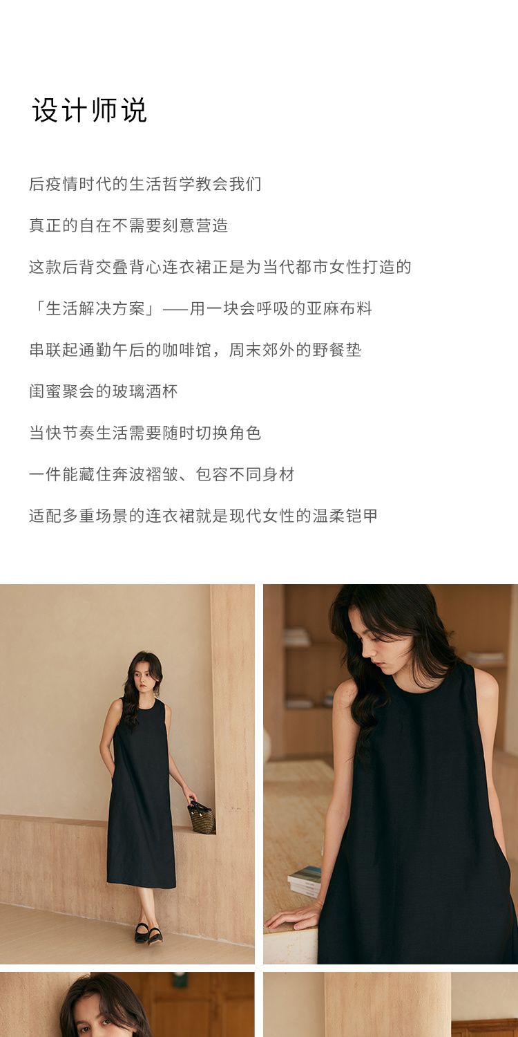 HeyDress法式亚麻背心连衣裙女夏季后背交叠设计高级气质黑色裙子