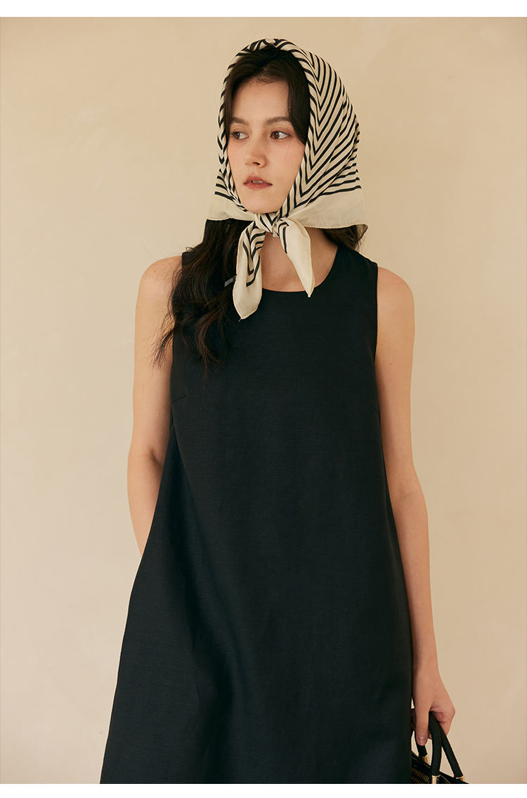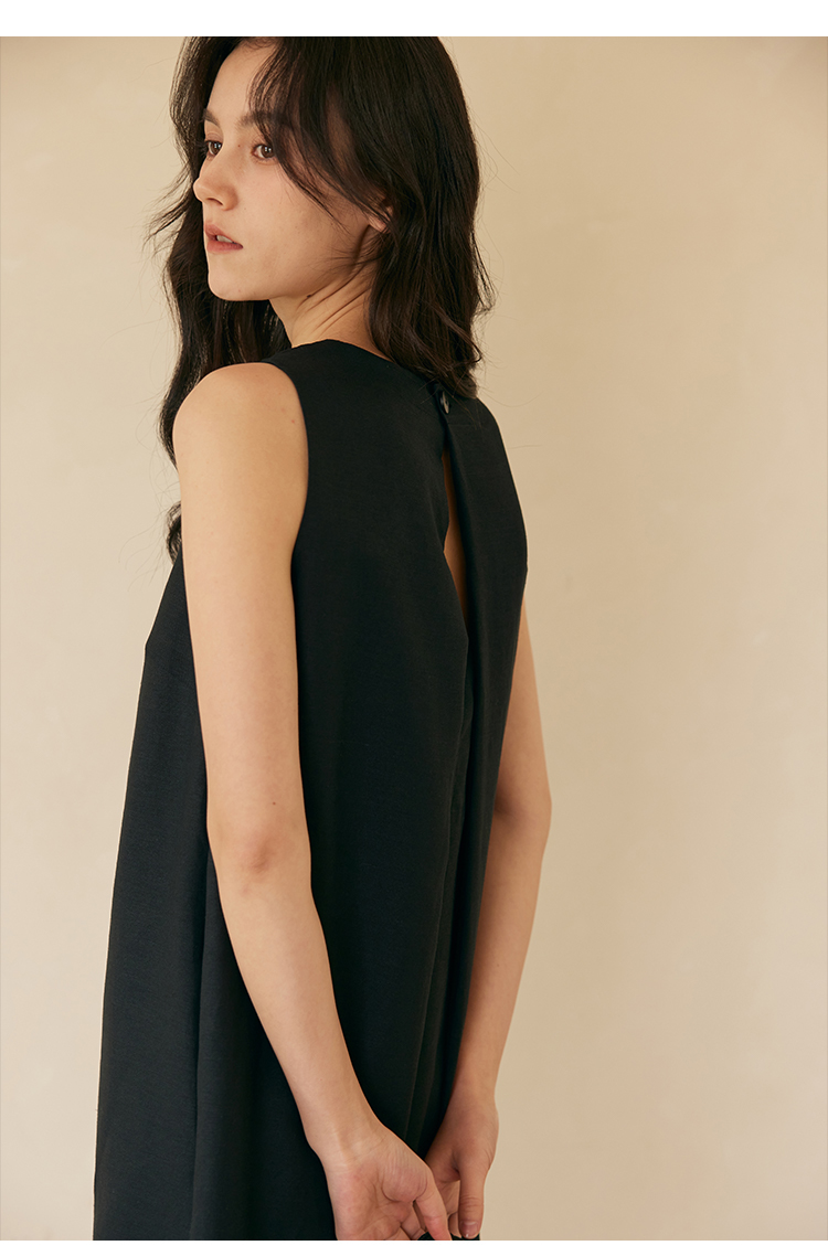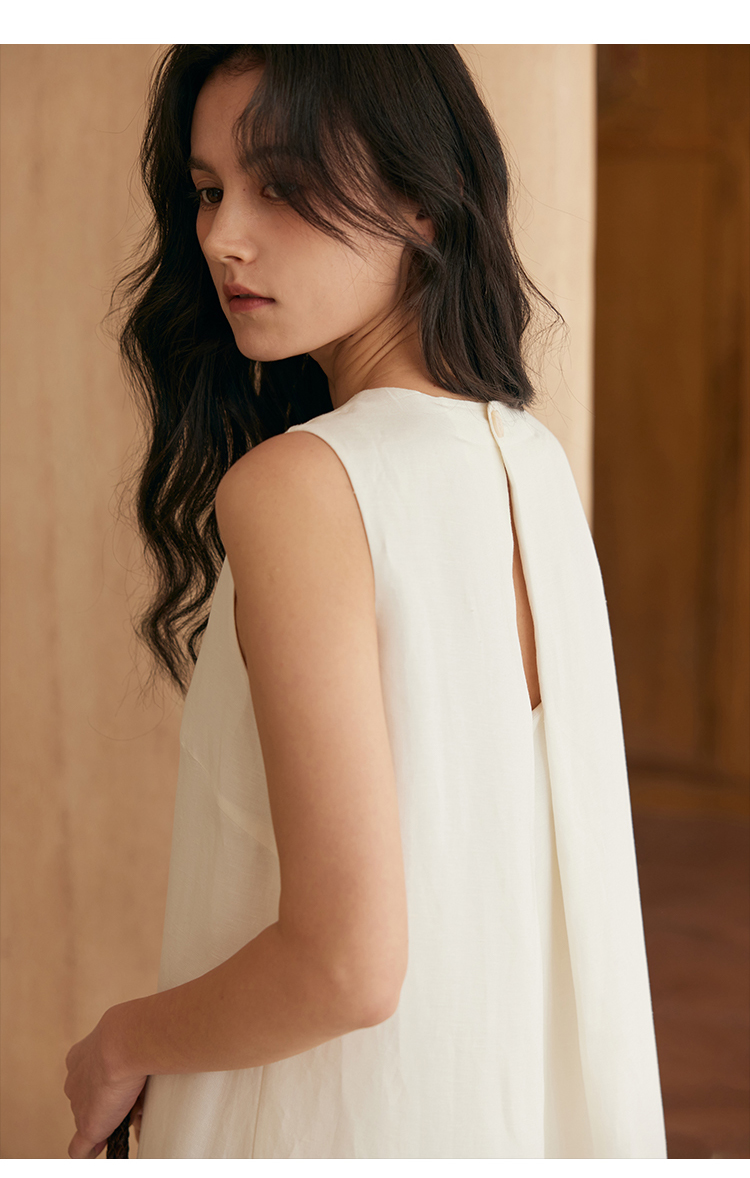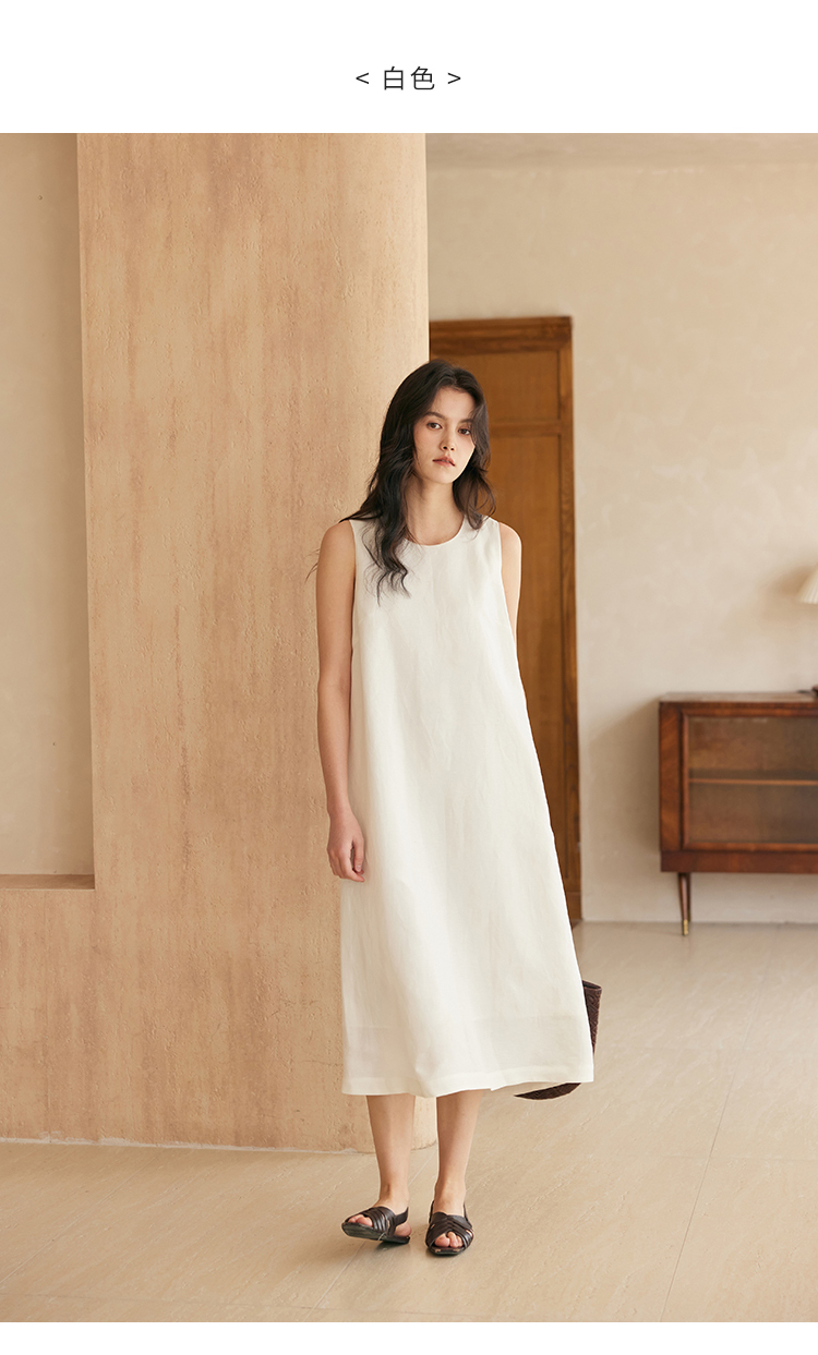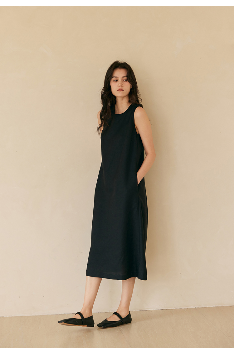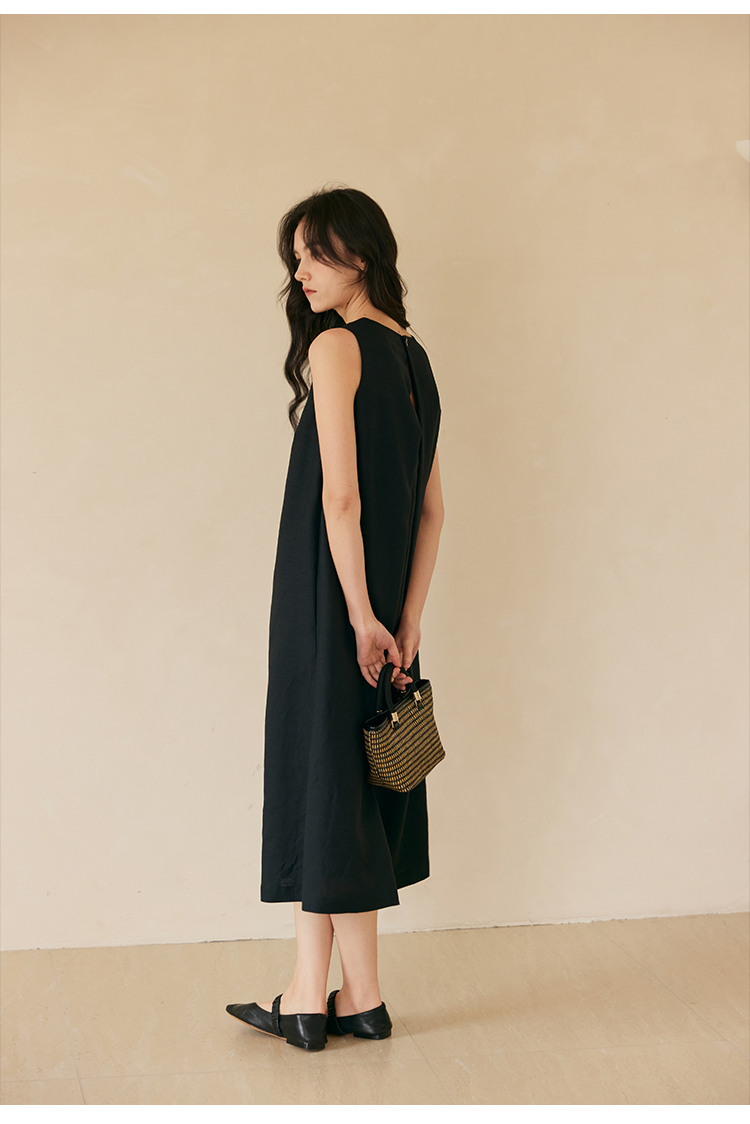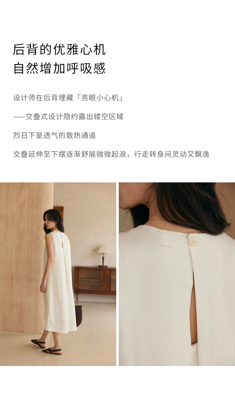 HeyDress法式亚麻背心连衣裙女夏季后背交叠设计高级气质黑色裙子
