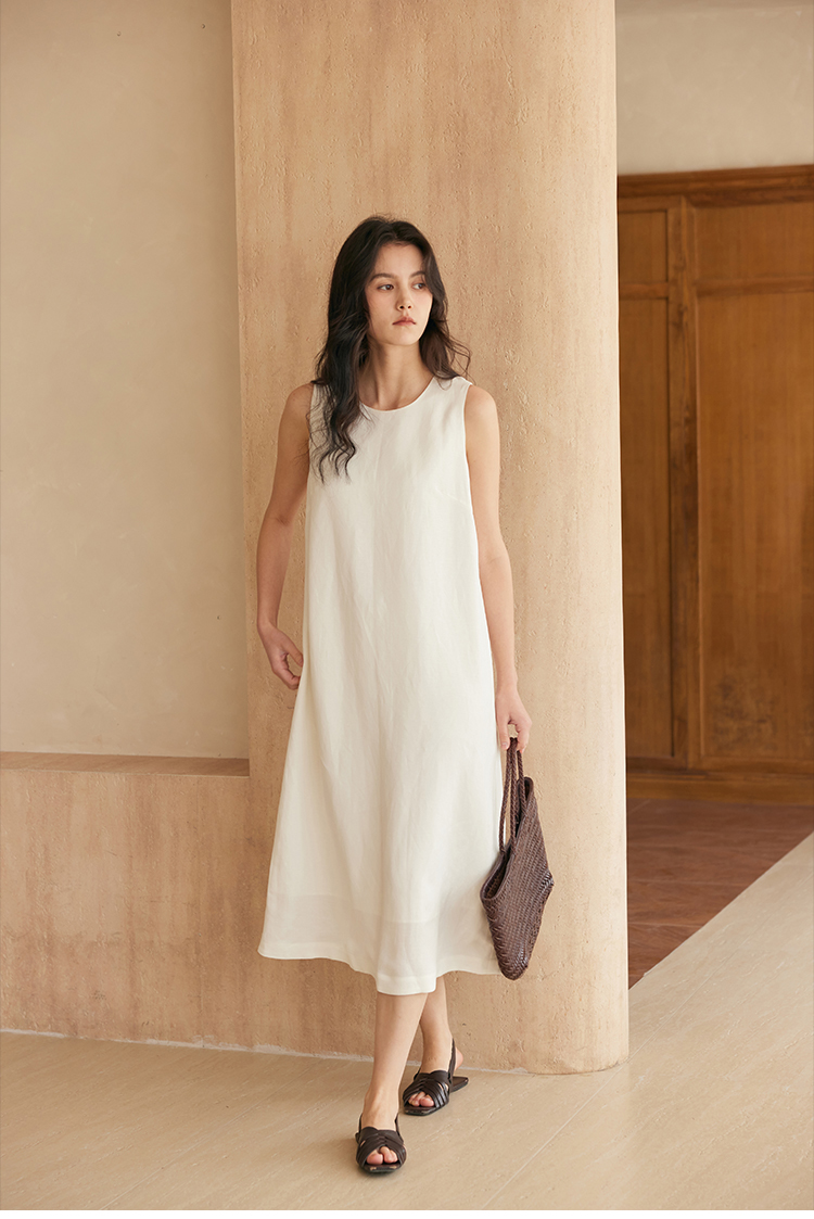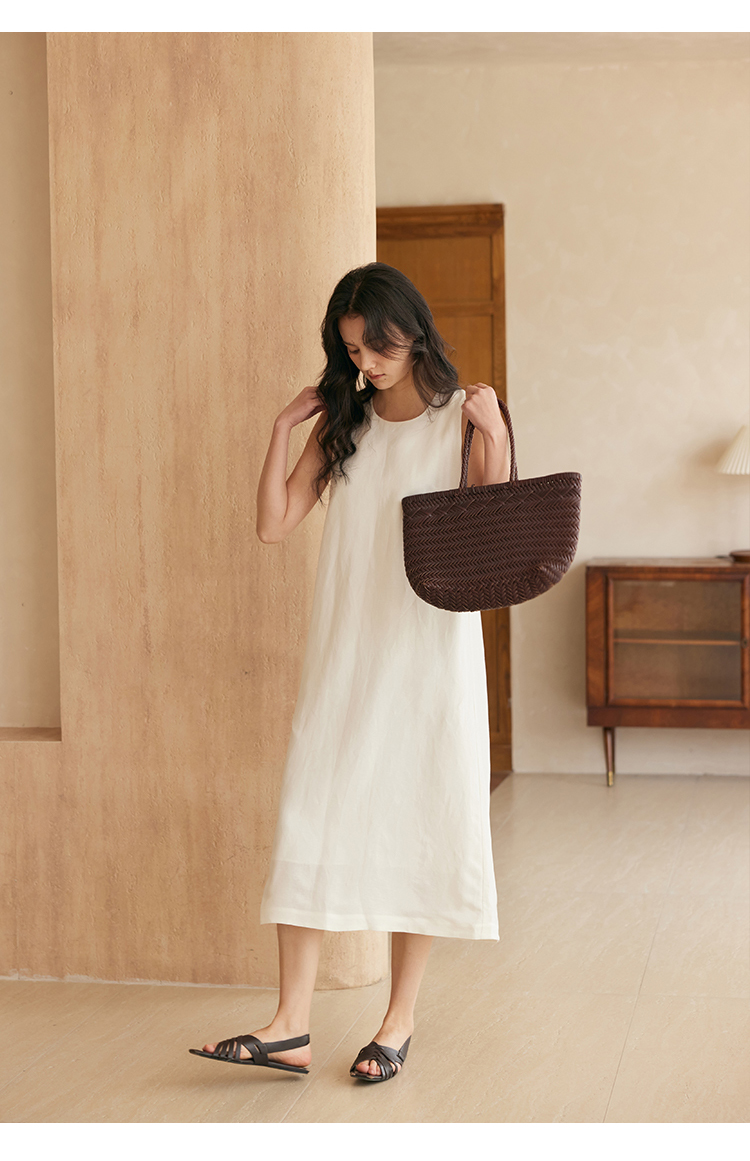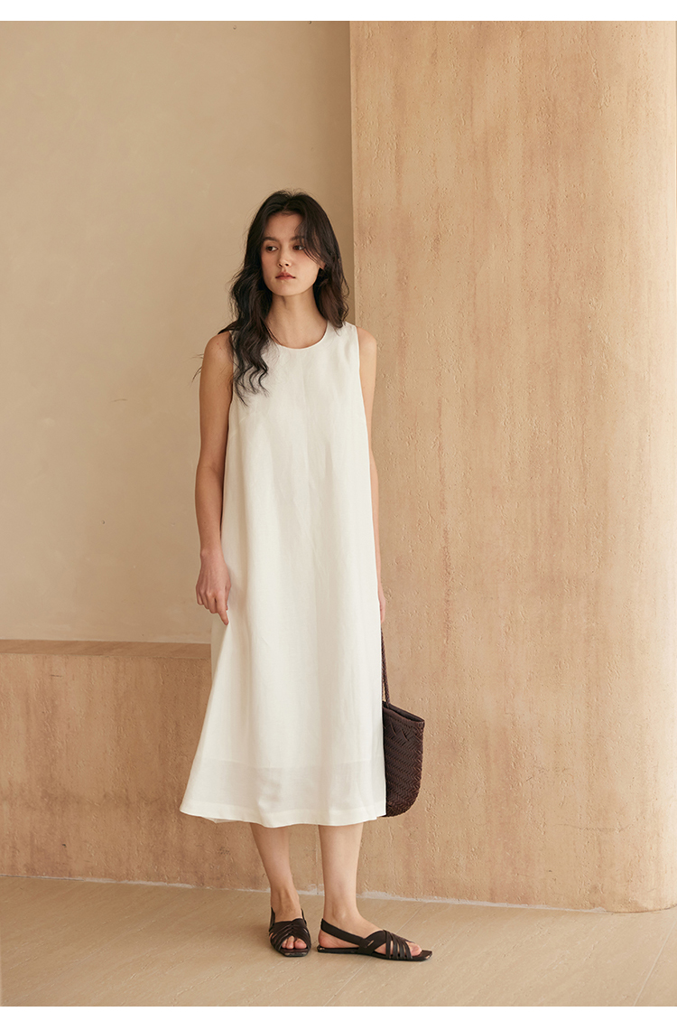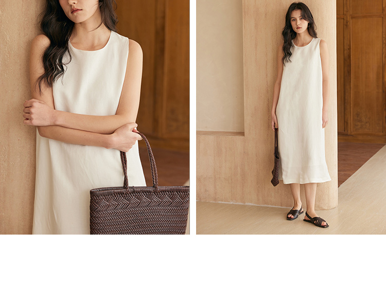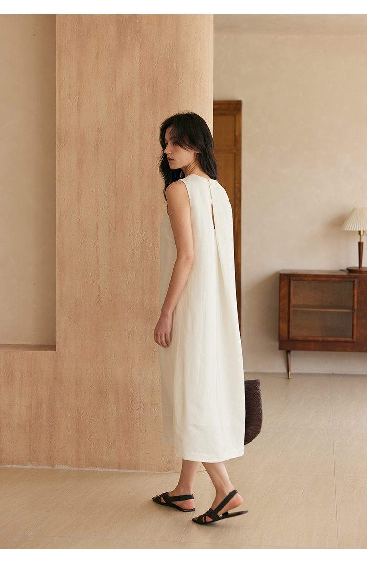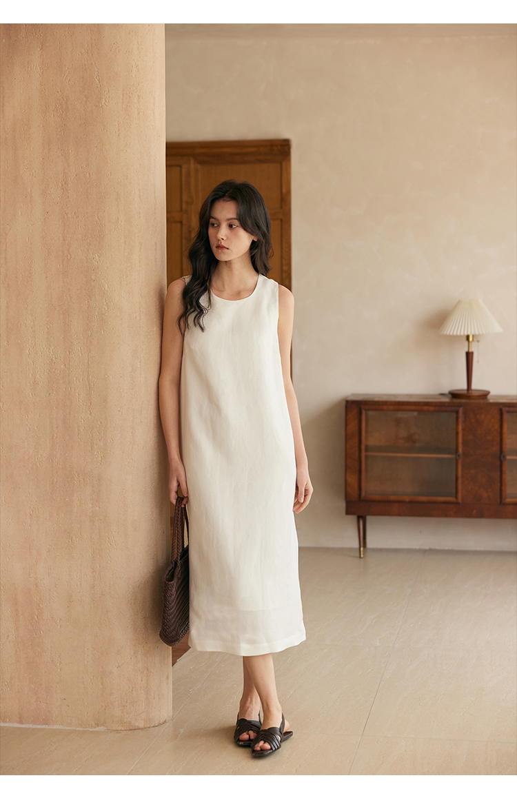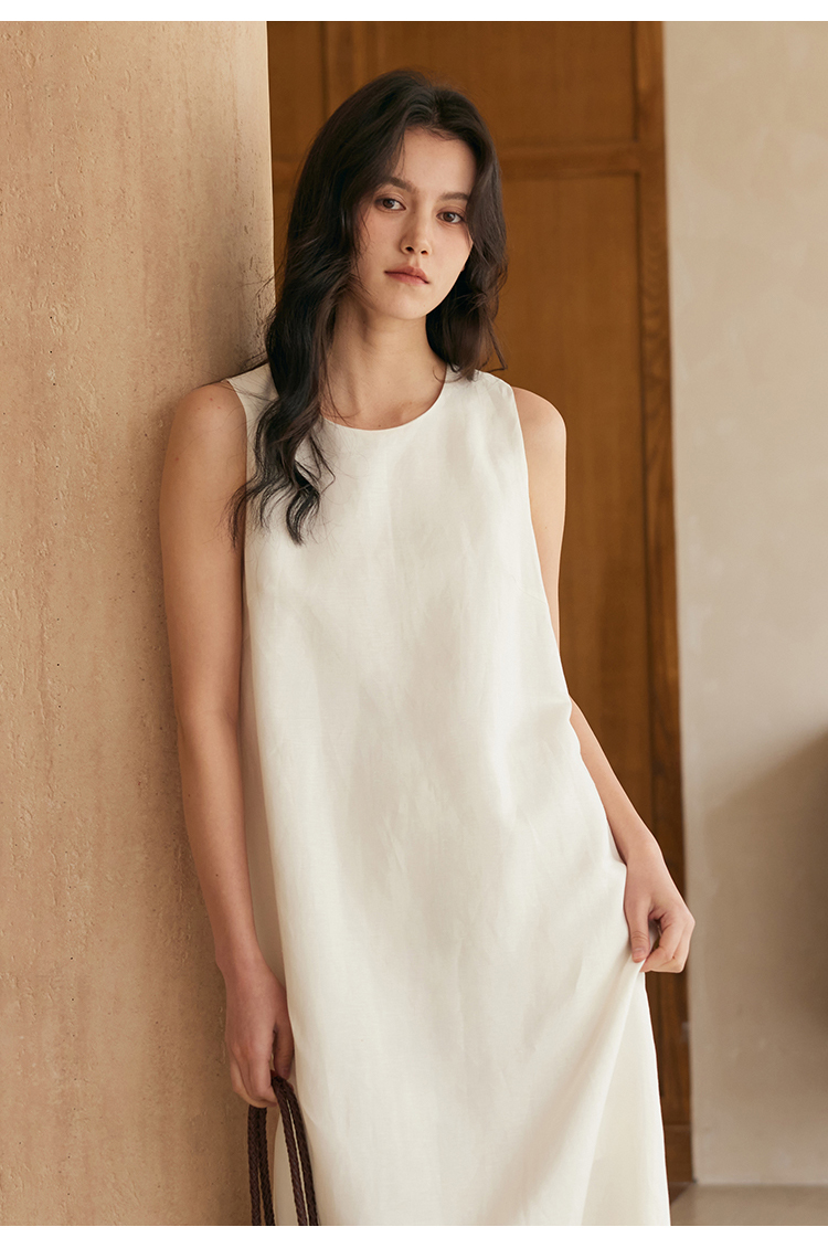 HeyDress法式亚麻背心连衣裙女夏季后背交叠设计高级气质黑色裙子
